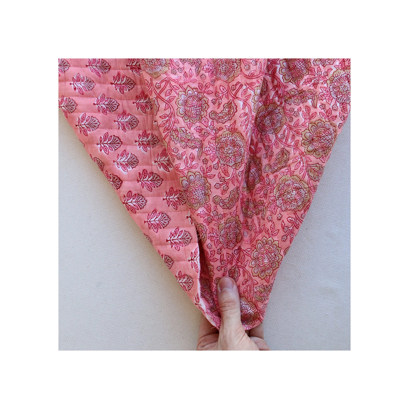 Nous avons décliné cette collection avec nos partenaires en Inde, afin de vous proposer pour le même motif le tissu en coton, et la version double face matelassée.