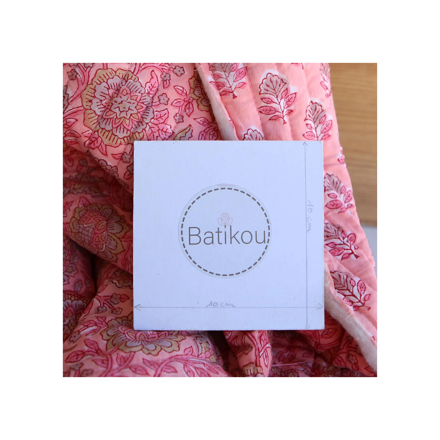 - A noter que le processus artisanal (impression à la main, au tampon en bois) de ce tissu fait que chaque pièce est unique et que l'impression et le matelassage ne sont pas aussi parfaits qu'un processus industriel.