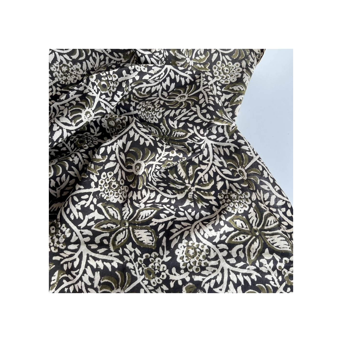 Tissu indien coton hand block traditionnel kaki / noir Batikou - 8