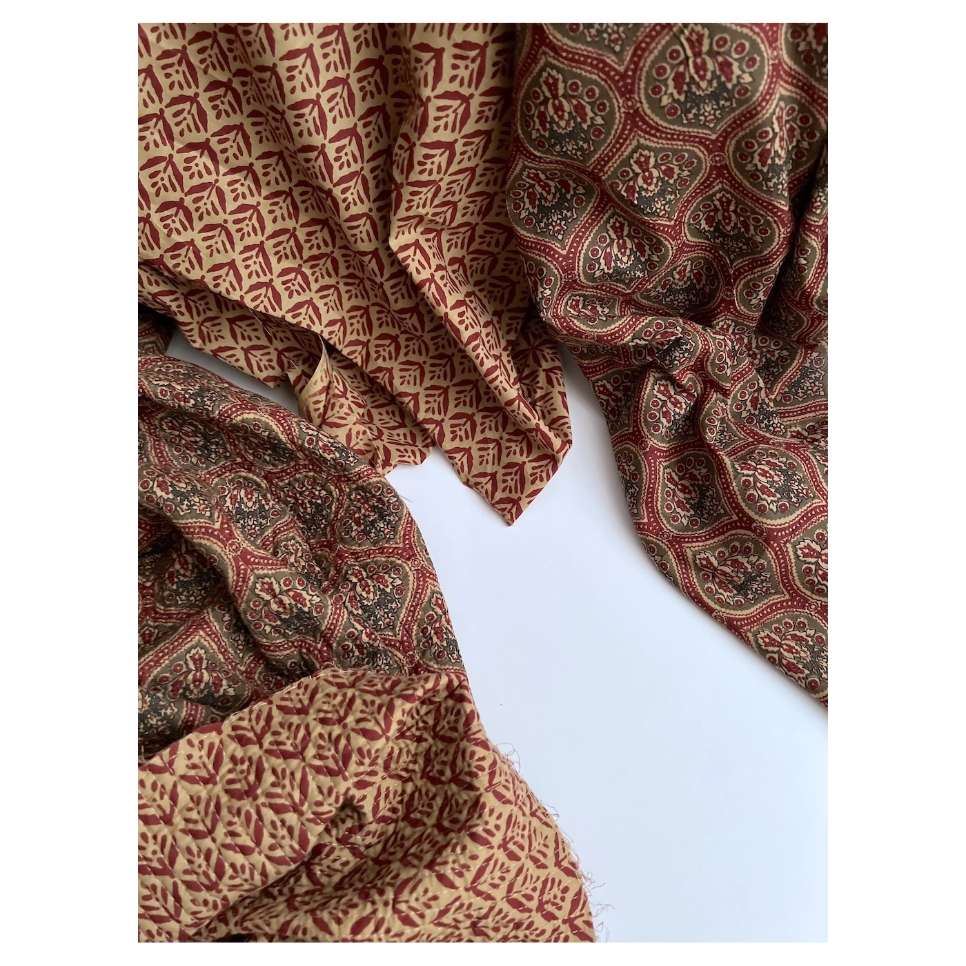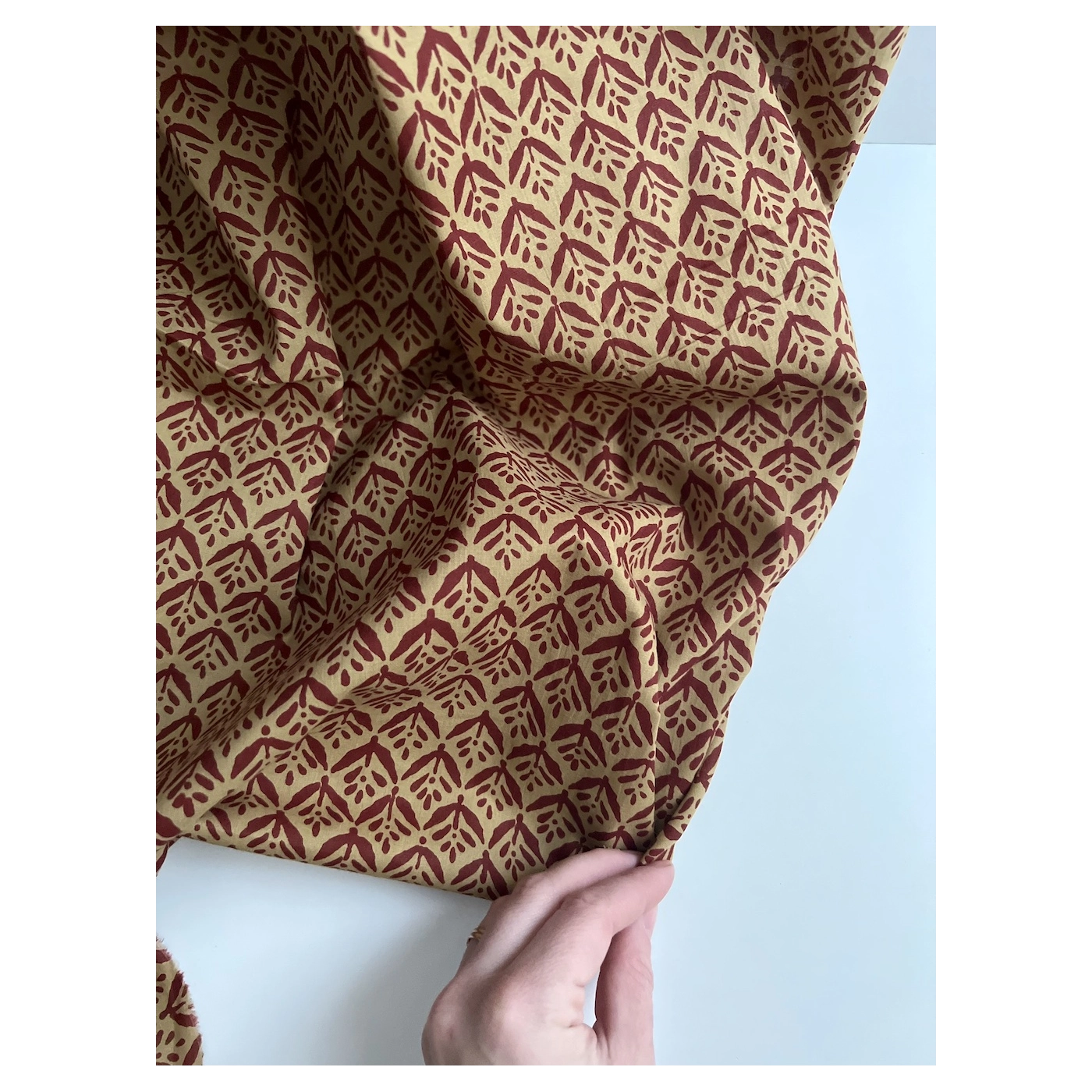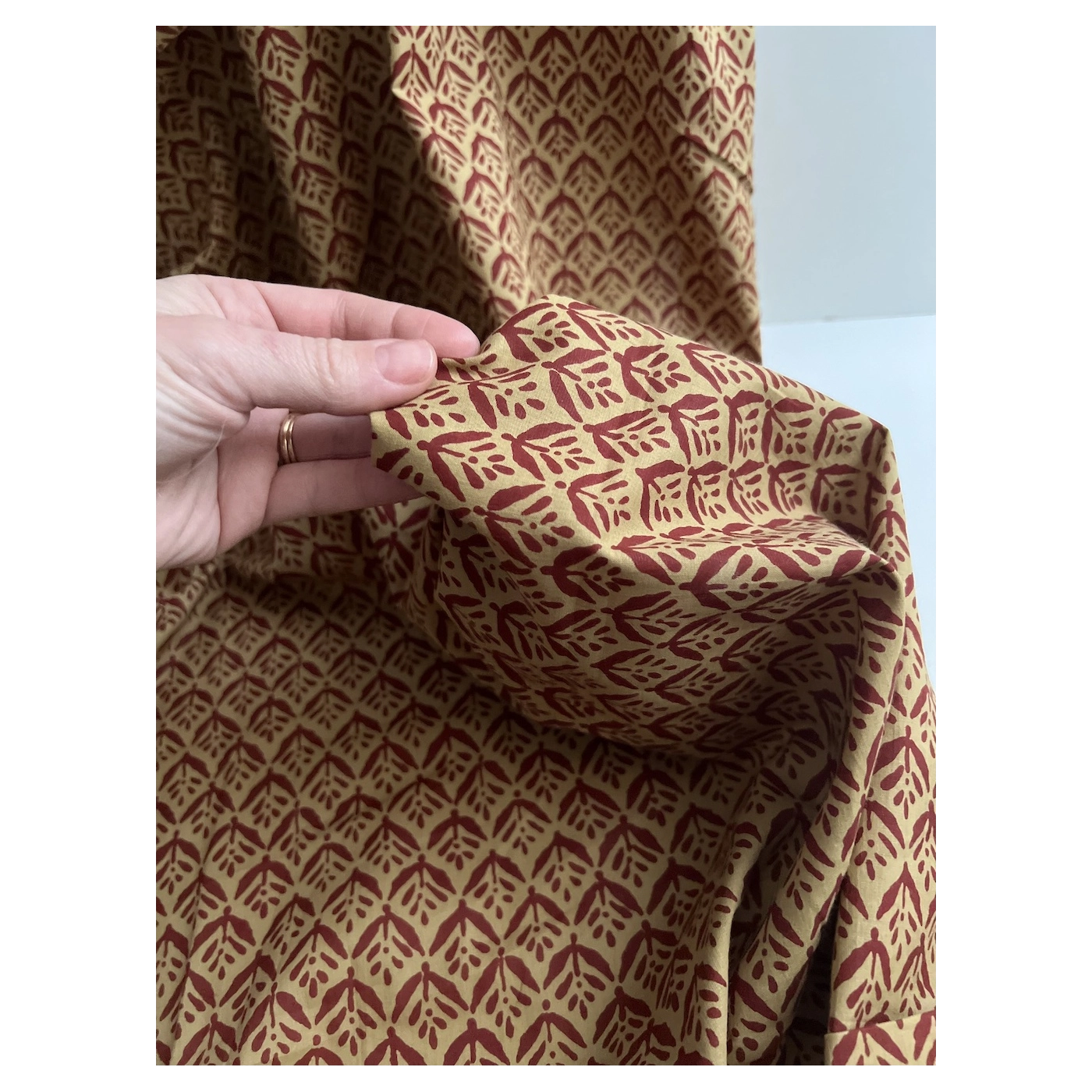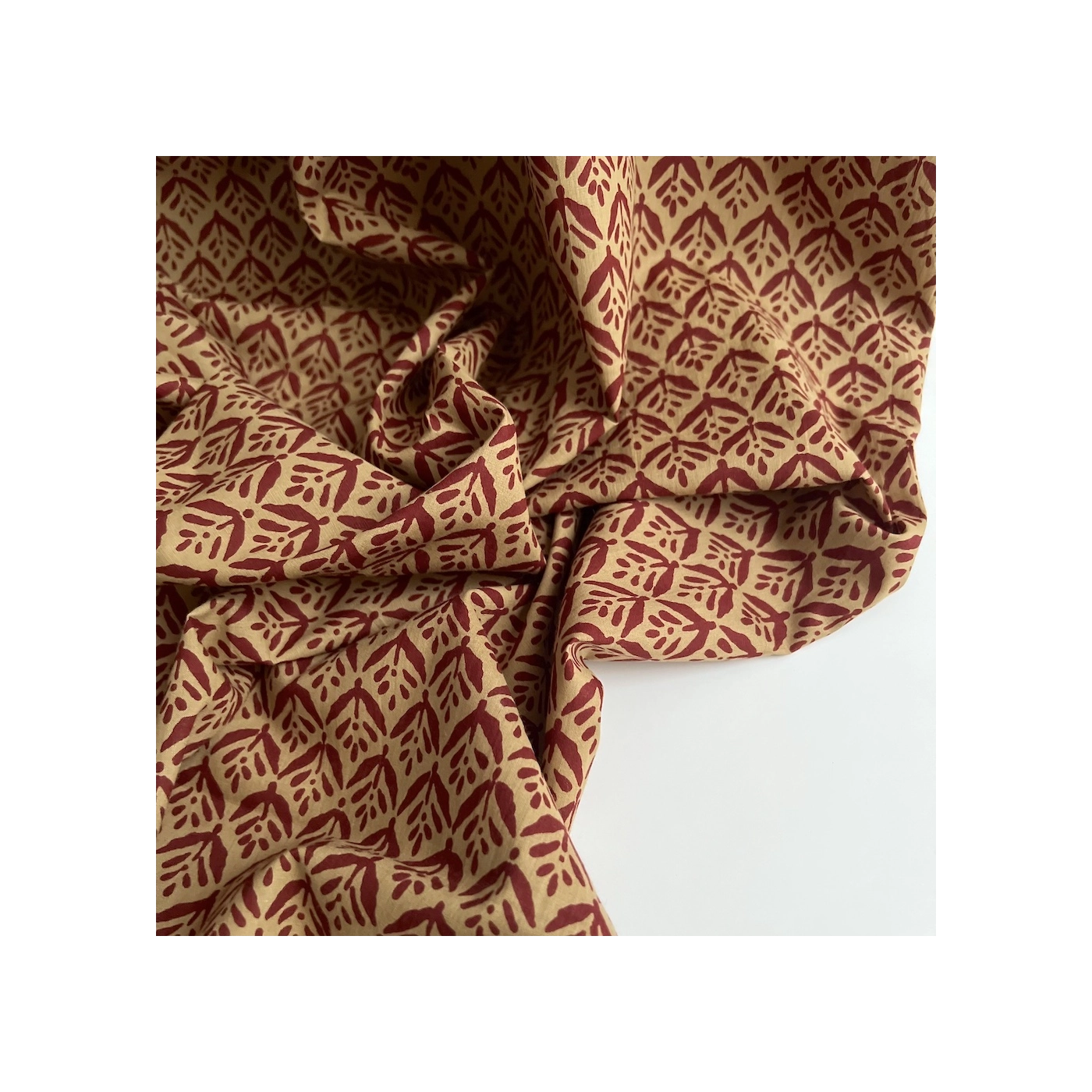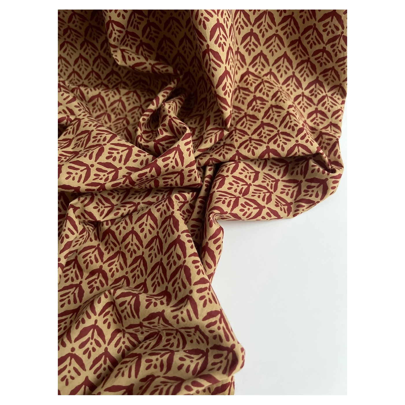 Tissu indien coton hand block traditionnel ocre / bordeau Batikou - 2
