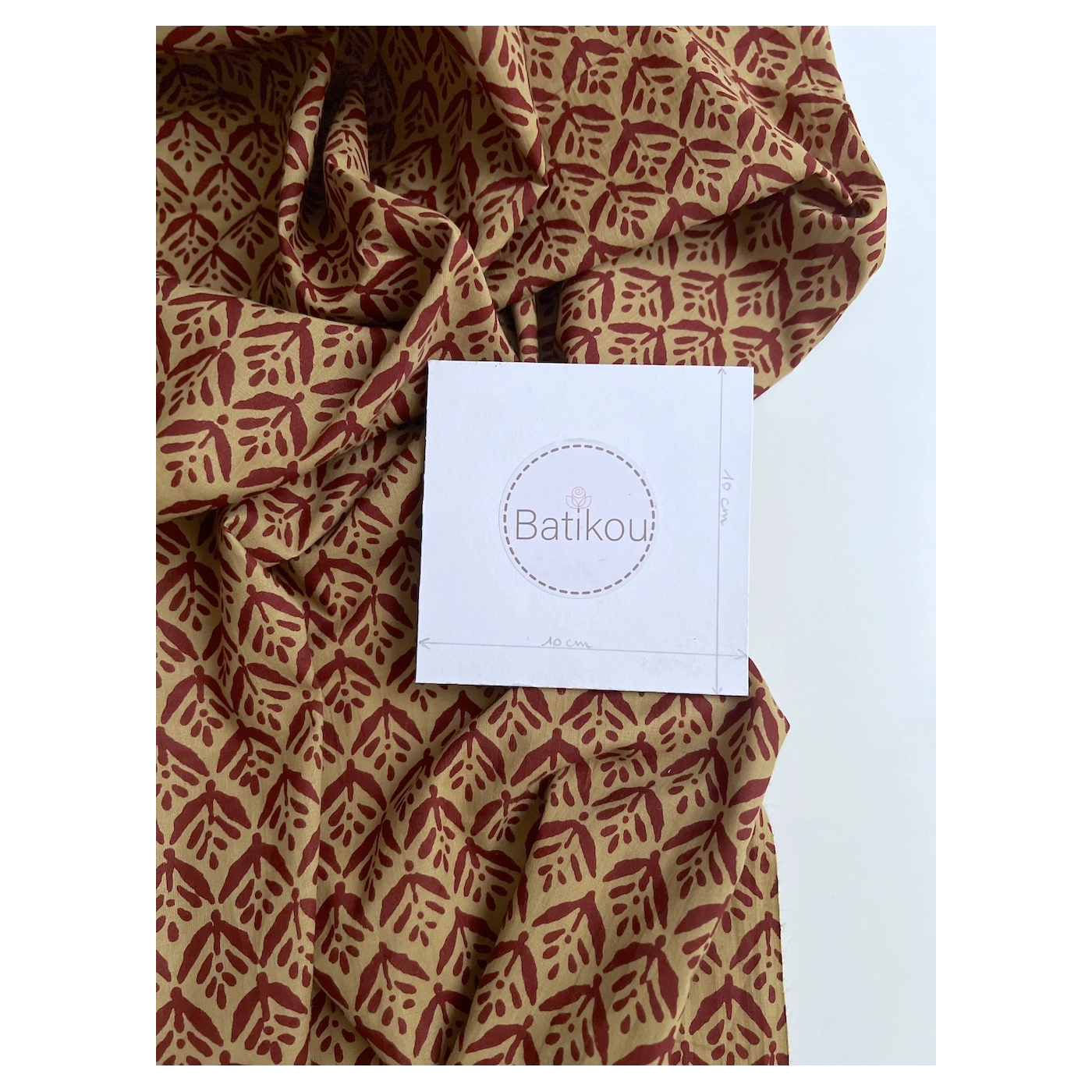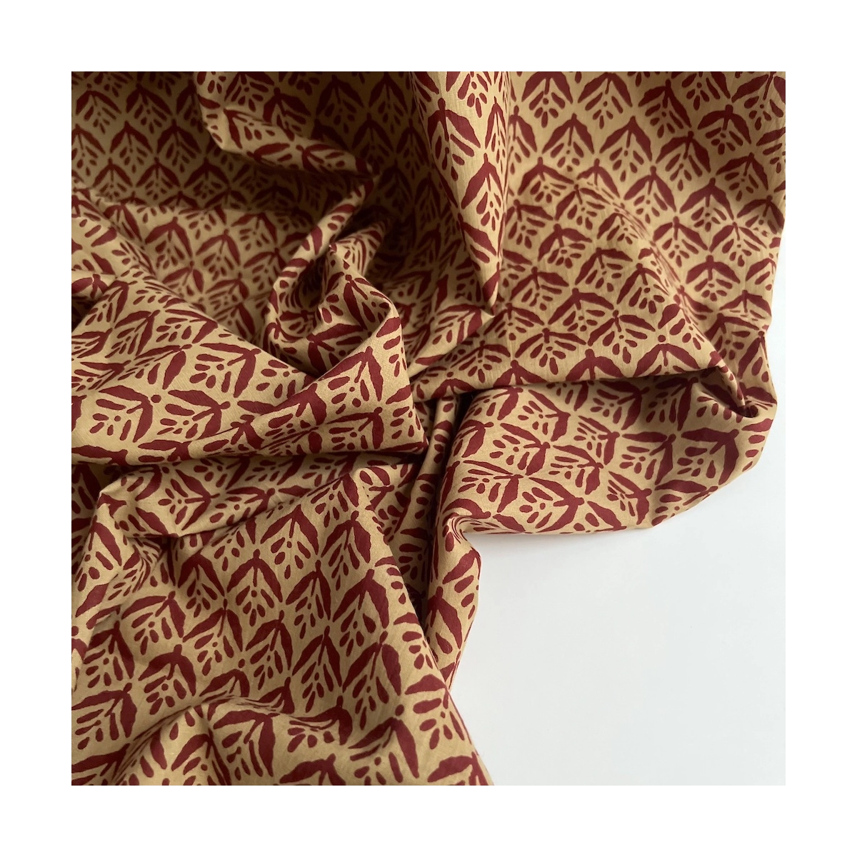 Tissu indien coton hand block traditionnel ocre / bordeau Batikou - 1
