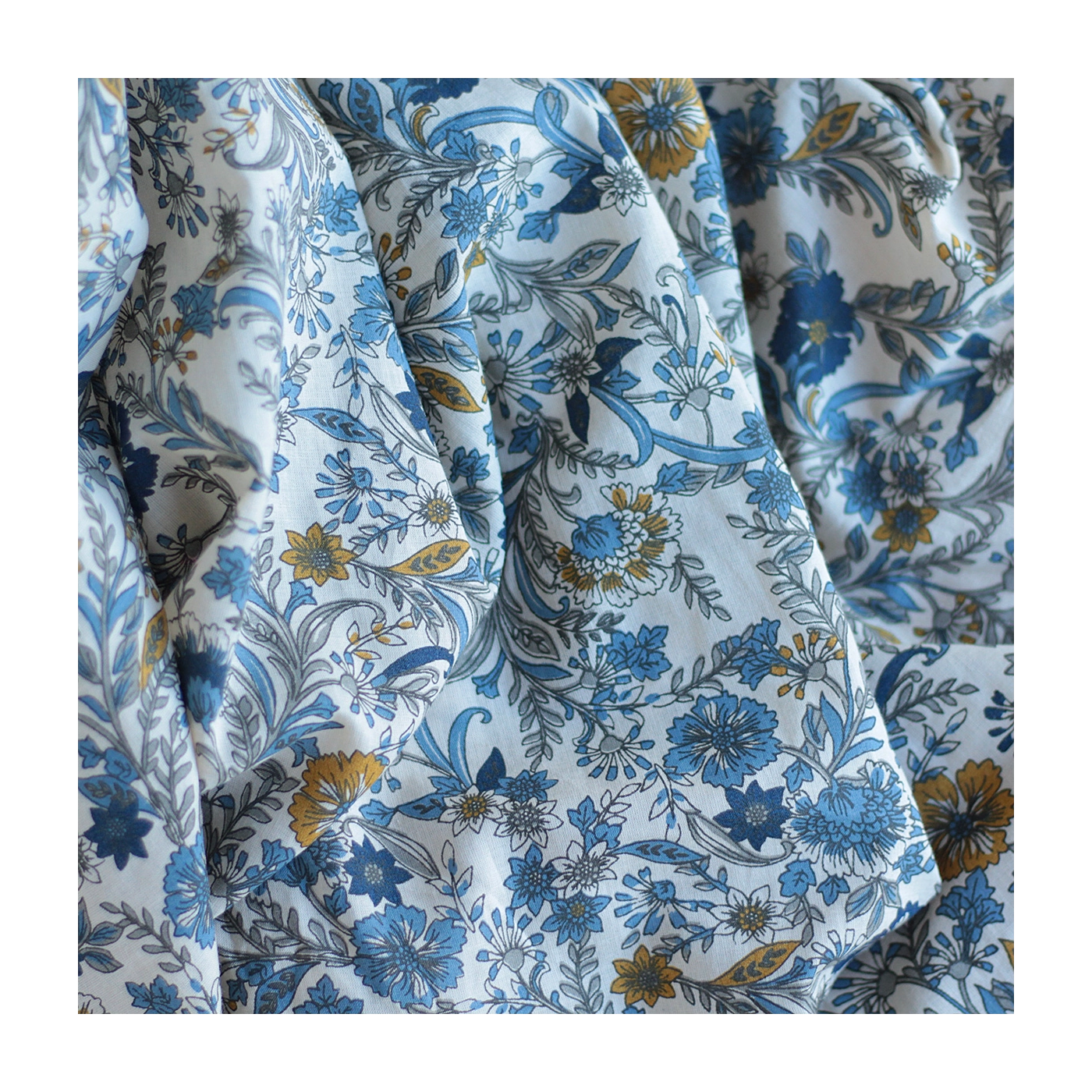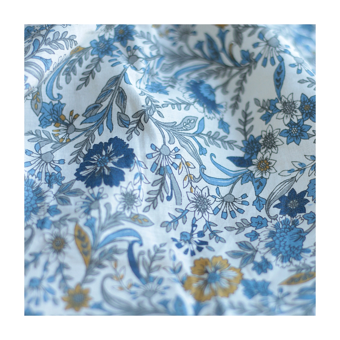 Tissu indien coton hand block traditionnel beige et bleu Batikou - 5