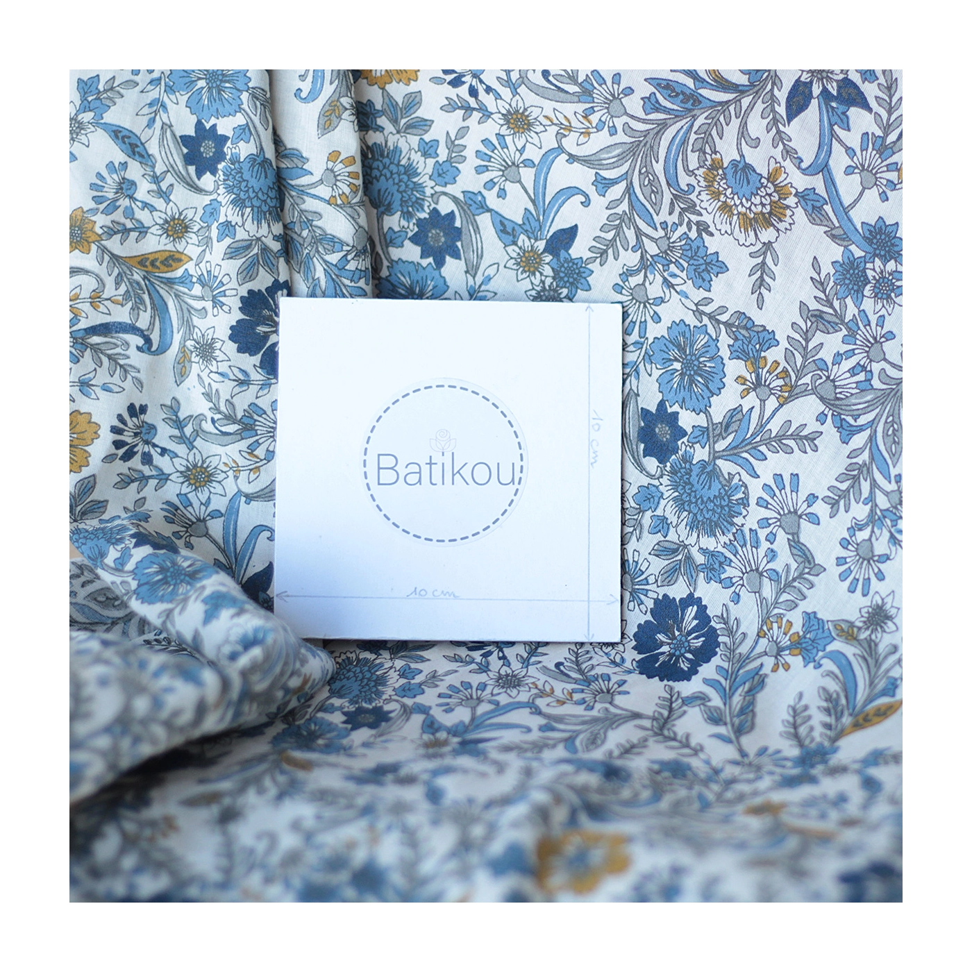 Tissu indien coton hand block traditionnel beige et bleu Batikou - 1