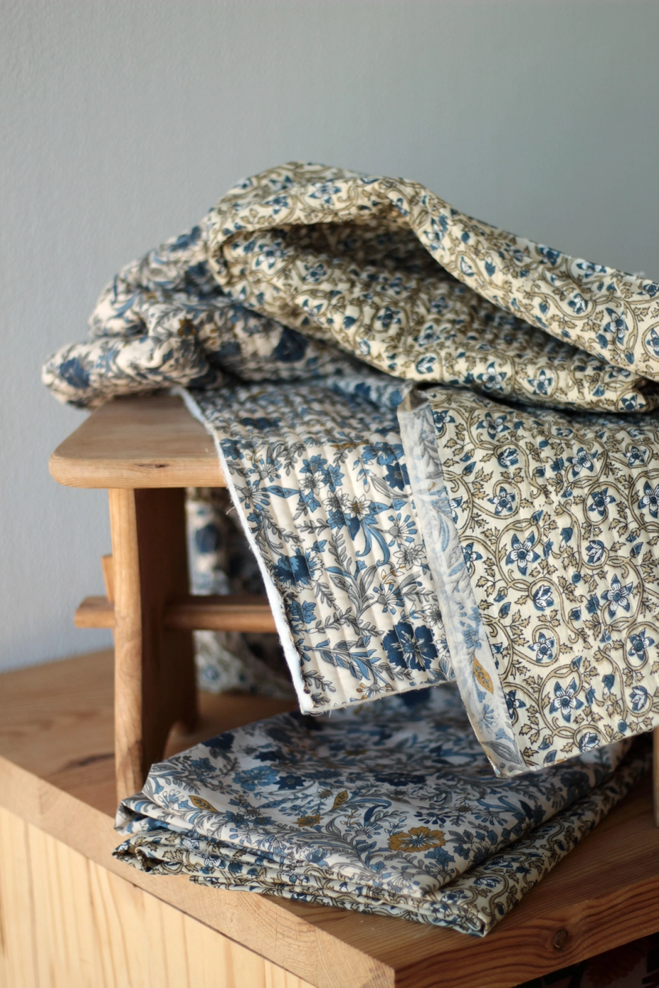 Nous déclinons cet imprimé sur un tissu double face matelassé