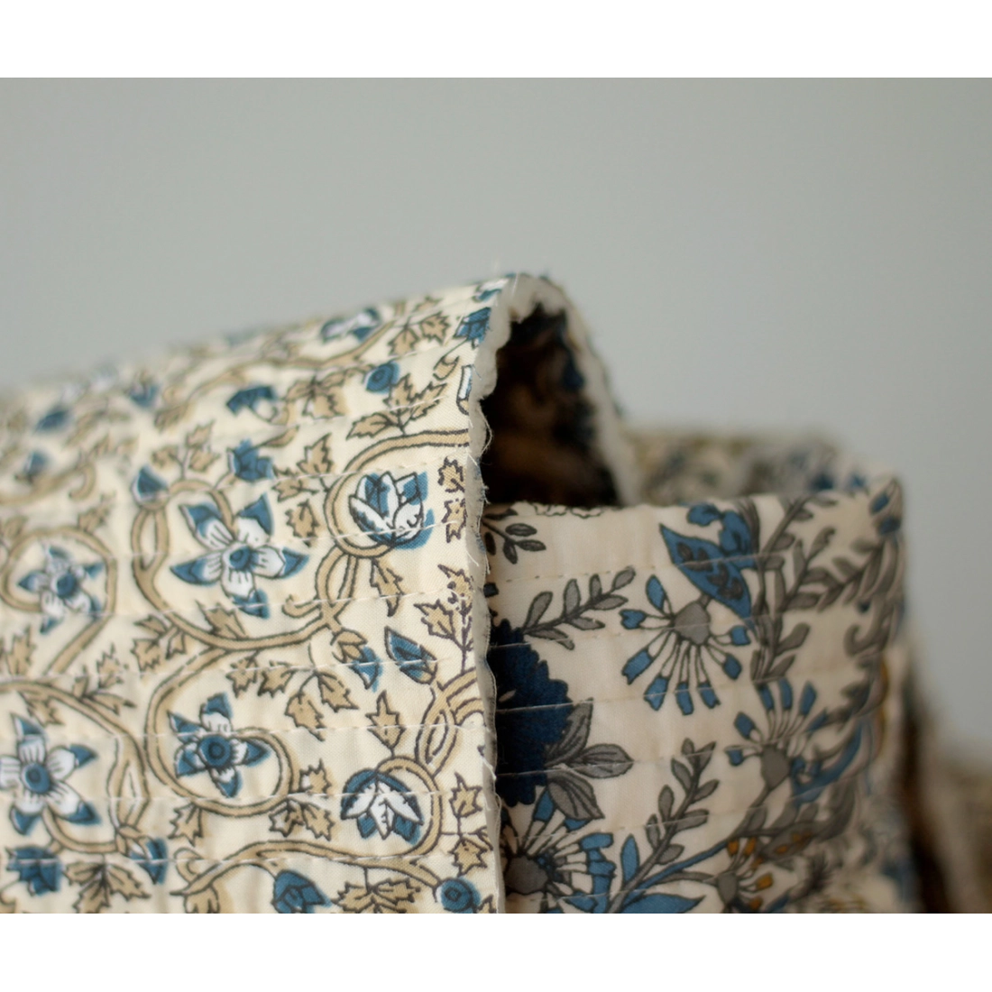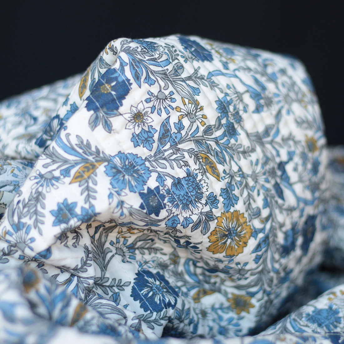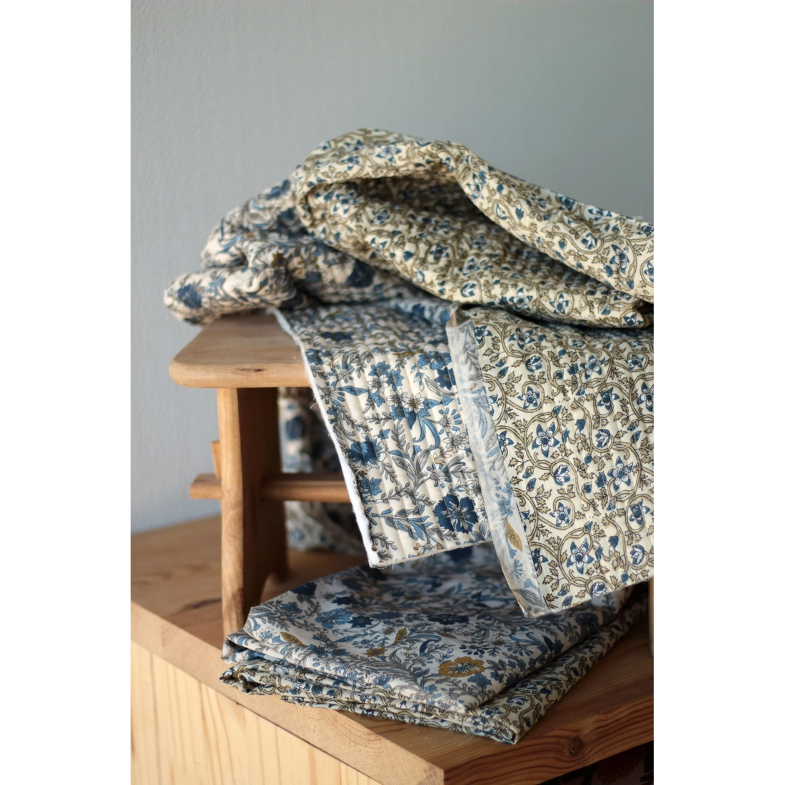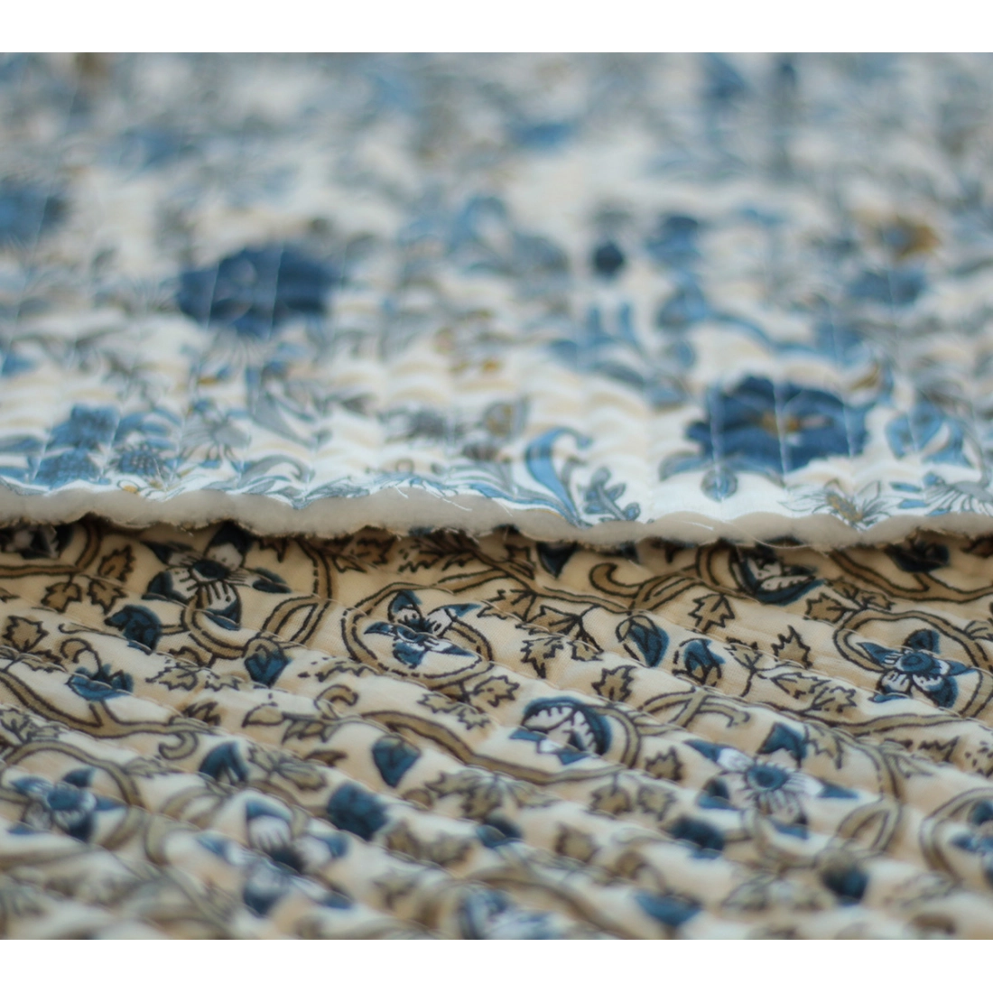 Nous avons décliné cette collection avec nos partenaires en Inde, afin de vous proposer pour le même motif le tissu en coton, et la version double face matelassée.