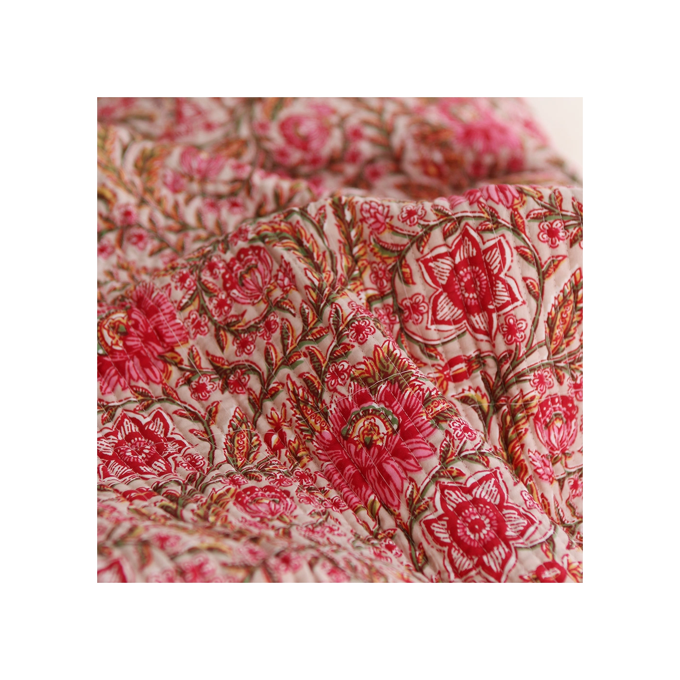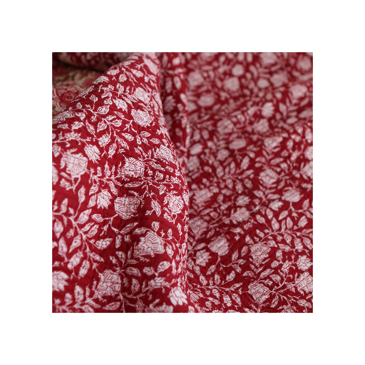 Nous avons décliné cette collection avec nos partenaires en Inde, afin de vous proposer pour le même motif le tissu en coton, et la version double face matelassée.