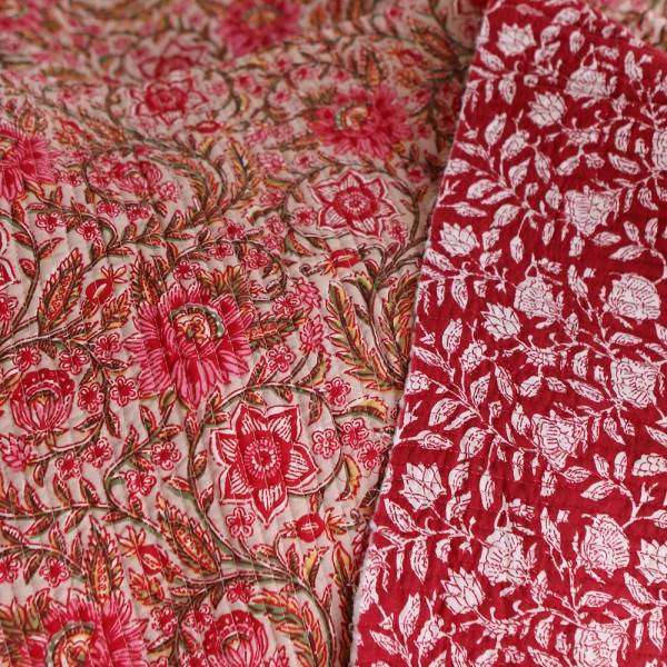 Meera - Tissu indien matelassé double face coton hand block largeur 100cm
