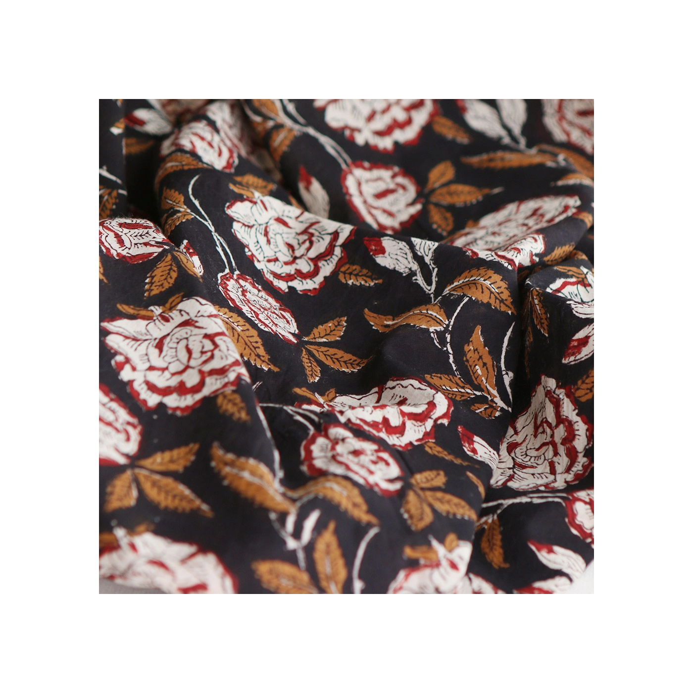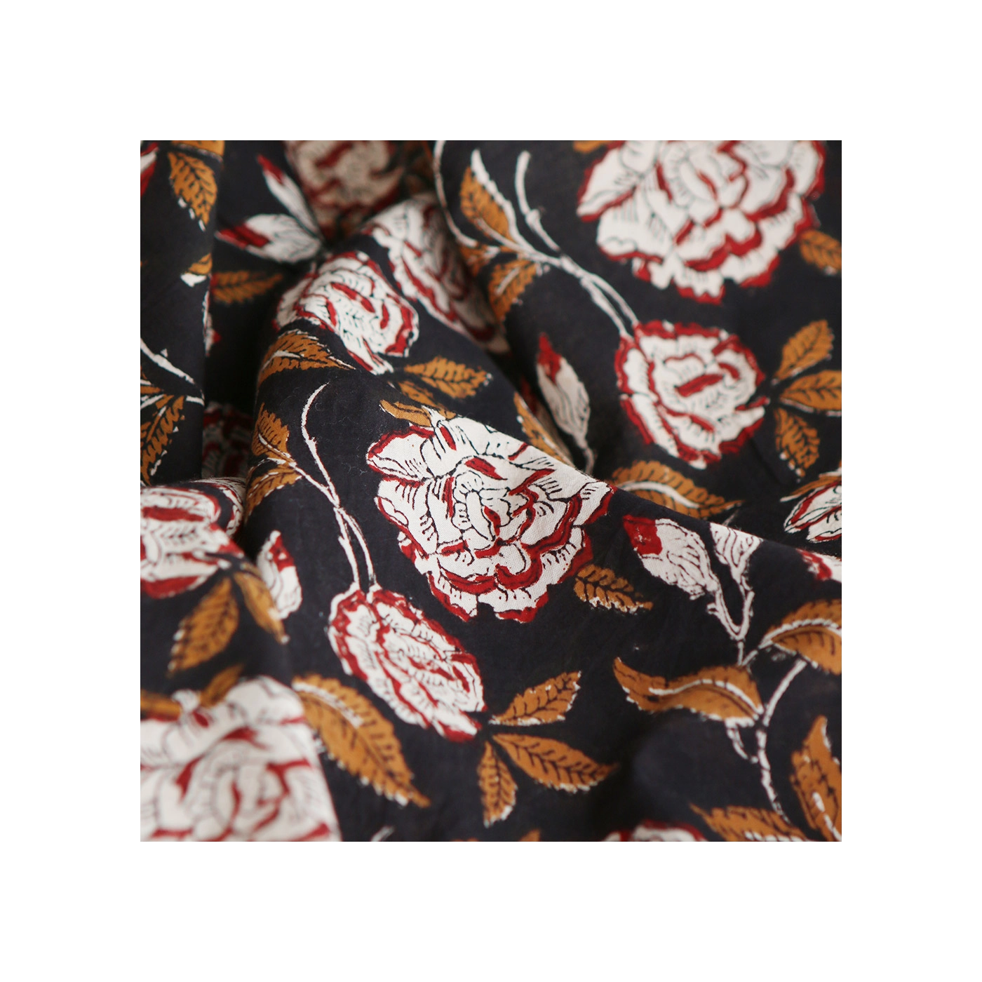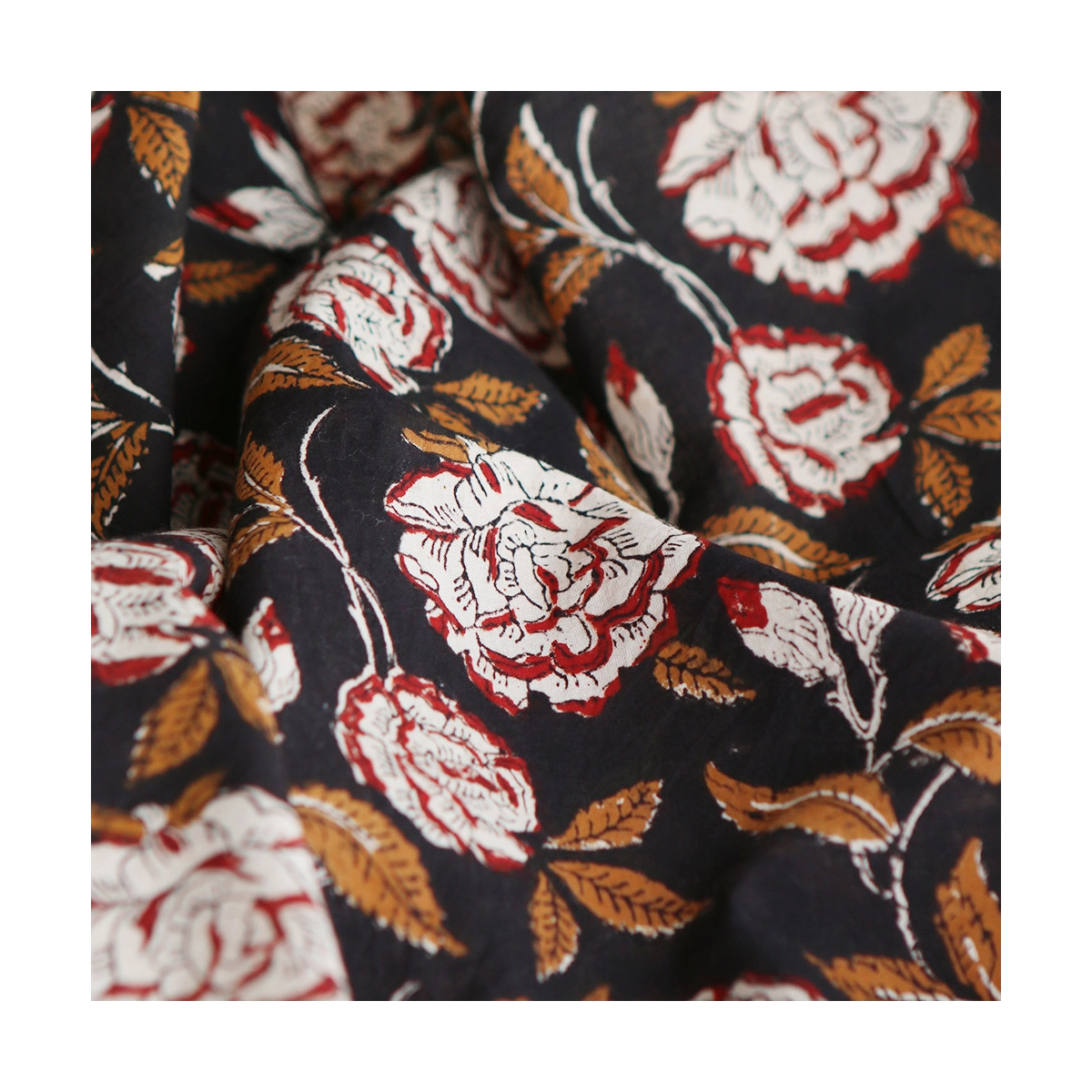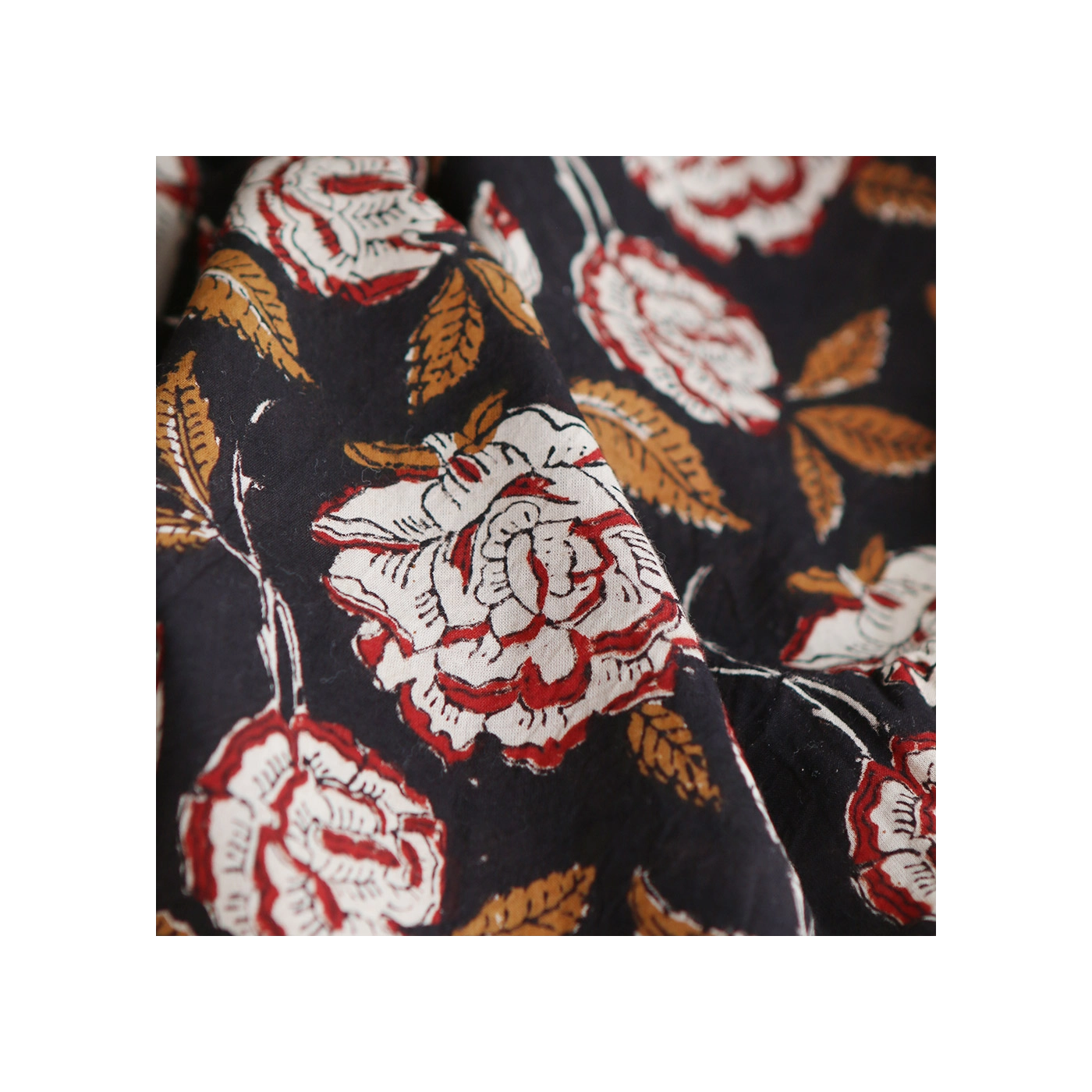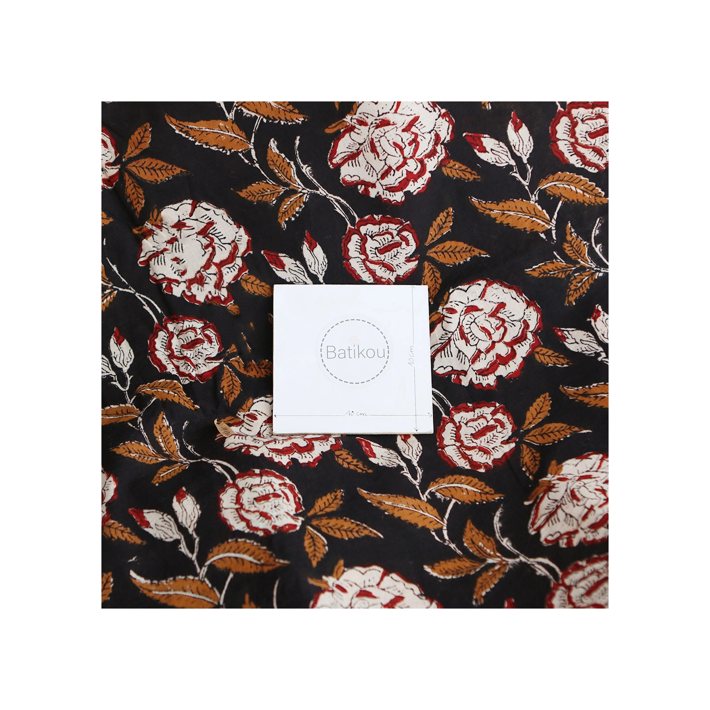 Découvrez Laïli, notre joli motif aux grosse fleurs sur fond noir... l'authenticité et le charme du tissu indien en coton, imprimé à la main selon la technique ancestrale du block print. Ce tissu de qualité supérieure est idéal pour ajouter une touche exotique et artisanale à vos créations.