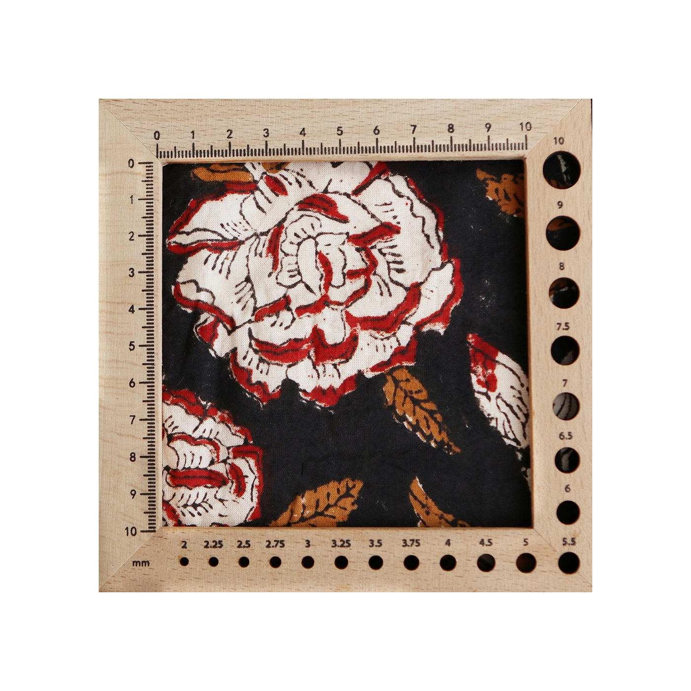 A noter que le processus artisanal (impression à la main, au tampon en bois) de ce tissu fait que chaque pièce est unique et que l'impression n'est pas aussi parfaite qu'un processus industriel.