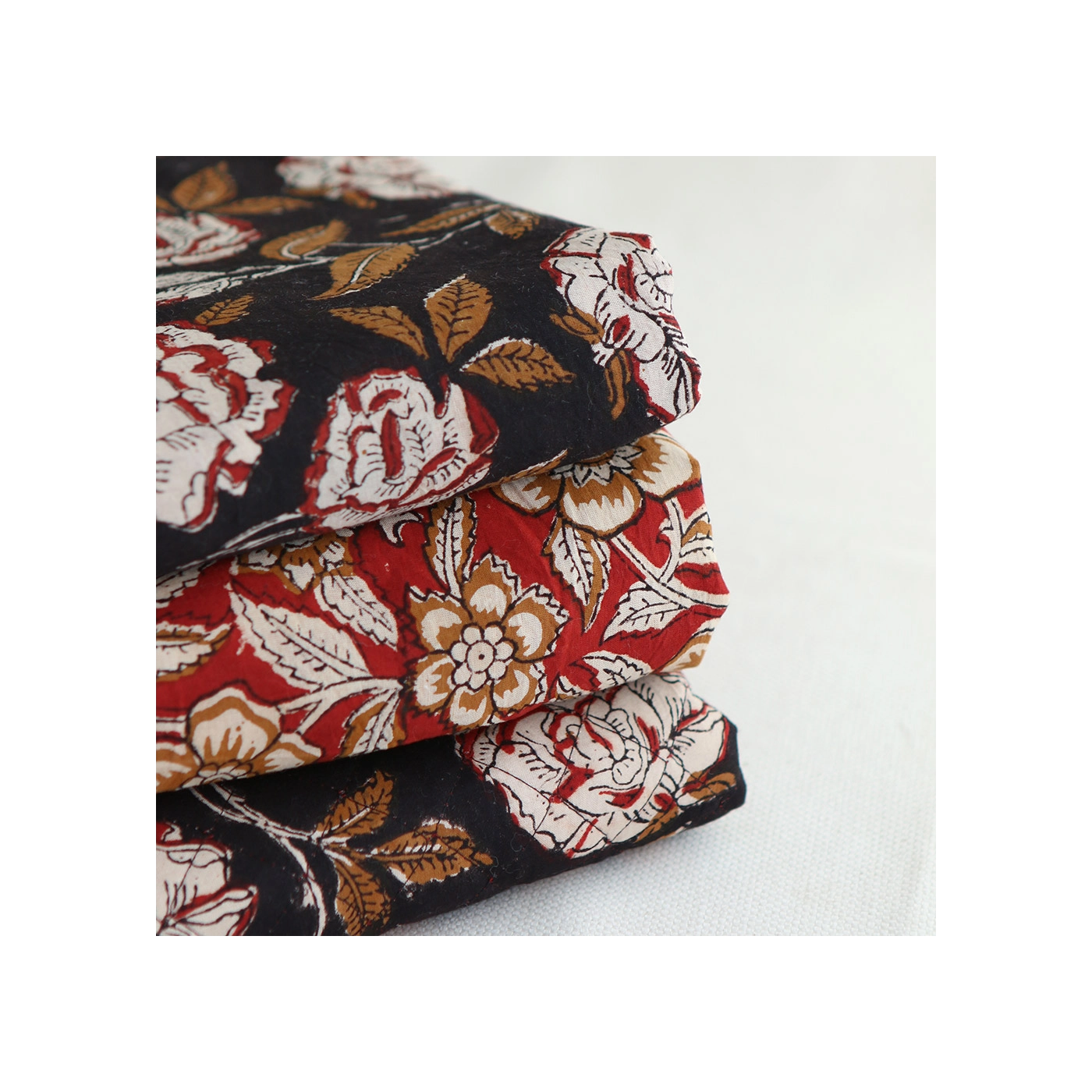Le block print est un artisanat ancestral indien : le dessin est gravé sur un tampon en bois, chaque couleur nécessitant une étape d'impression distincte.