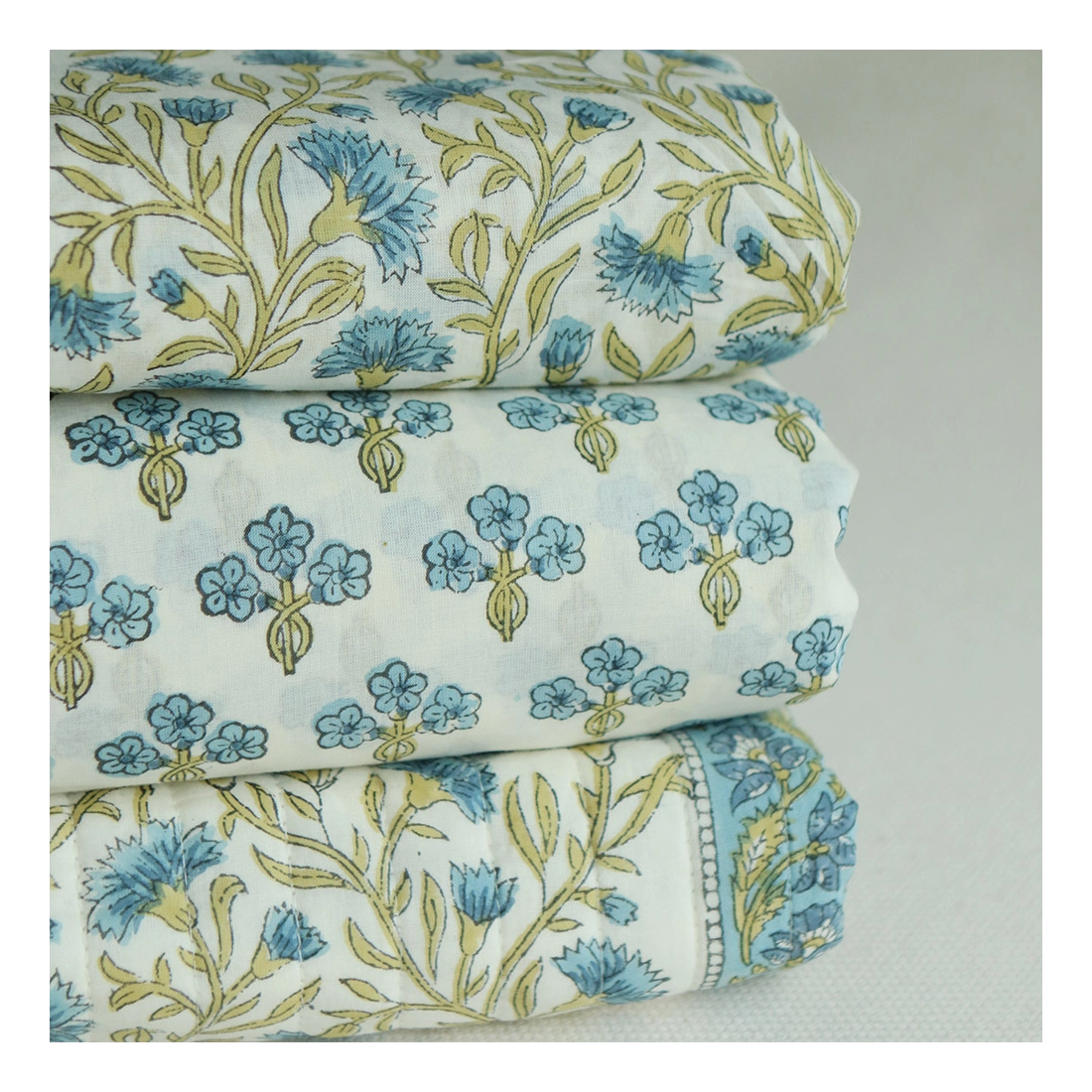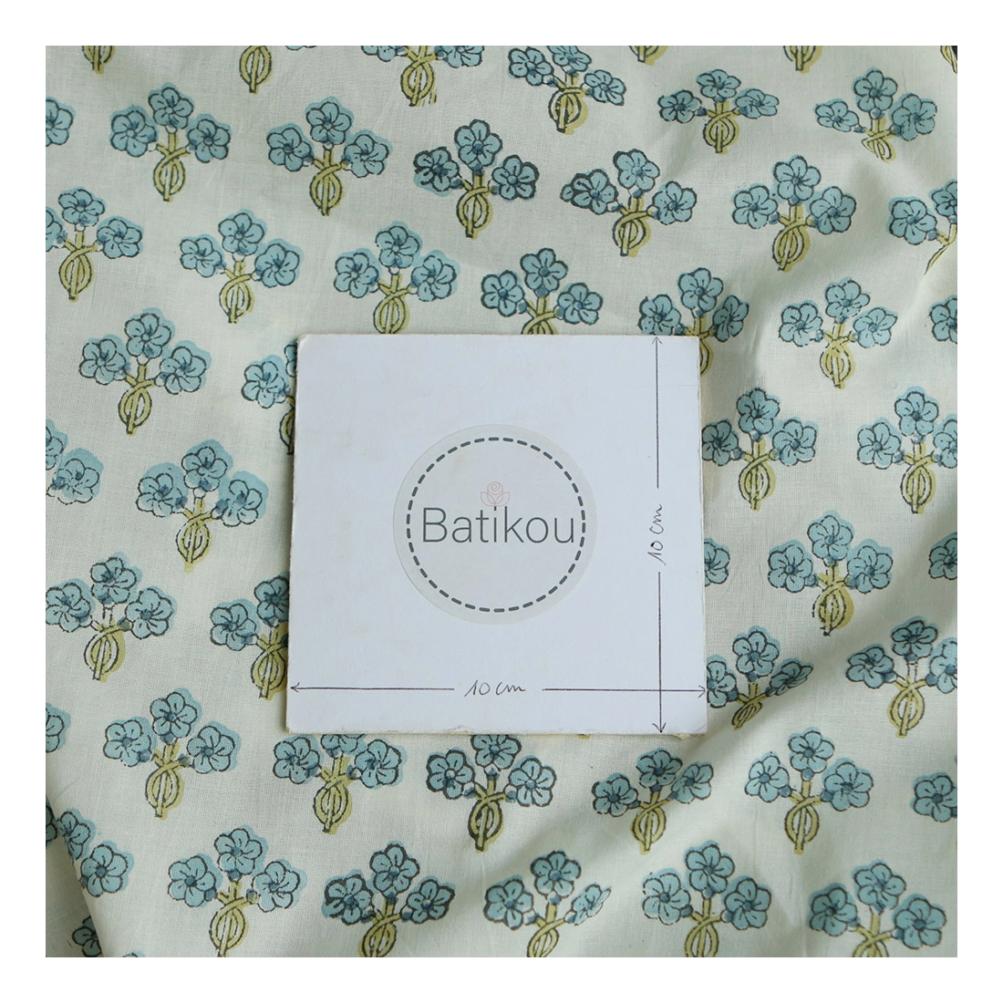 Le block print est un artisanat ancestral indien : le dessin est gravé sur un tampon en bois, chaque couleur nécessitant une étape d'impression distincte.