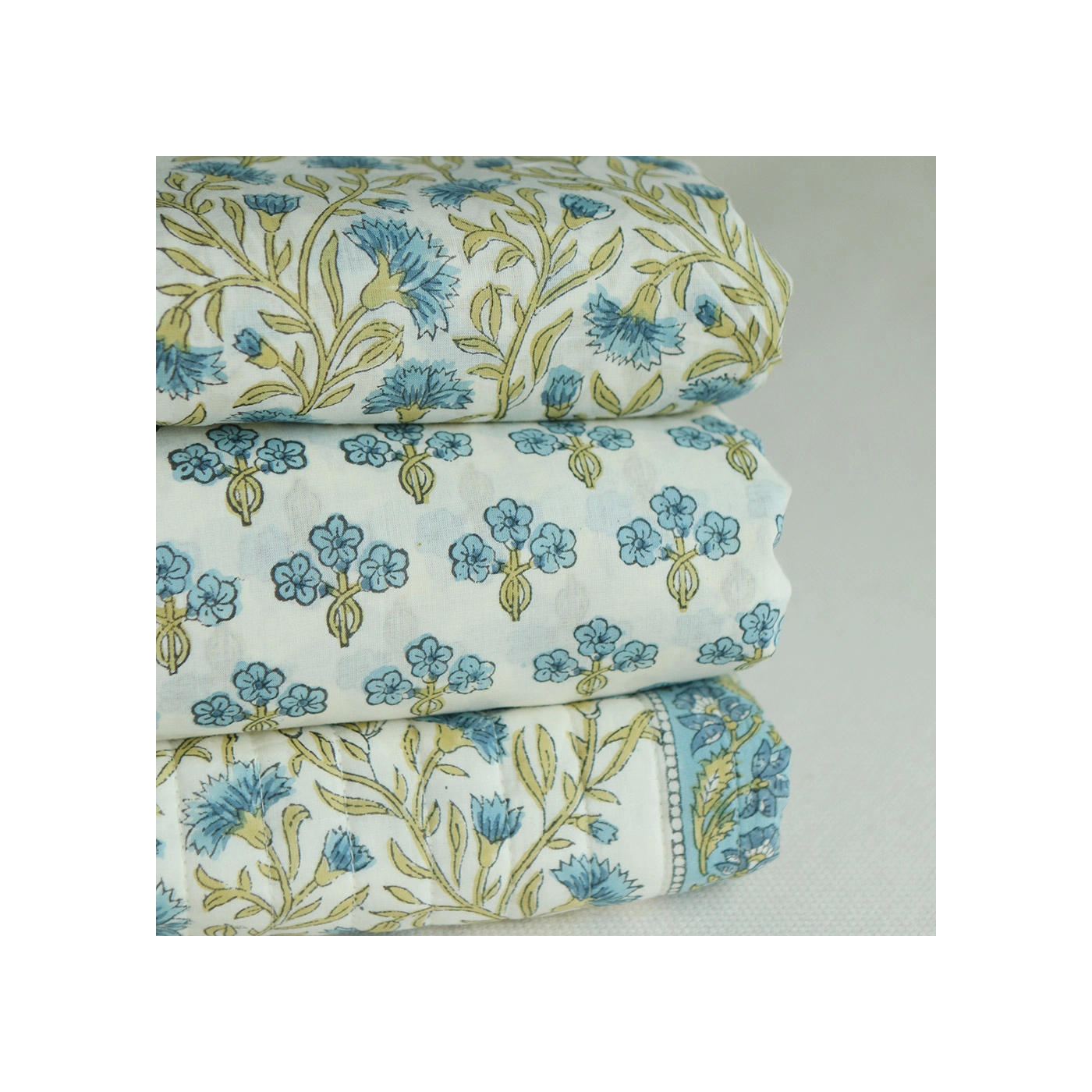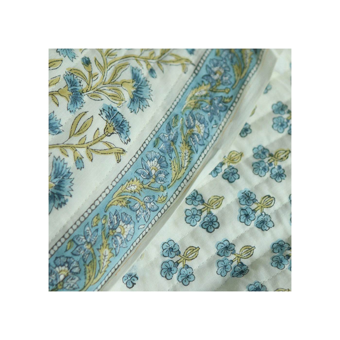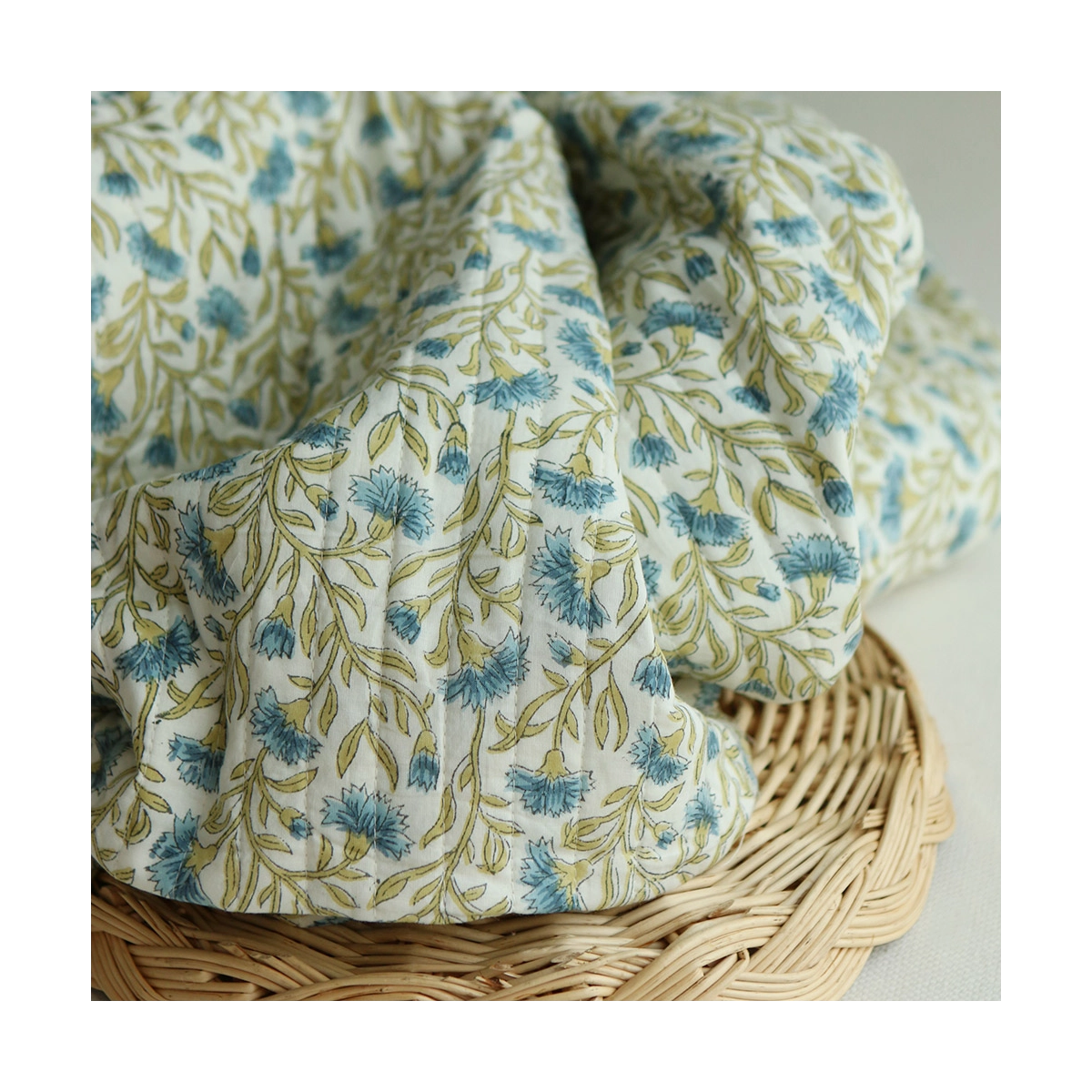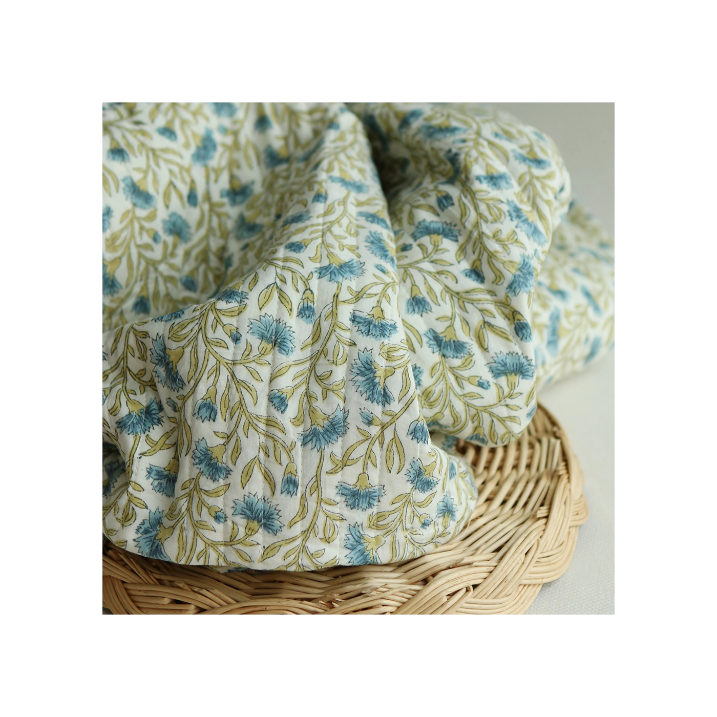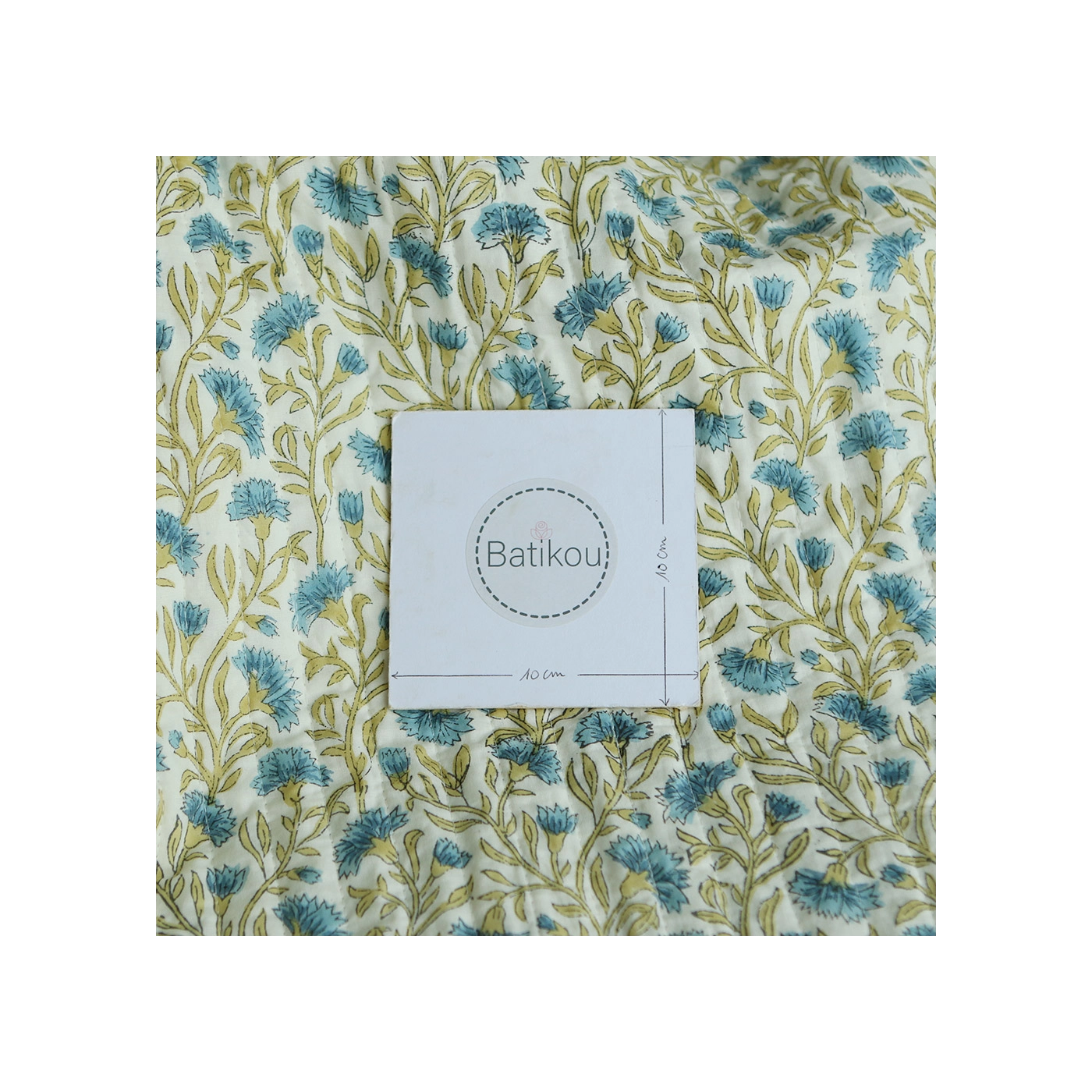Jasmin - Tissu indien matelassé double face coton hand block largeur 100cm