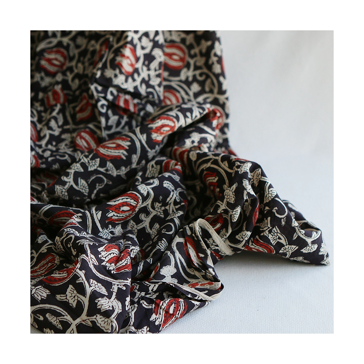 Découvrez l'authenticité et le charme du tissu indien en coton, imprimé à la main selon la technique ancestrale du block print. Ce tissu de qualité supérieure est idéal pour ajouter une touche exotique et artisanale à vos créations.