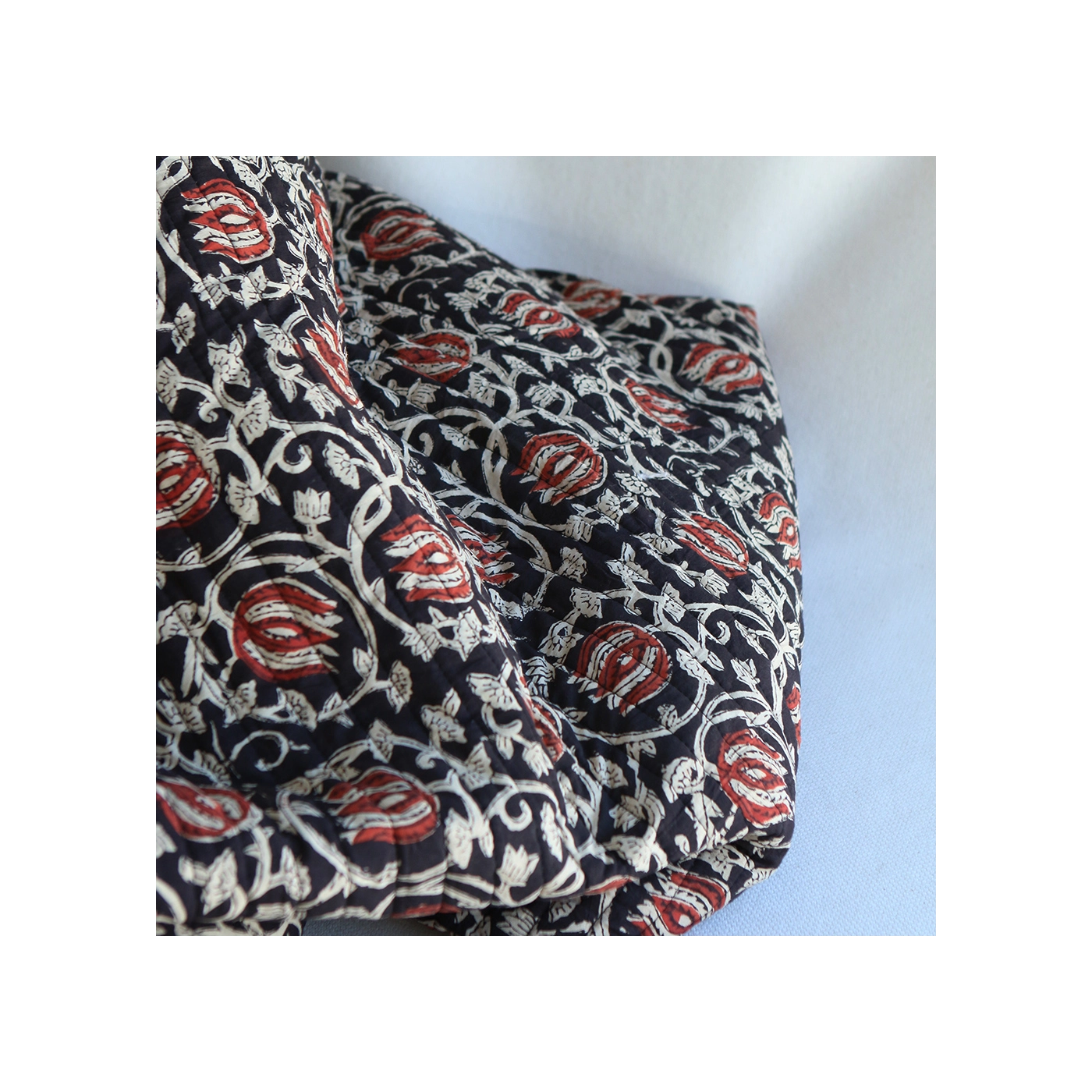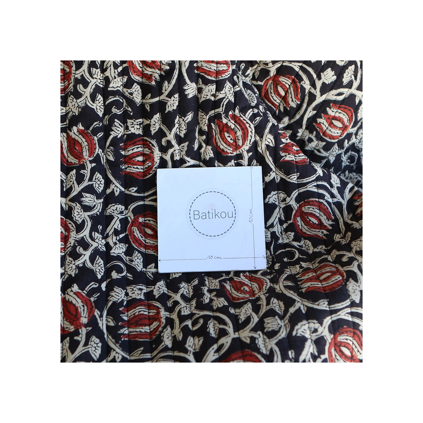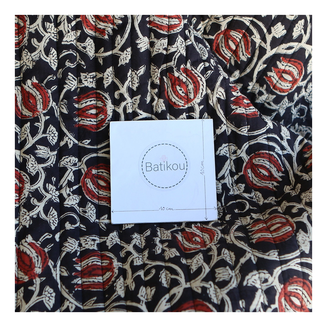 - A noter que le processus artisanal (impression à la main, au tampon en bois) de ce tissu fait que chaque pièce est unique et que l'impression ET le matelassage ne sont pas aussi parfaits qu'un processus industriel.