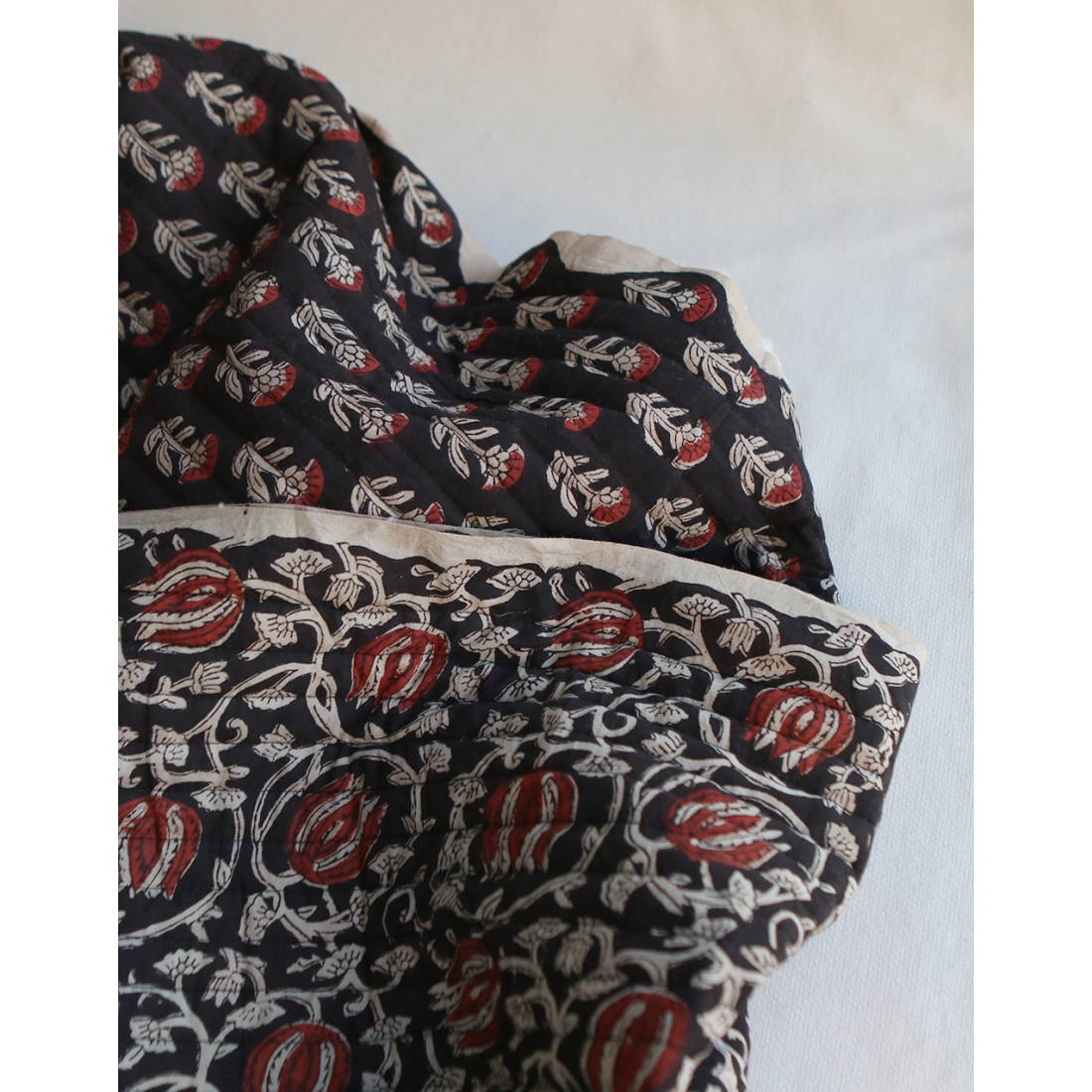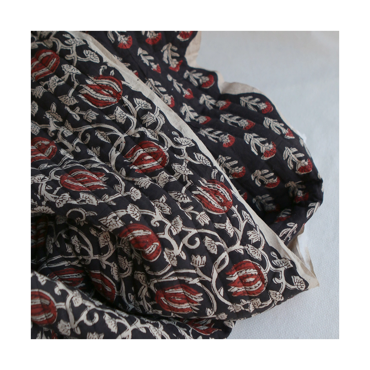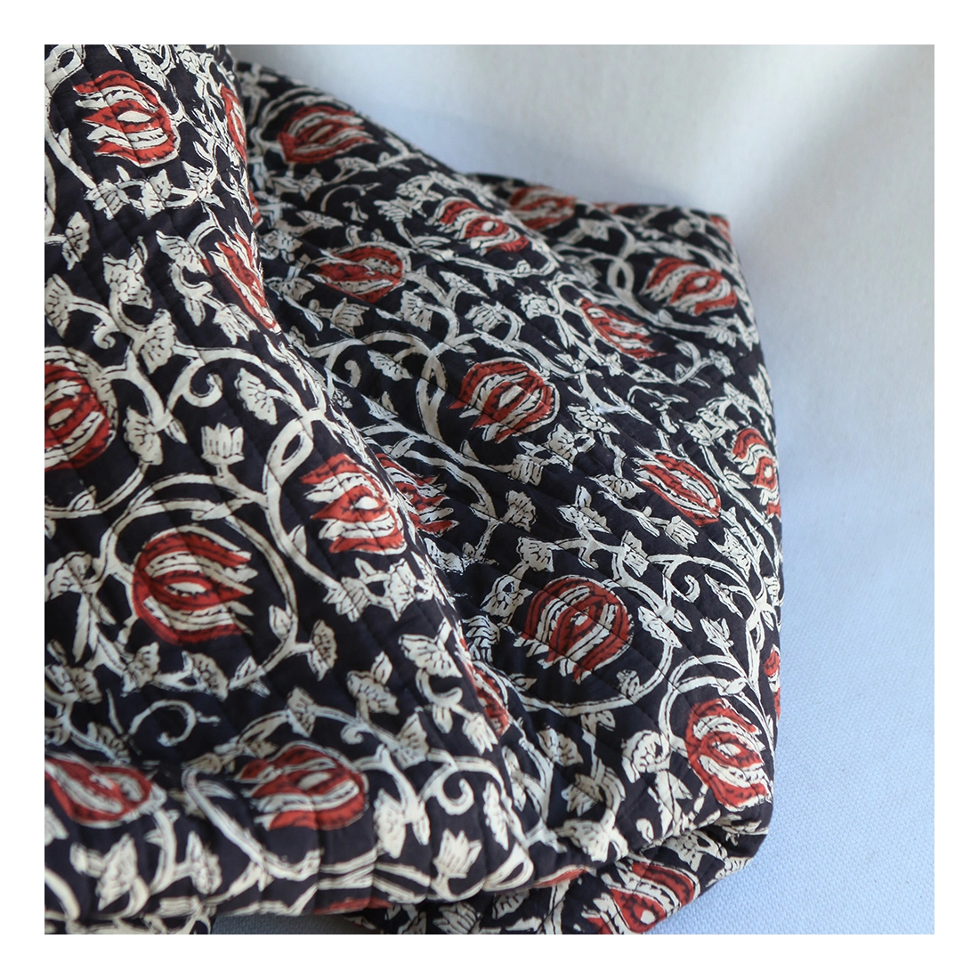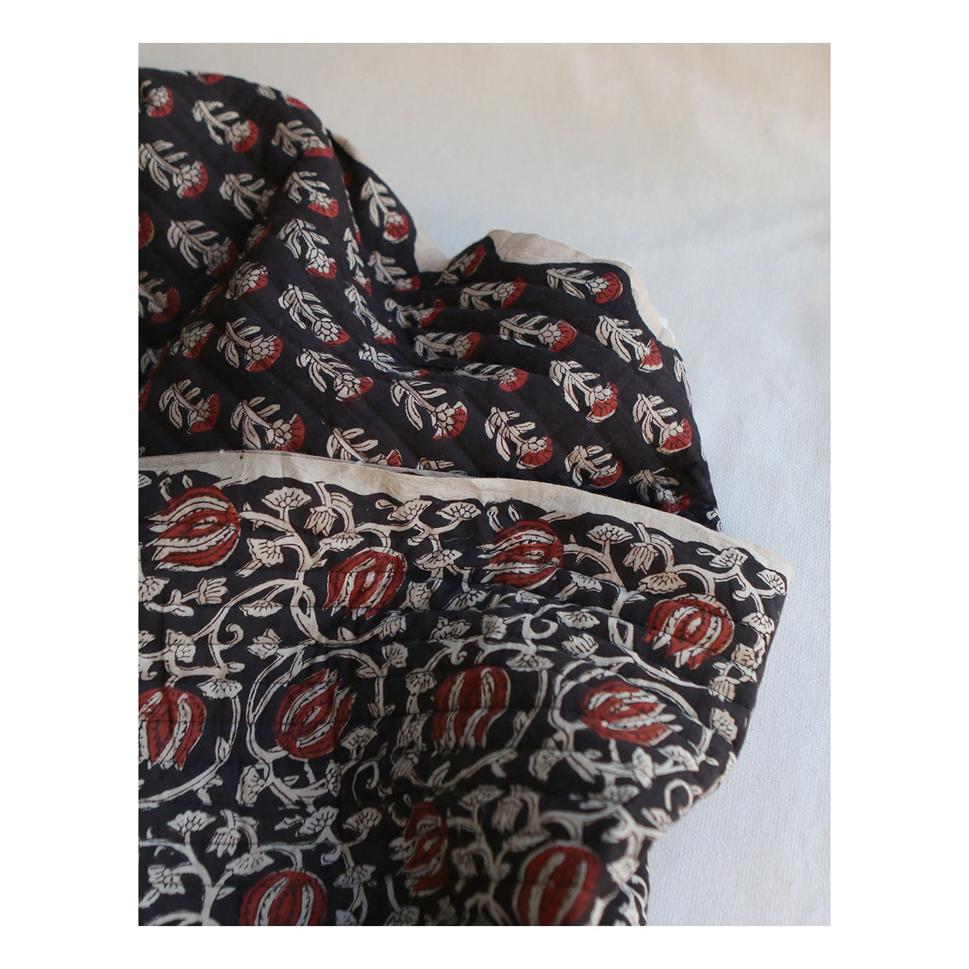 - A noter que le processus artisanal (impression à la main, au tampon en bois) de ce tissu fait que chaque pièce est unique et que l'impression ET le matelassage ne sont pas aussi parfaits qu'un processus industriel.
