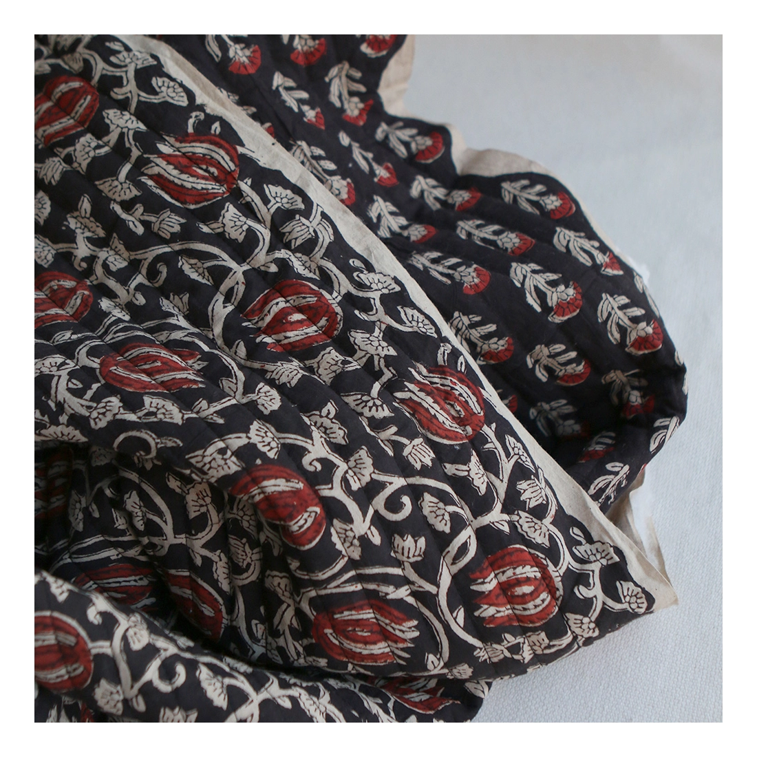 Nous avons décliné cette collection avec nos partenaires en Inde, afin de vous proposer pour le même motif le tissu en coton, et la version double face matelassée.