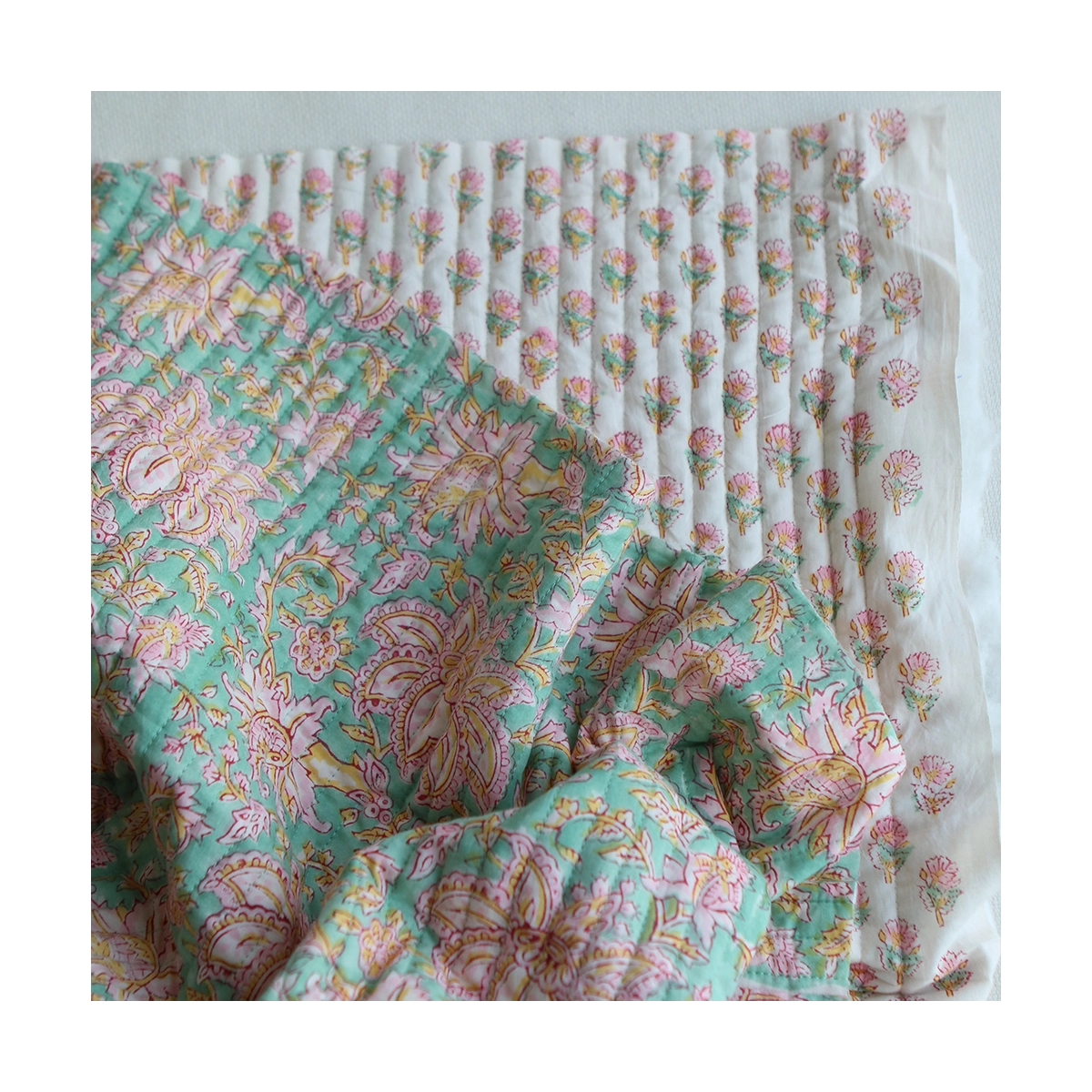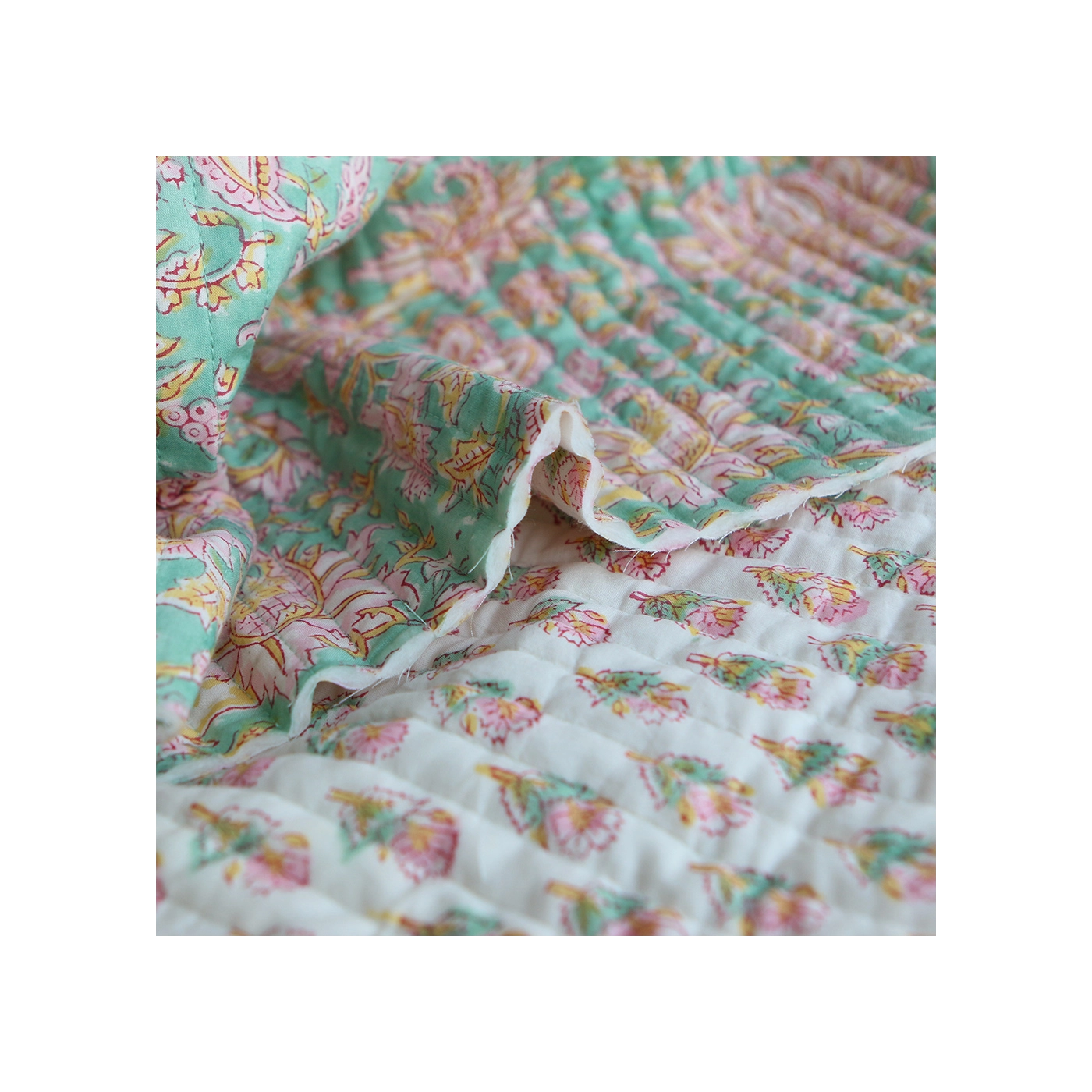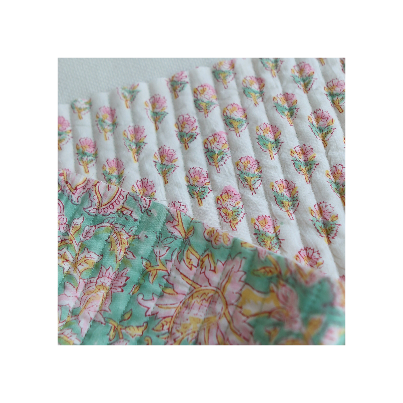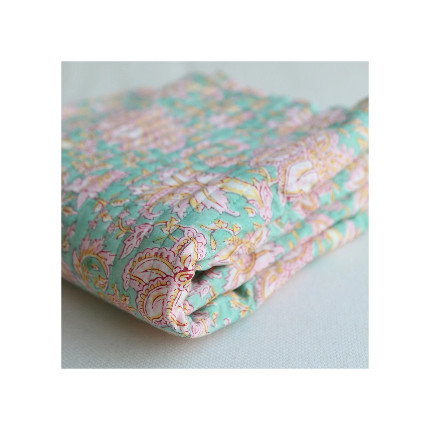 Nous avons décliné cette collection avec nos partenaires en Inde, afin de vous proposer pour le même motif le tissu en coton, et la version double face matelassée.