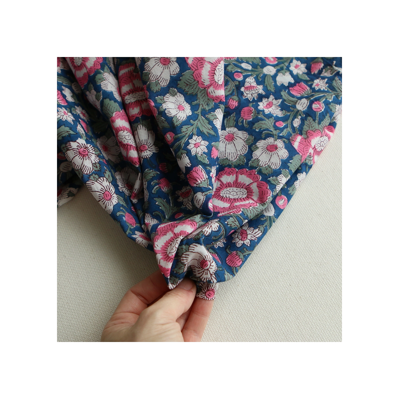 Découvrez l'authenticité et le charme du tissu indien en coton, imprimé à la main selon la technique ancestrale du block print. Ce tissu de qualité supérieure est idéal pour ajouter une touche exotique et artisanale à vos créations.