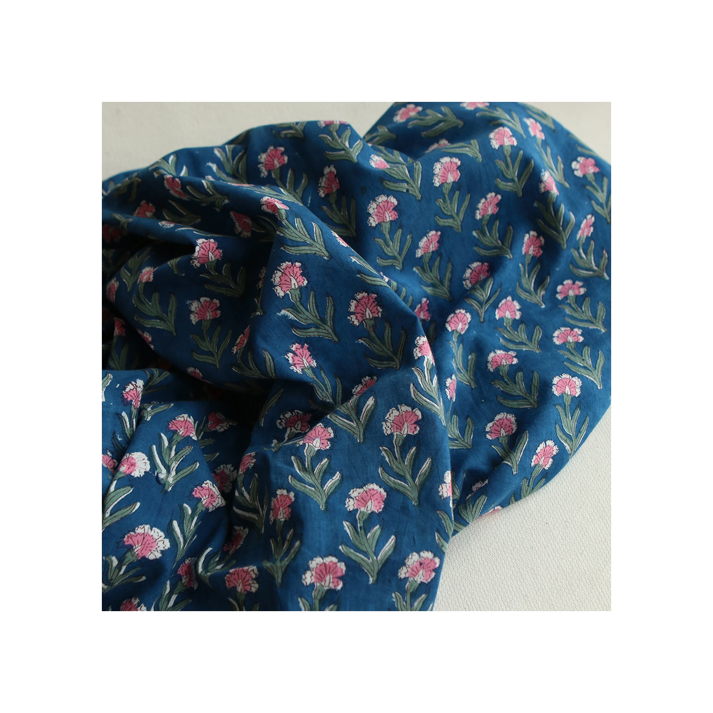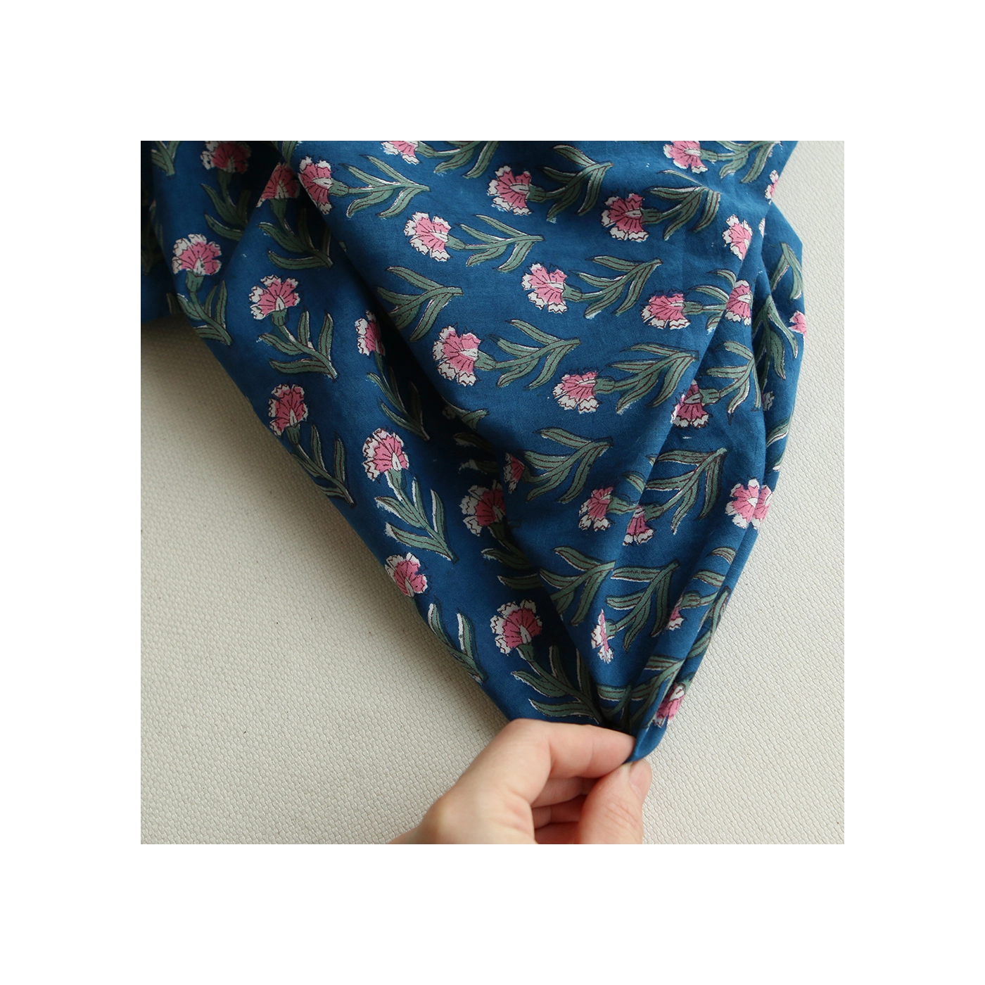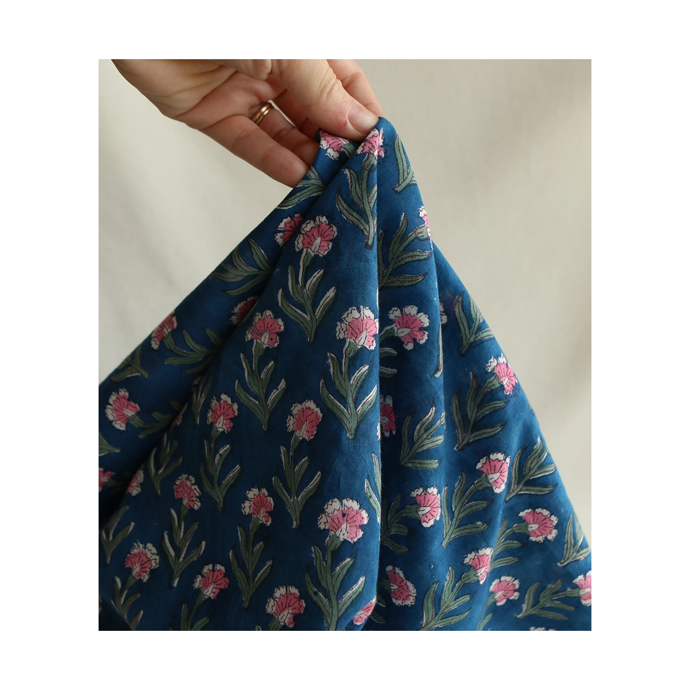 Le block print est un artisanat ancestral indien : le dessin est gravé sur un tampon en bois, chaque couleur nécessitant une étape d'impression distincte.