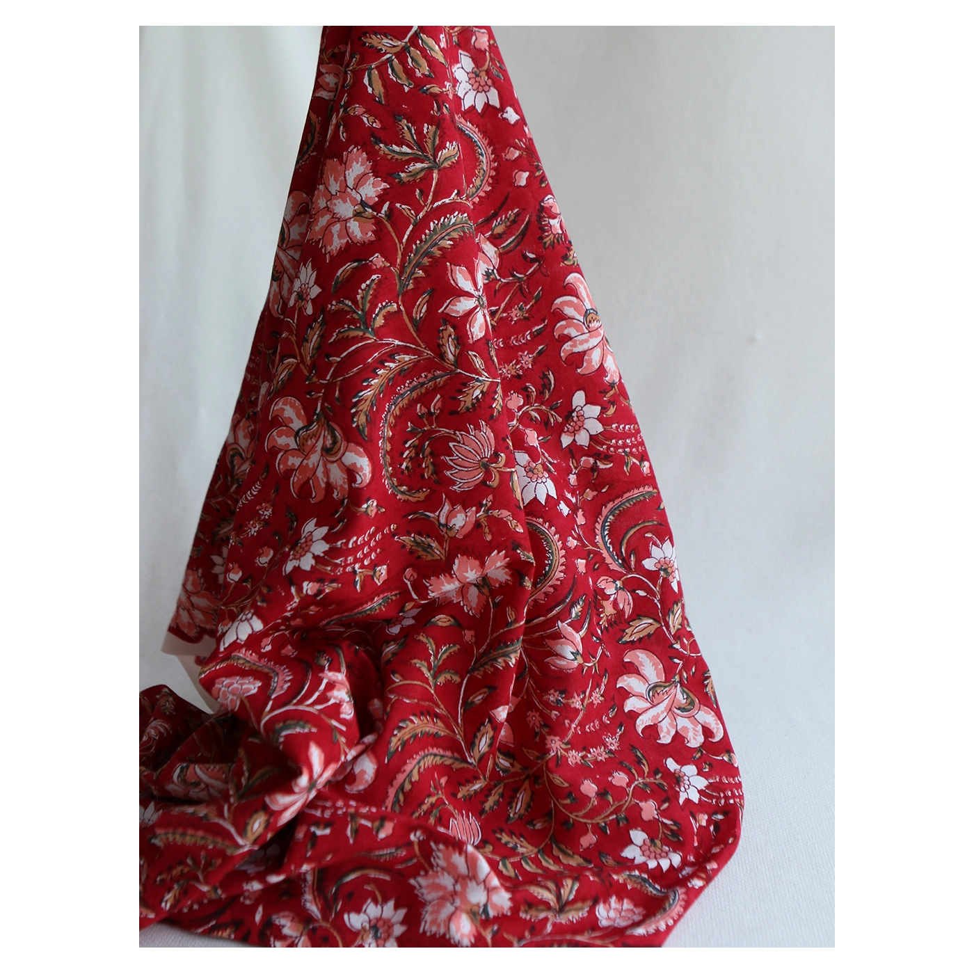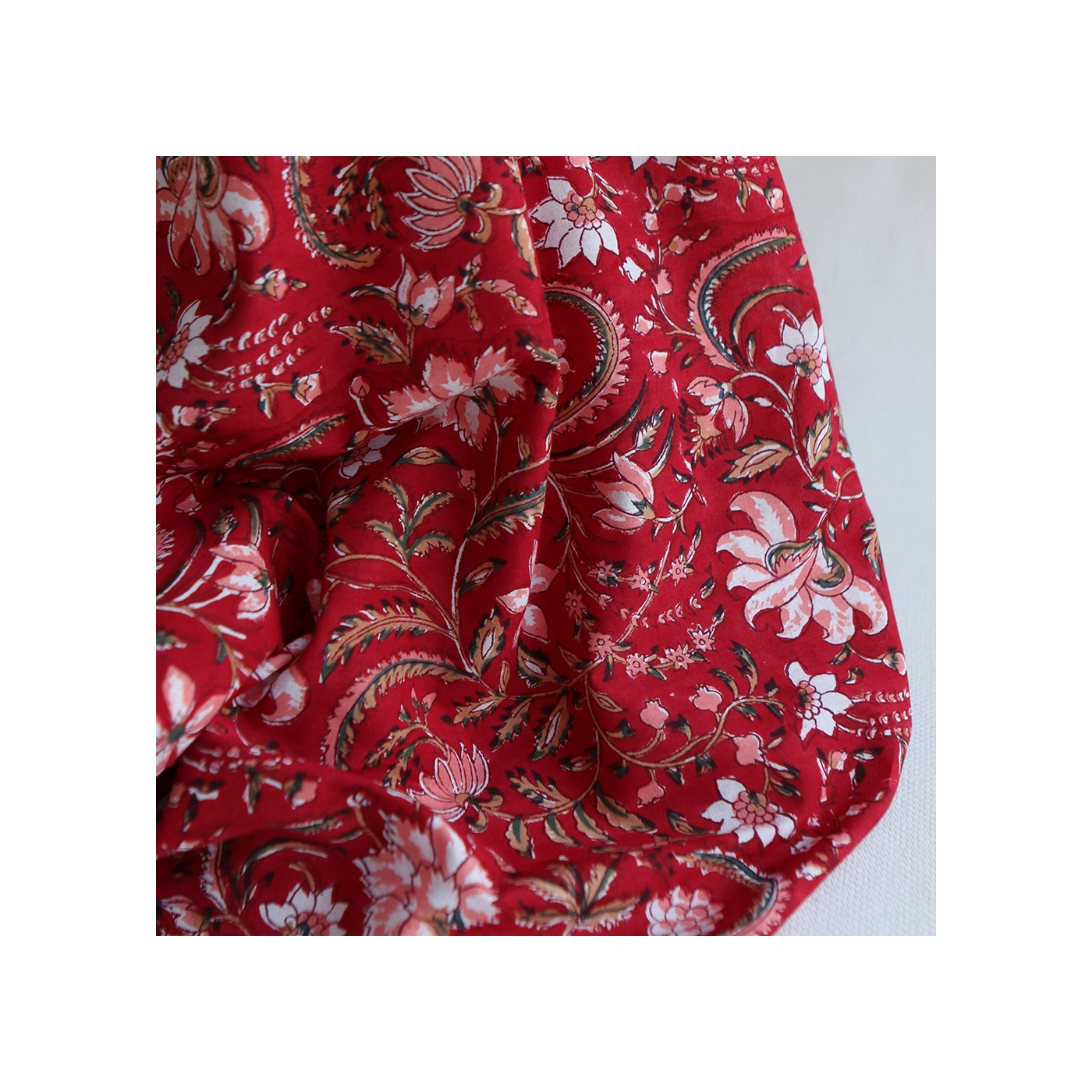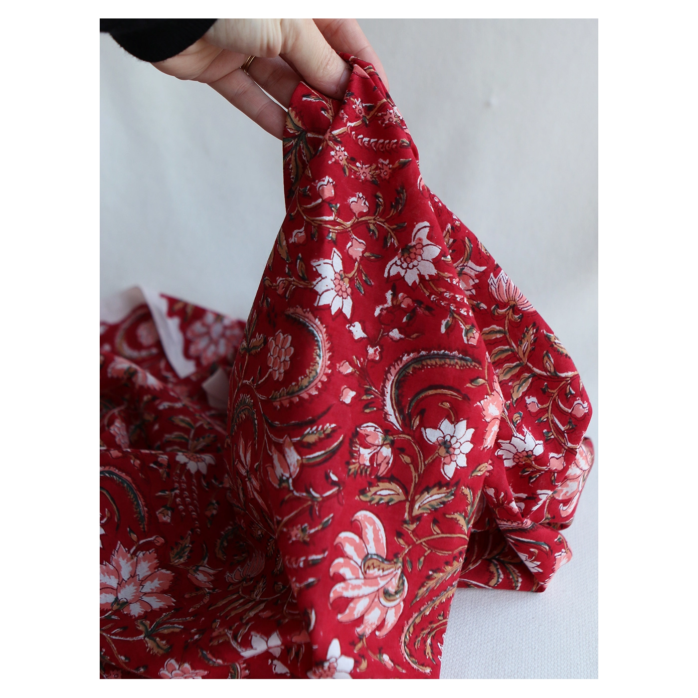 Le block print est un artisanat ancestral indien : le dessin est gravé sur un tampon en bois, chaque couleur nécessitant une étape d'impression distincte.