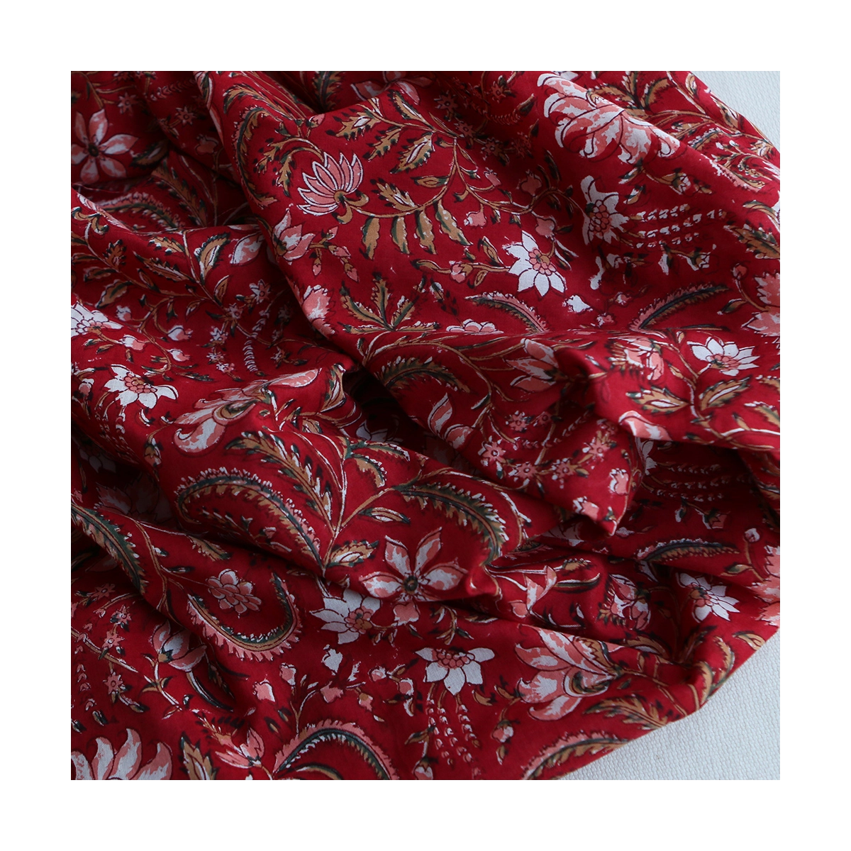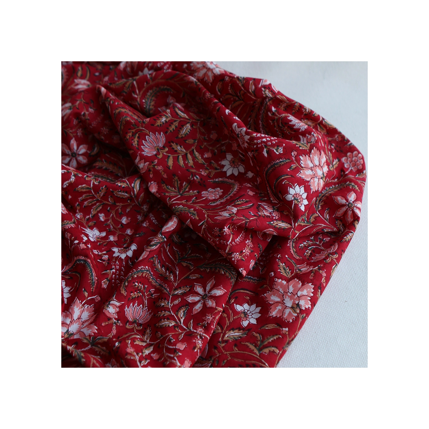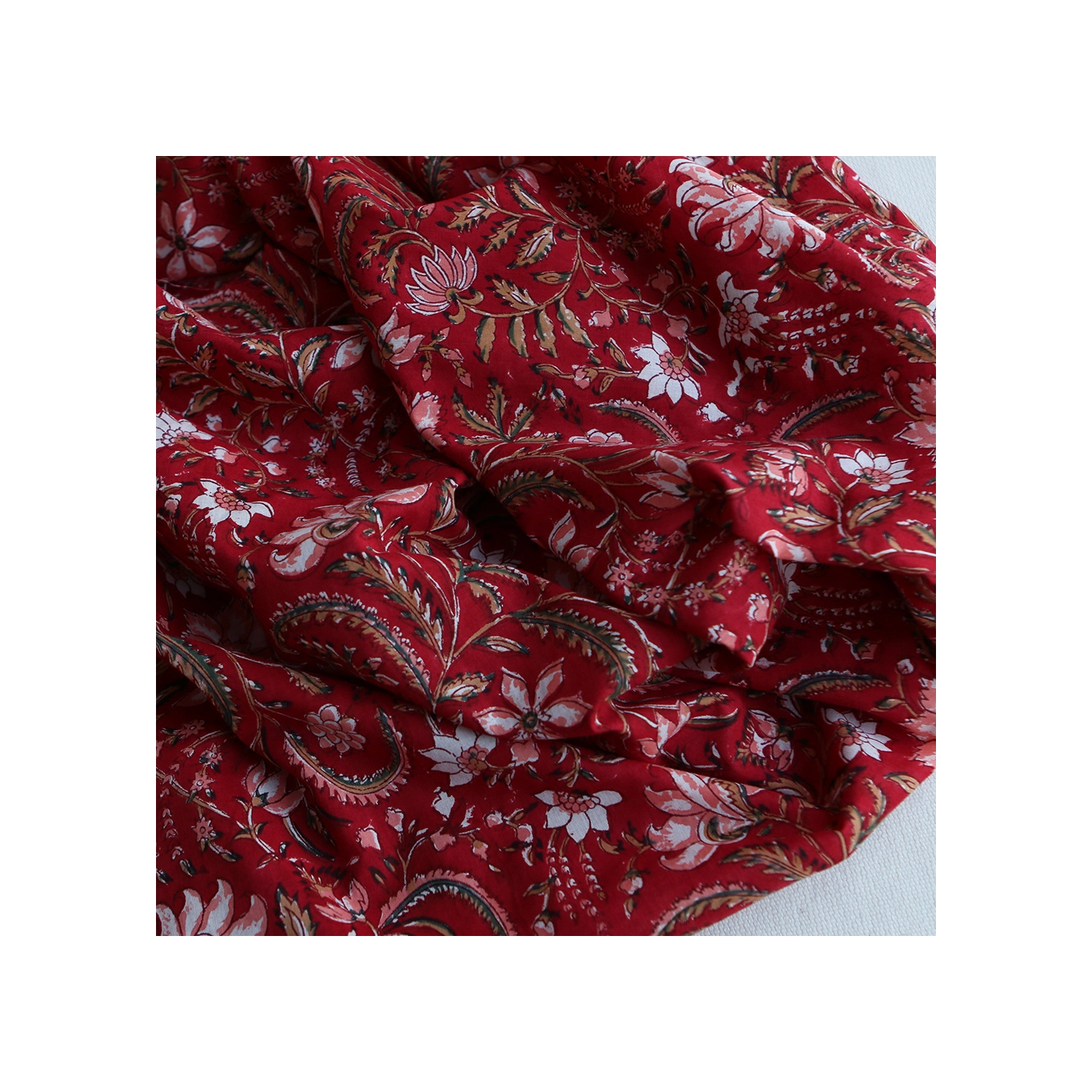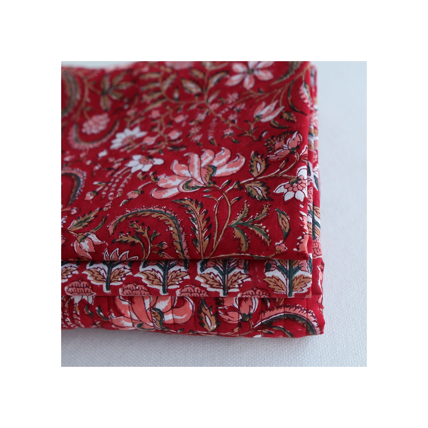 Le block print est un artisanat ancestral indien : le dessin est gravé sur un tampon en bois, chaque couleur nécessitant une étape d'impression distincte.