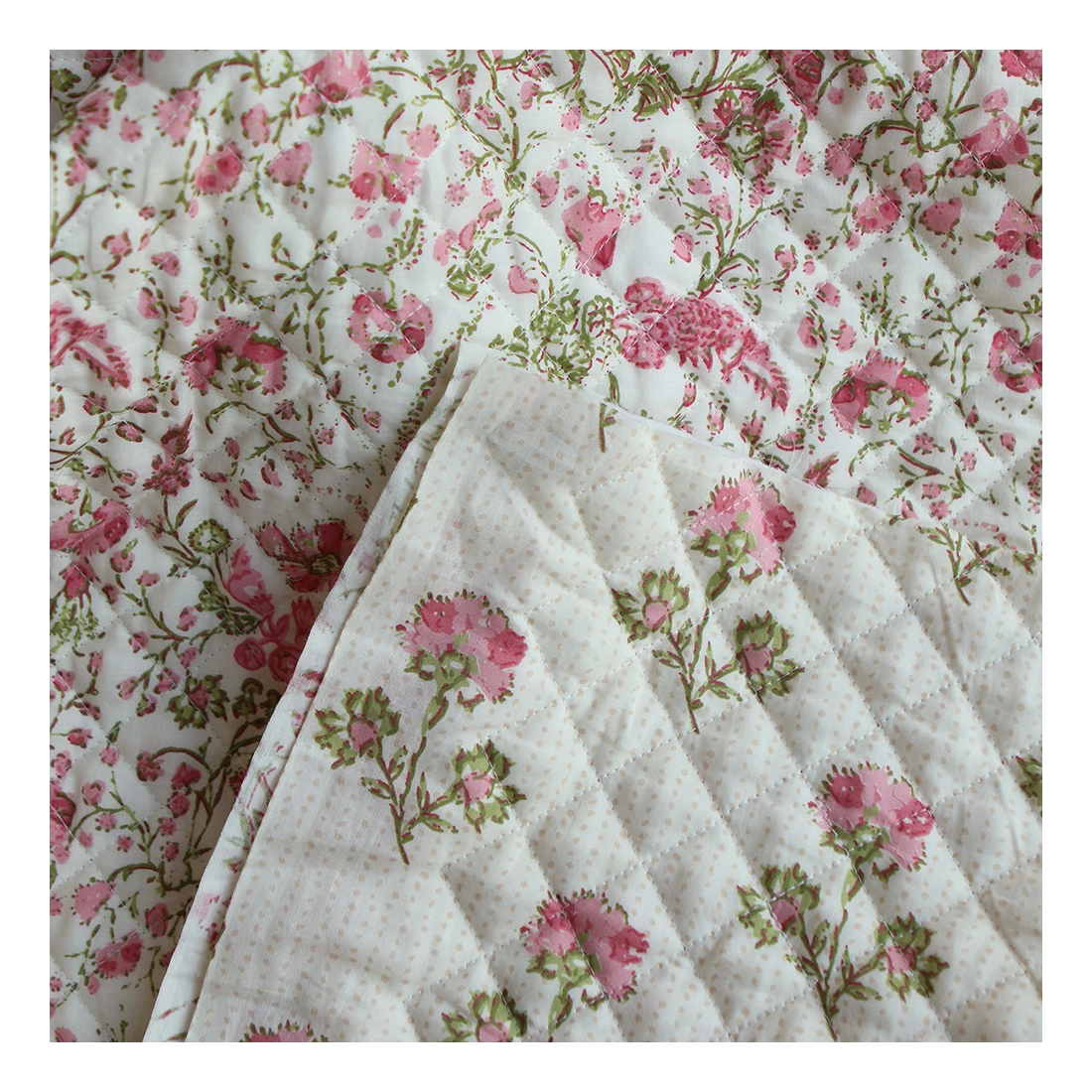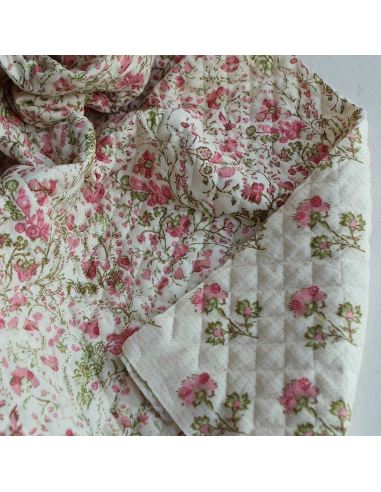 Karishma rose - Tissu indien matelassé double face coton hand block largeur 100cm