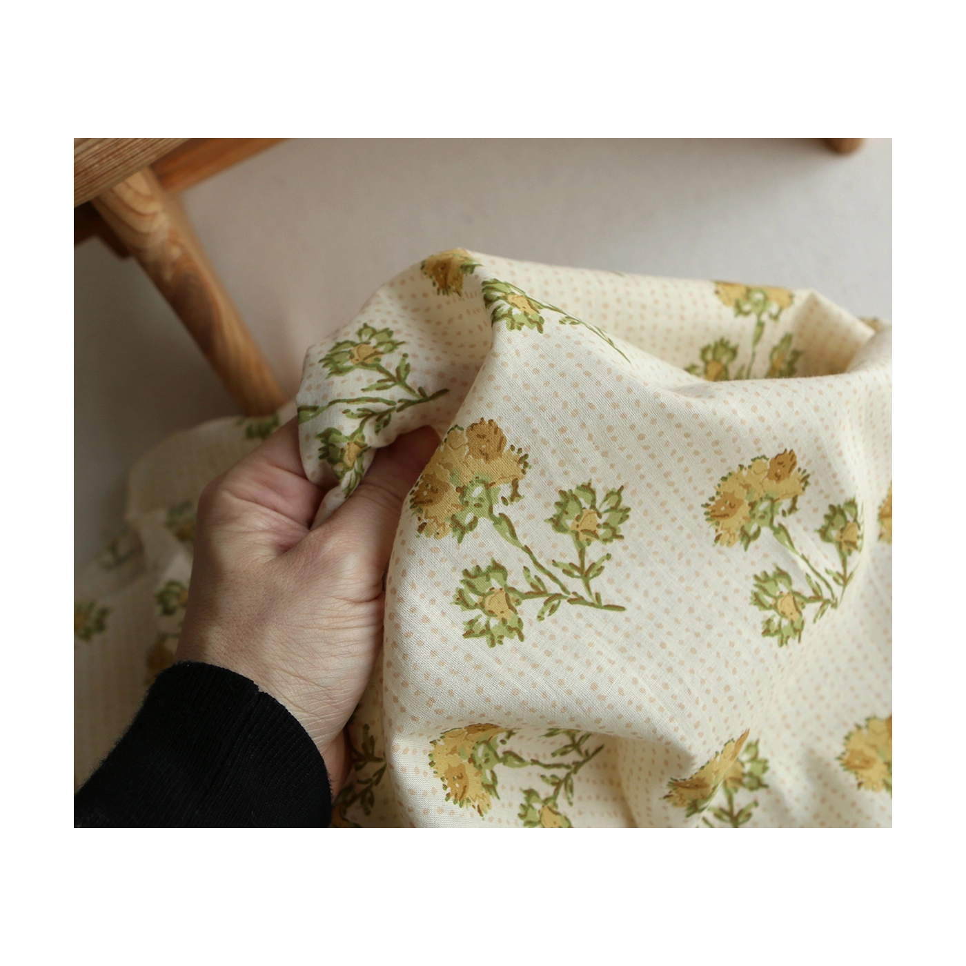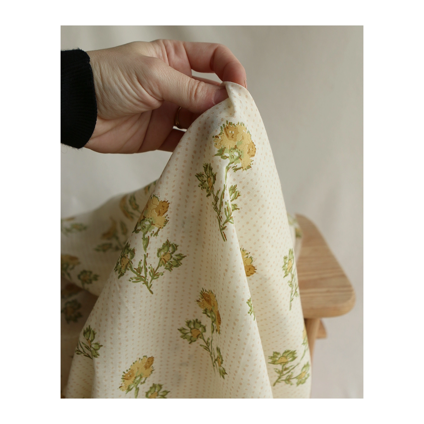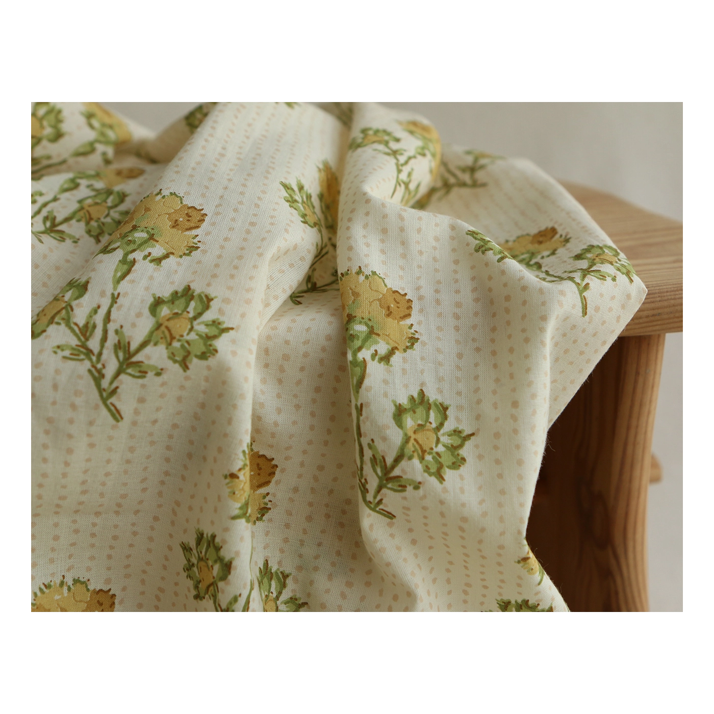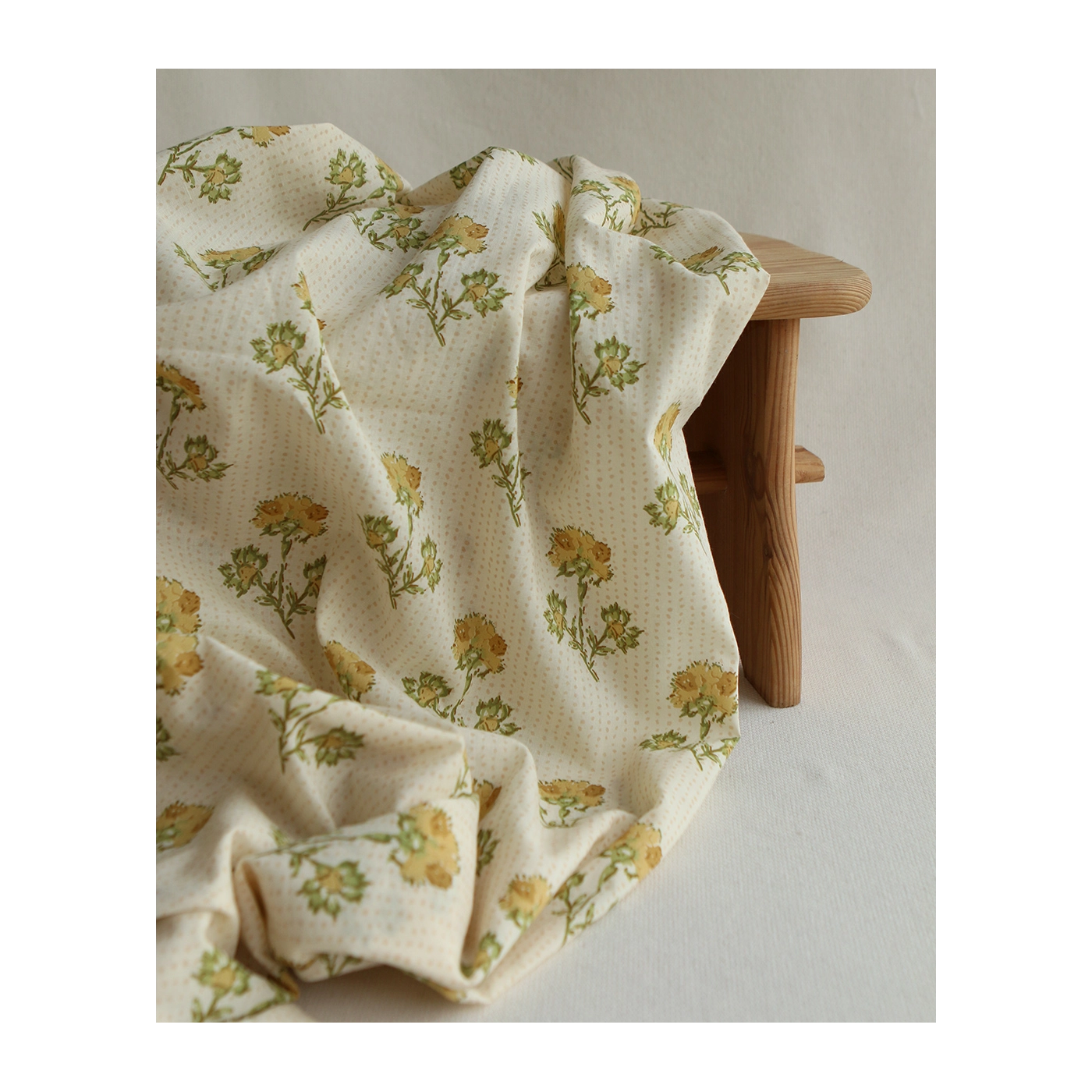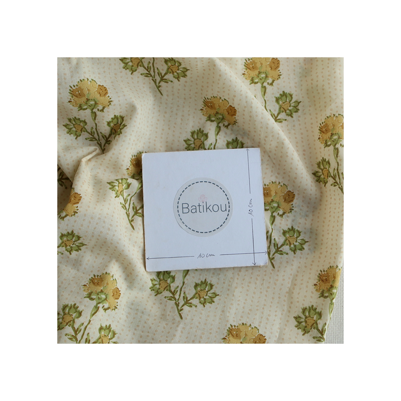 A noter que le processus artisanal (impression à la main, au tampon en bois) de ce tissu fait que chaque pièce est unique et que l'impression n'est pas aussi parfaite qu'un processus industriel.
