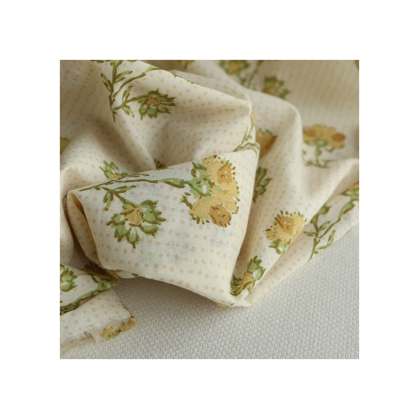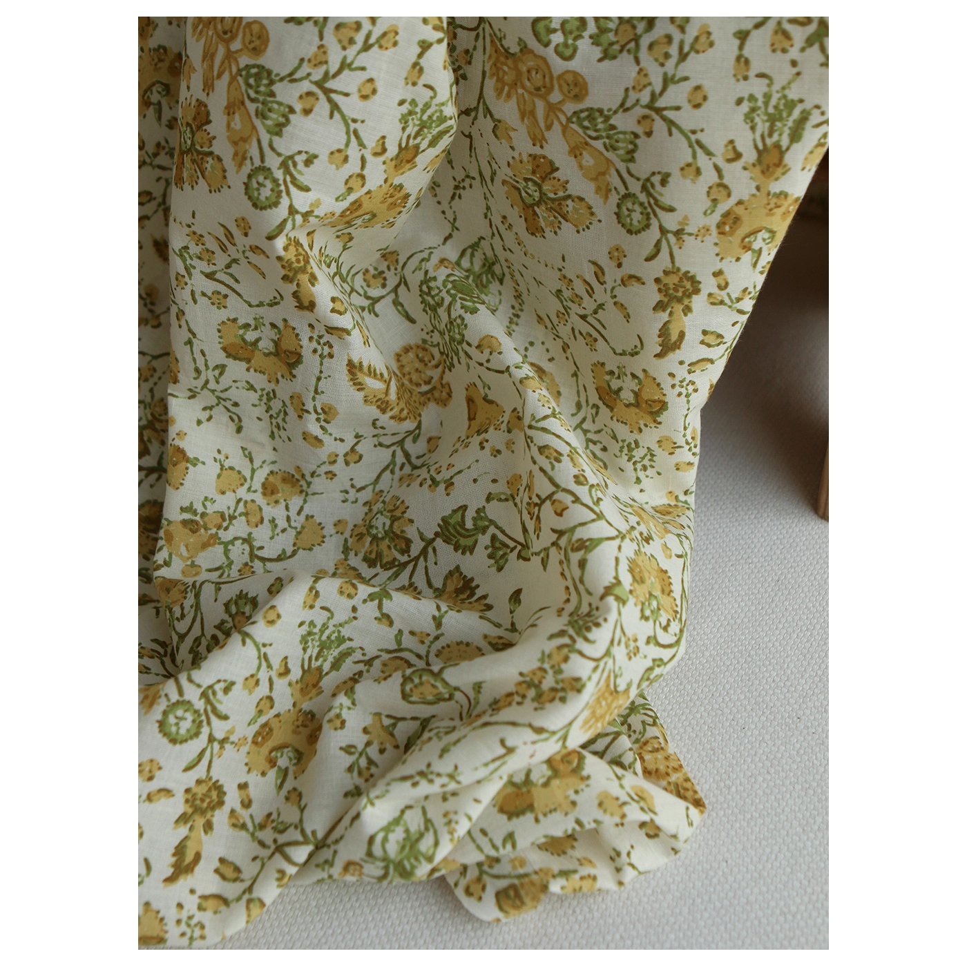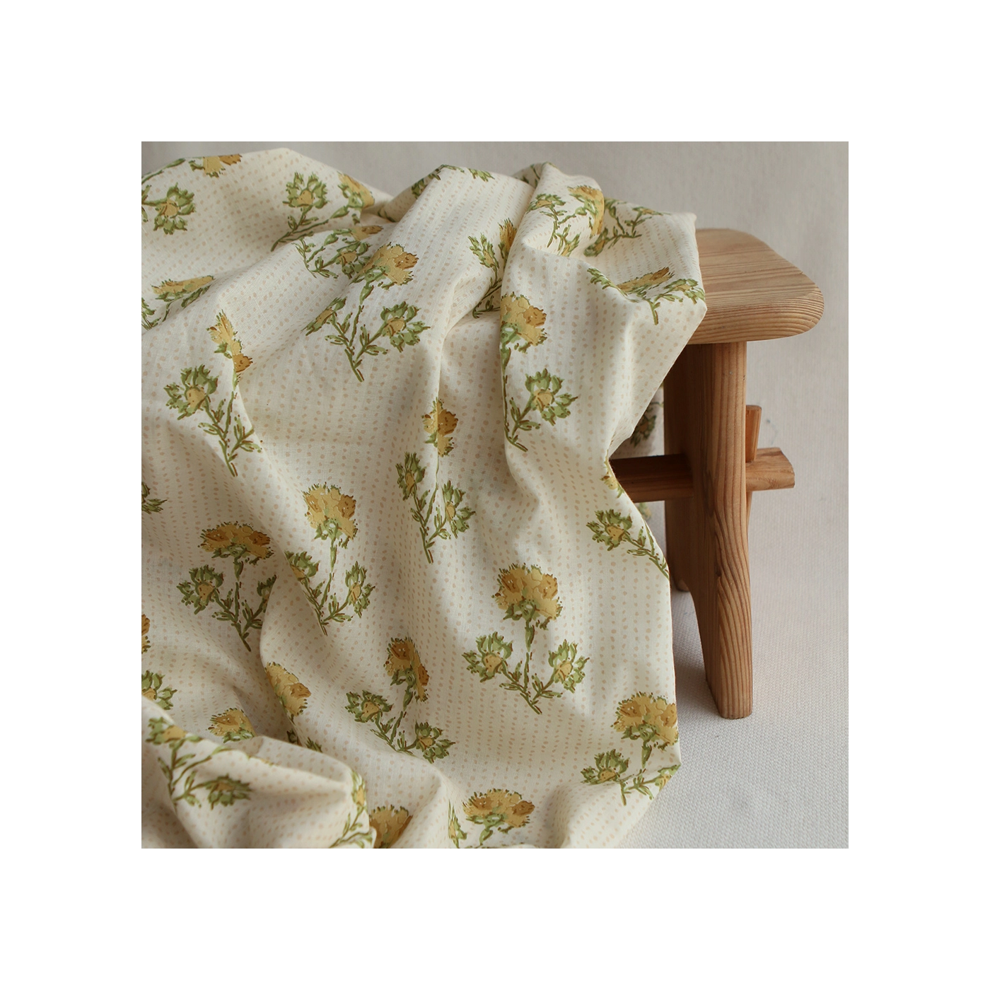 Karishma jaune B - Tissu indien en coton imprimé main Hand Block Artisanal