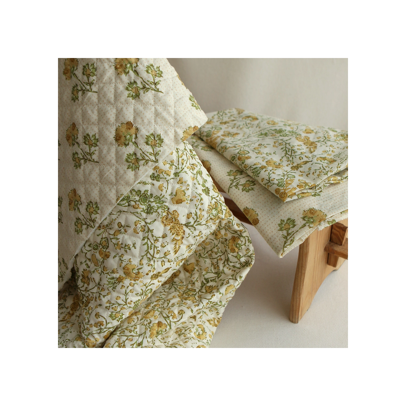 Le block print est un artisanat ancestral indien : le dessin est gravé sur un tampon en bois, chaque couleur nécessitant une étape d'impression distincte.