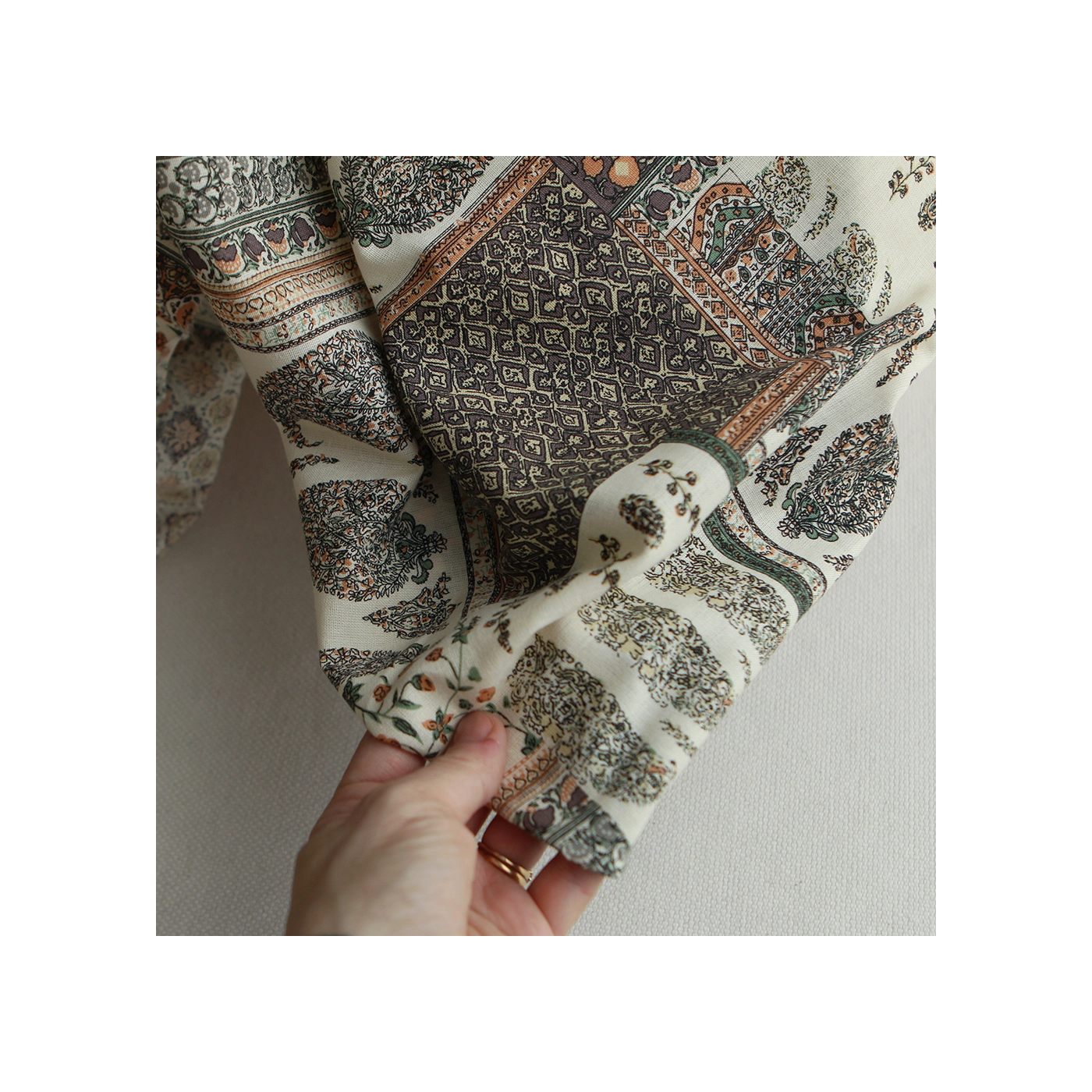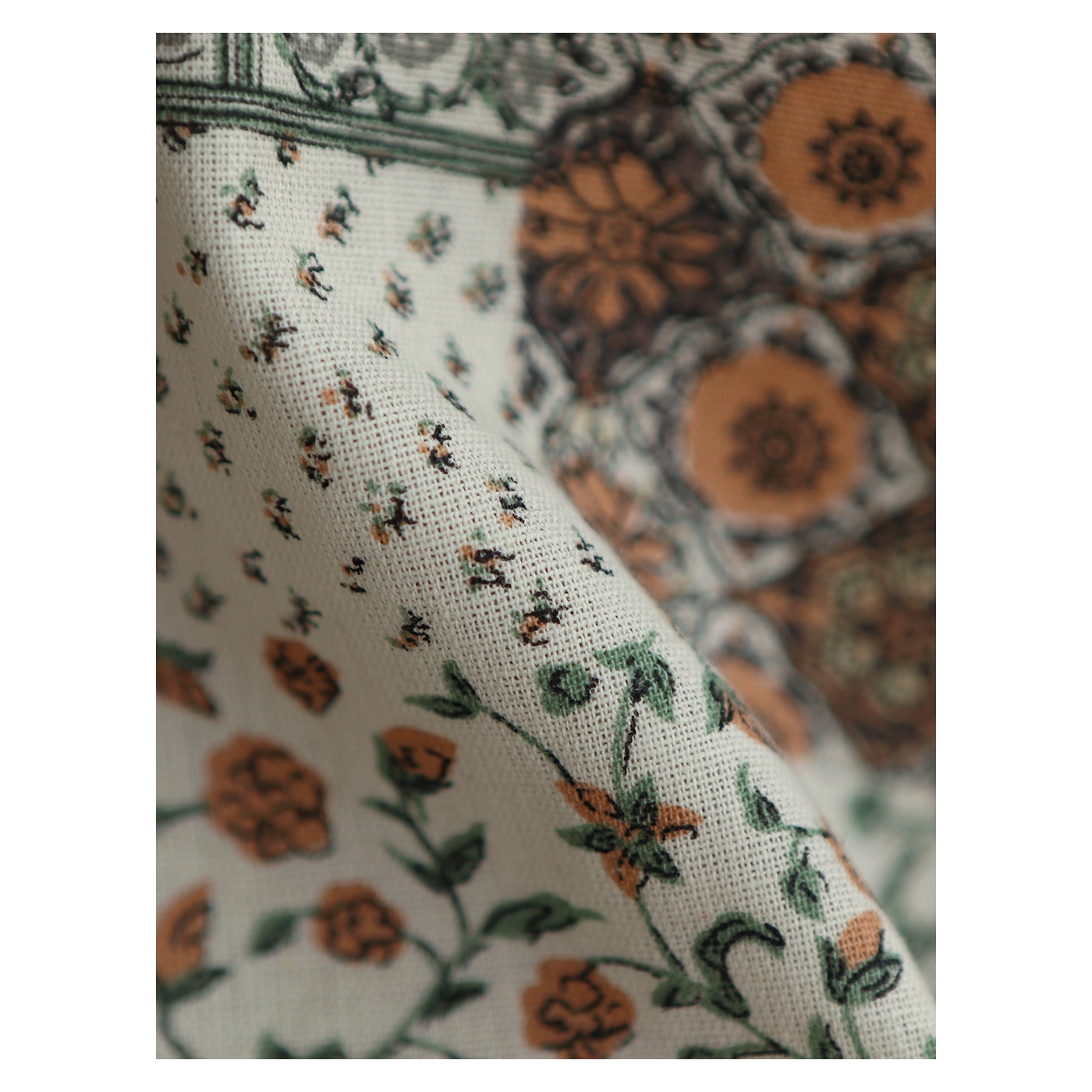 Riya - Tissu indien coton effet lin Hand Block Artisanal