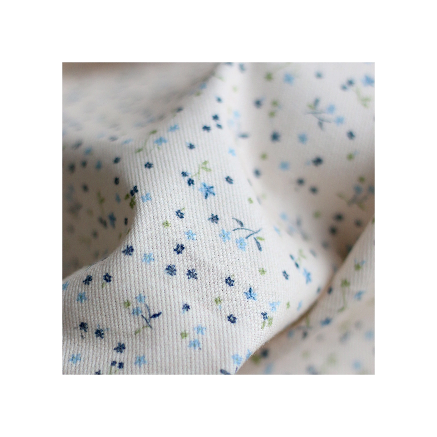 Leo - Piqué fin de coton organique duveteux imprimé bleu