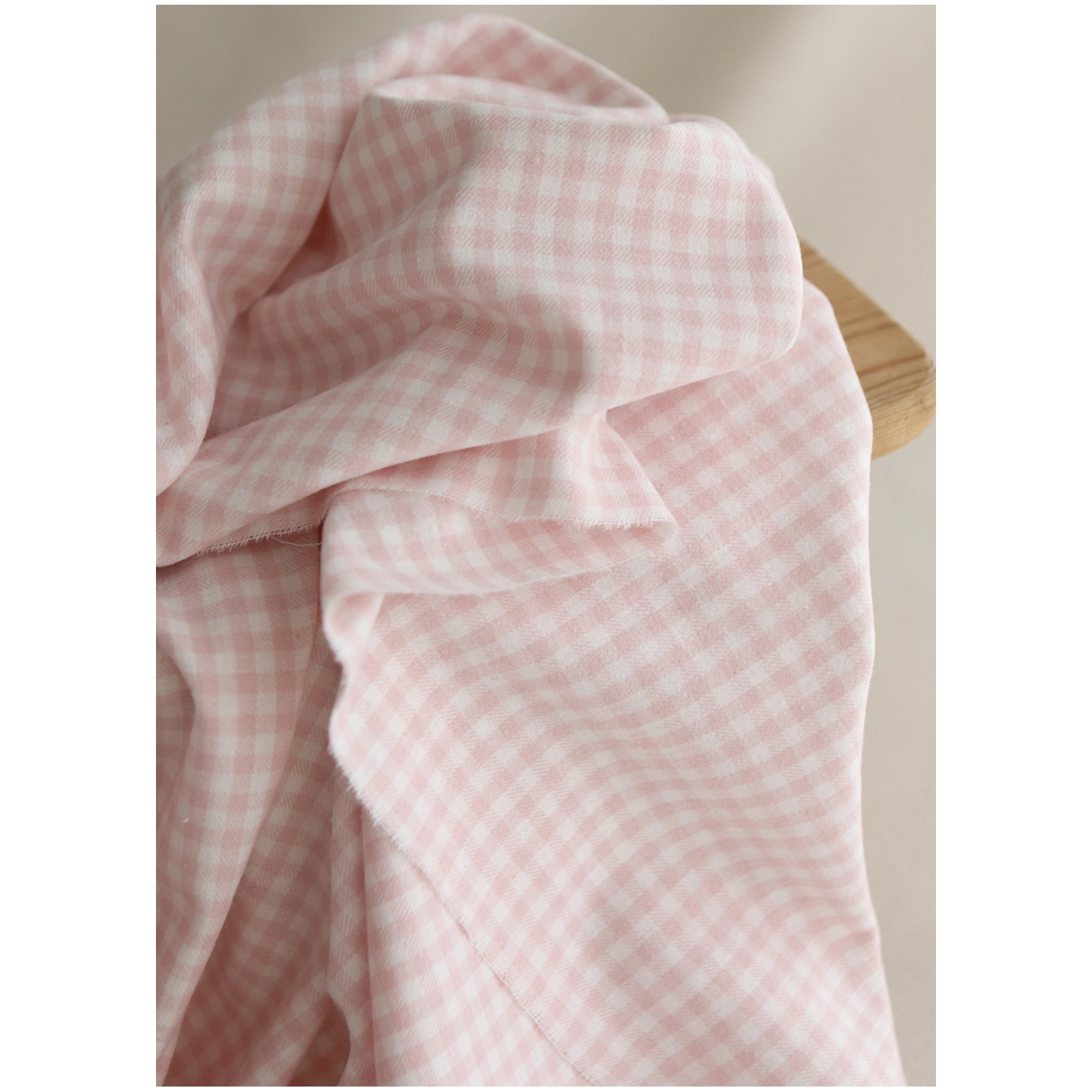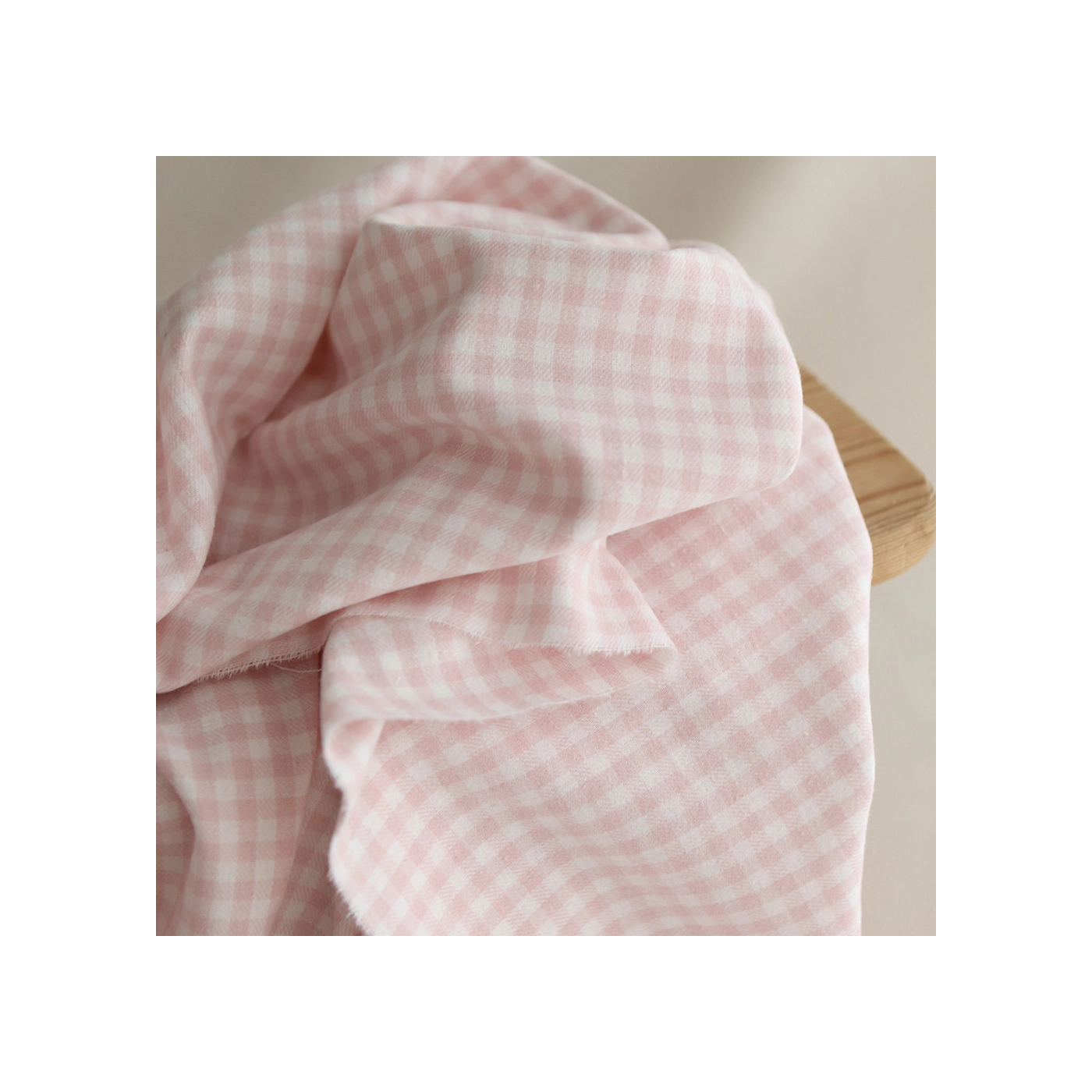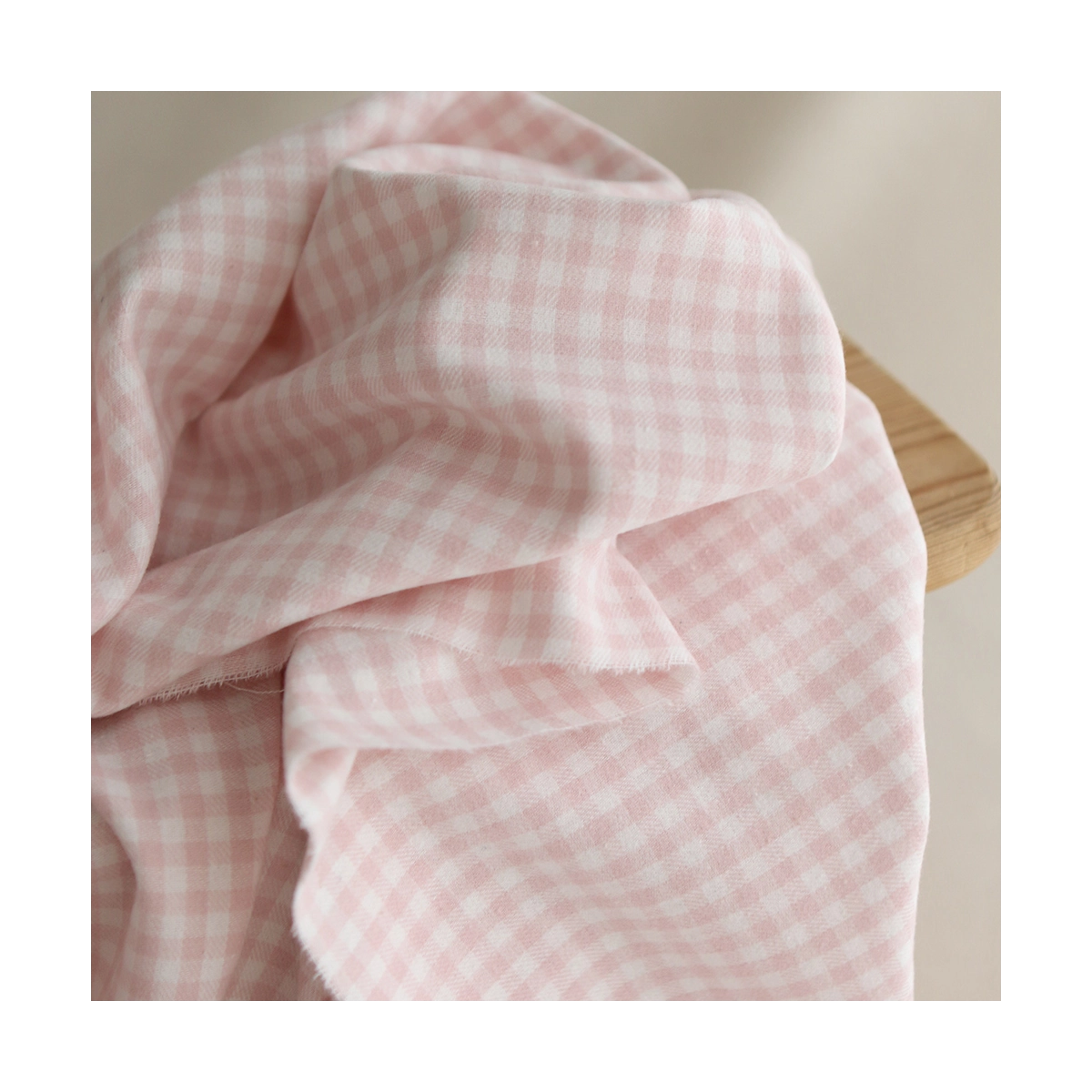 Gabin - Coton gratté style flanelle tissage vichy rose layette
