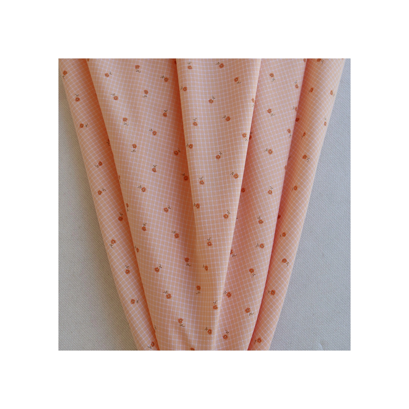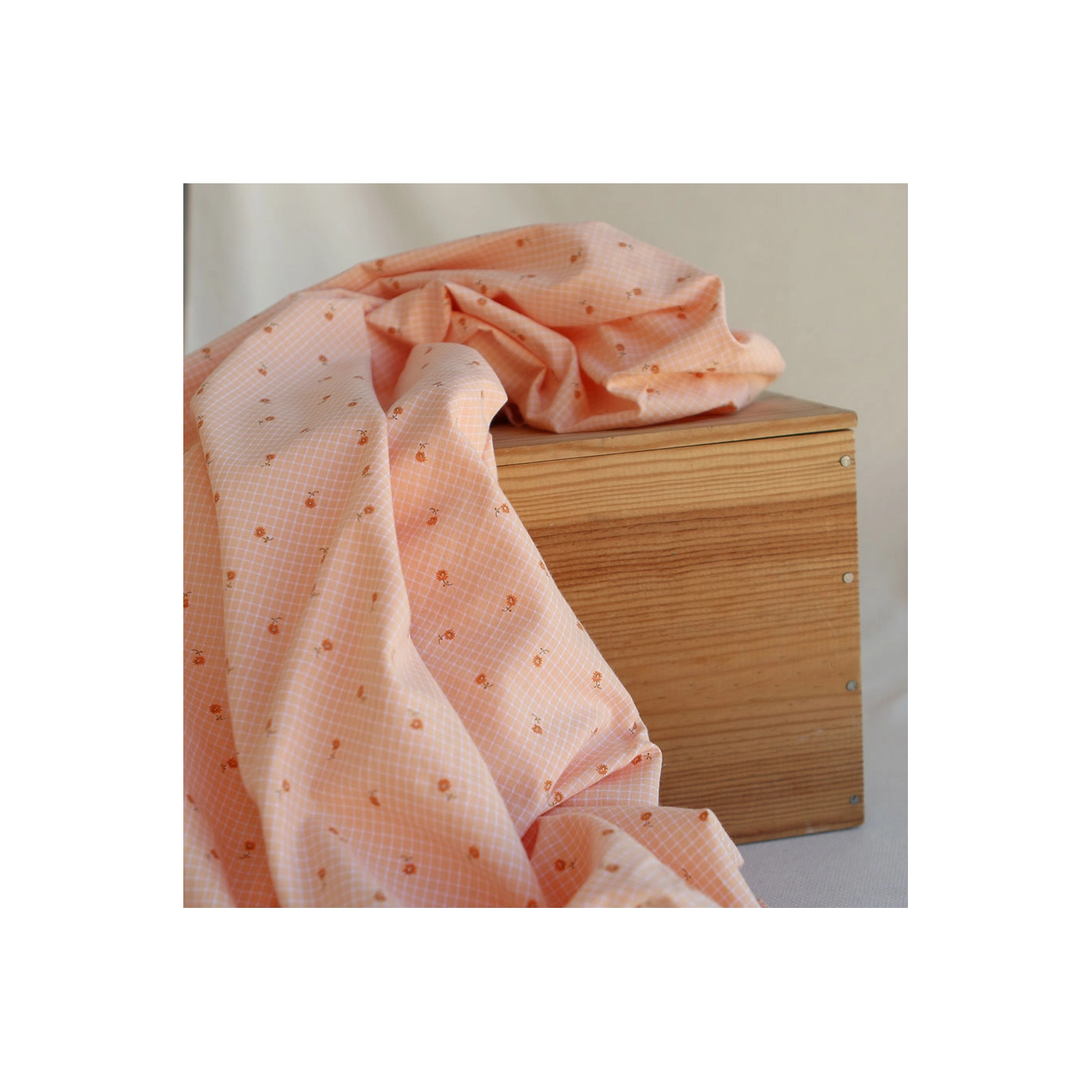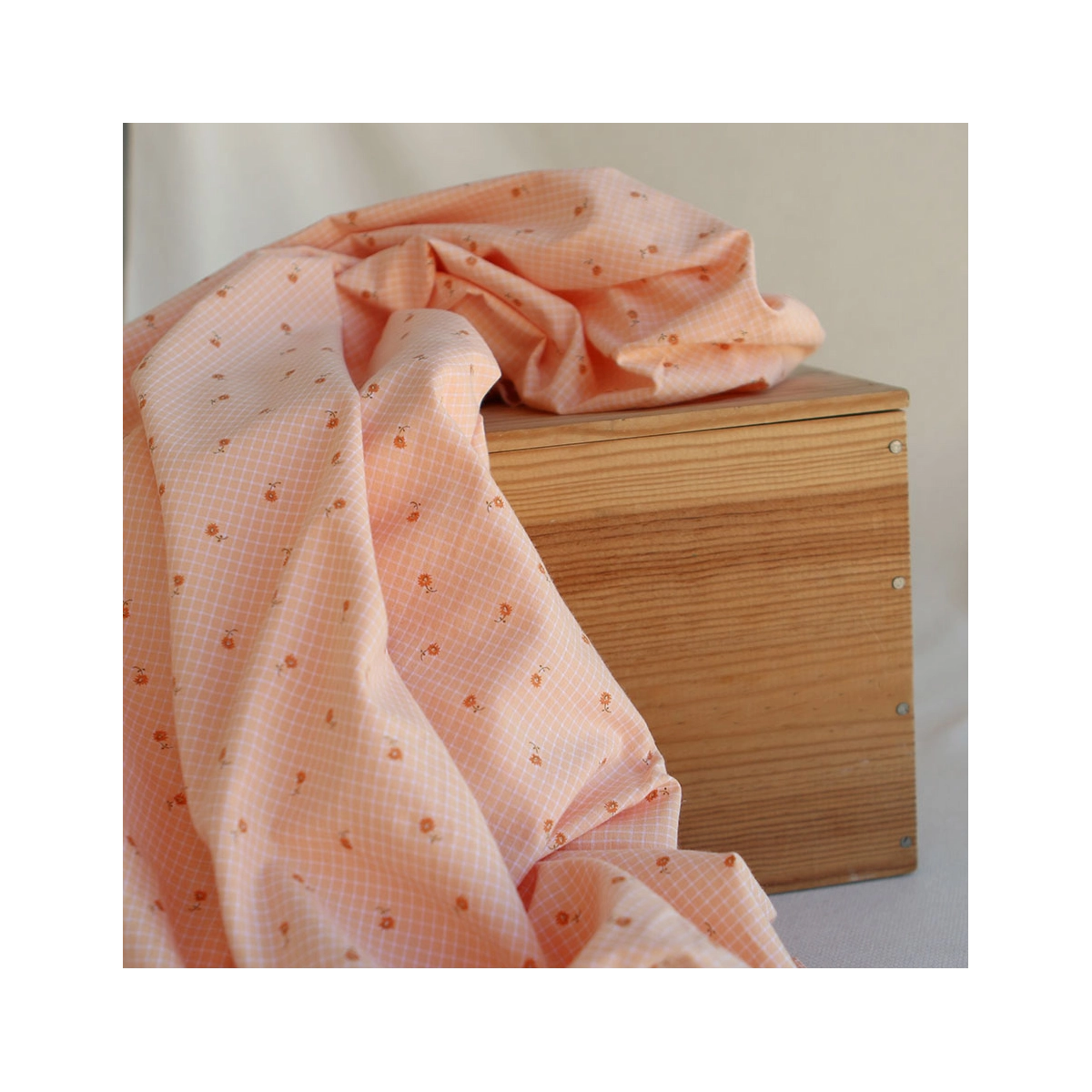 Seersucker quadrillage fin minis fleurs fond sorbet abricot