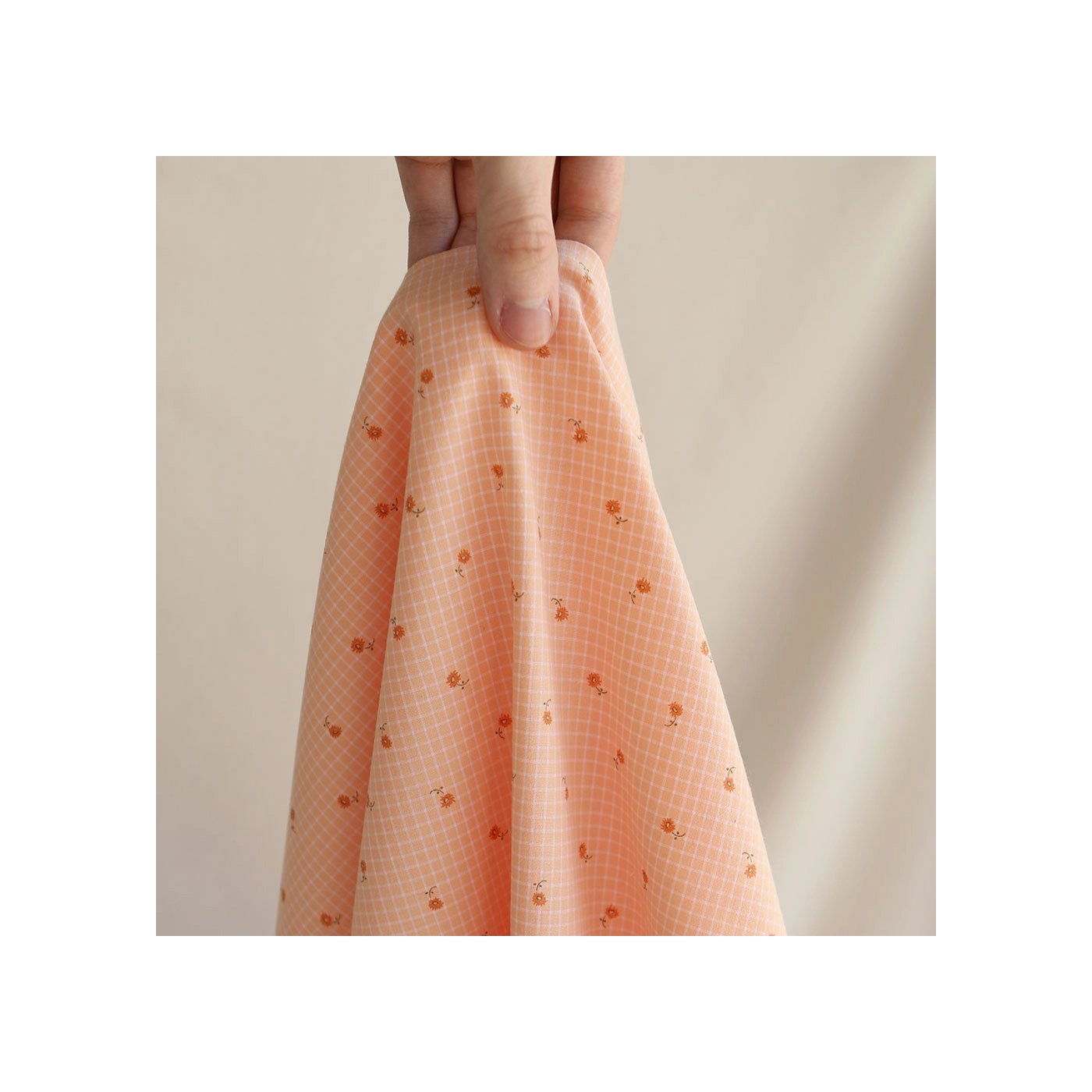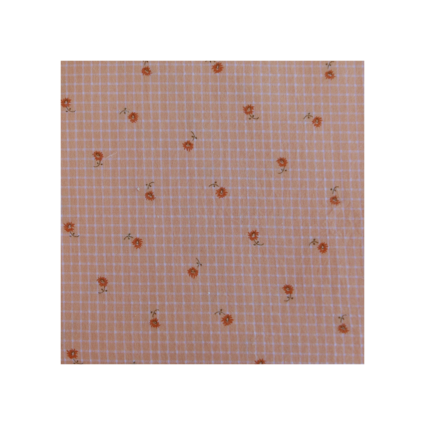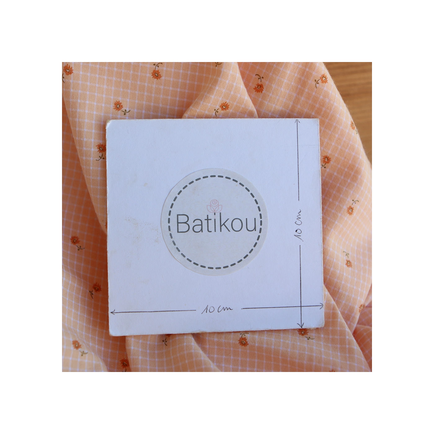 Seersucker quadrillage fin minis fleurs fond sorbet abricot