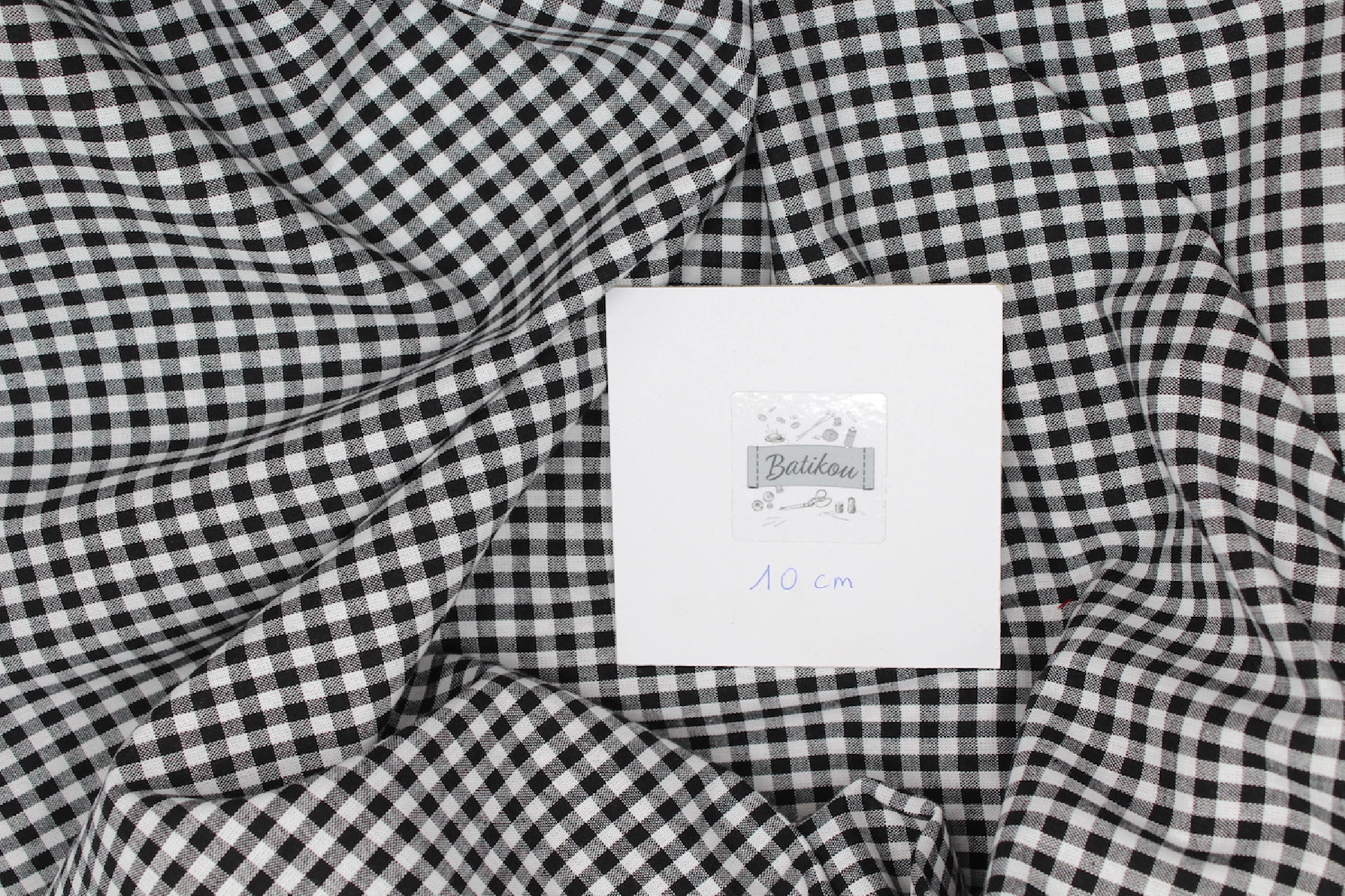 La photo avec le carré blanc permet d'avoir un repère de mesure (le carré fait 10cm de côté) et de couleur, en effet il est blanc optique. Cette indication peut vous permettre de mieux percevoir le rendu du tissu.