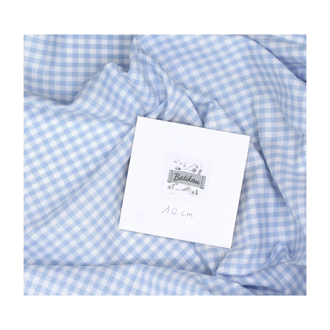 Coton vichy carreaux bleu ciel et blanc 5mm