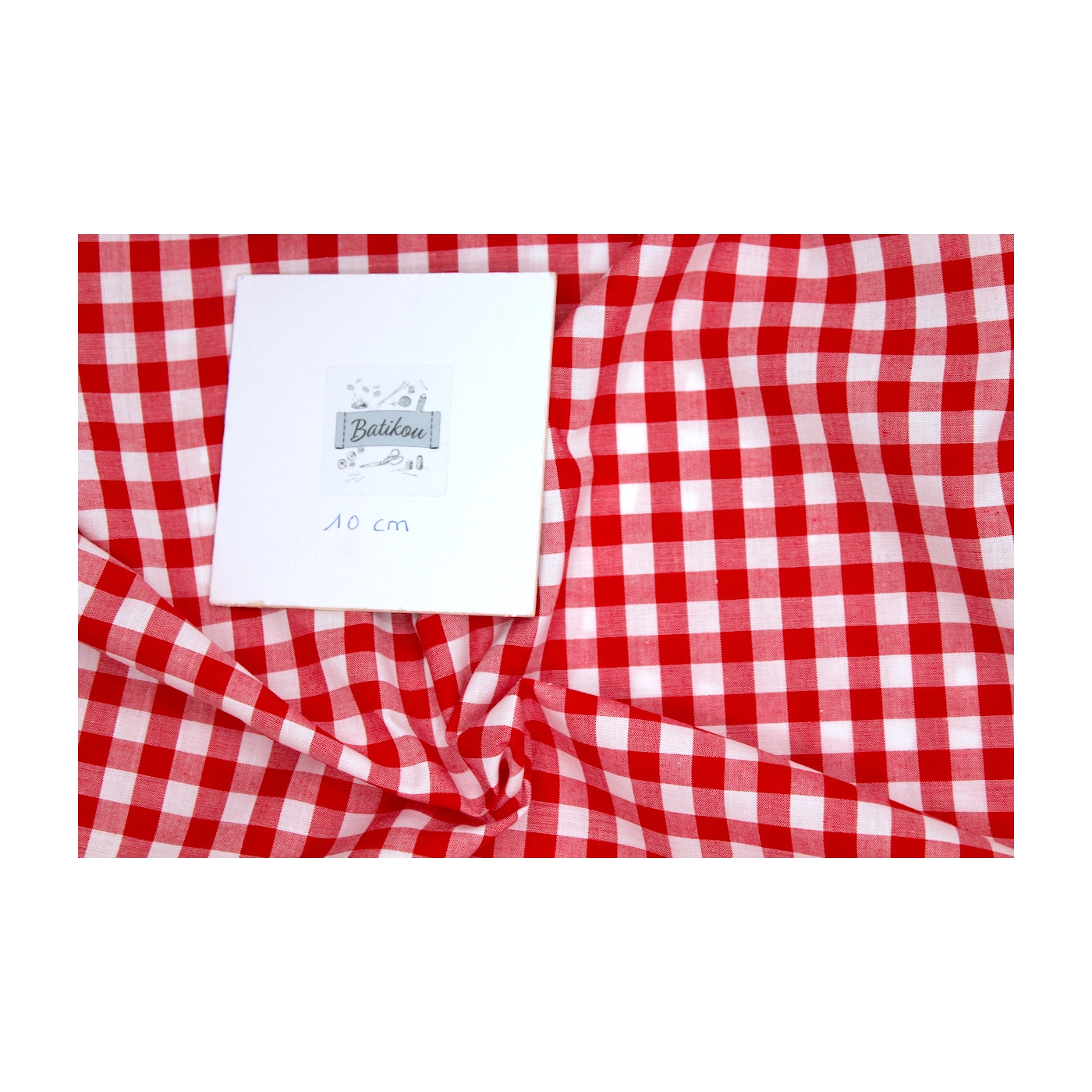 Dick - Seersucker / Coton gaufré texturé vichy 7mm écru et bleu jean tendre
