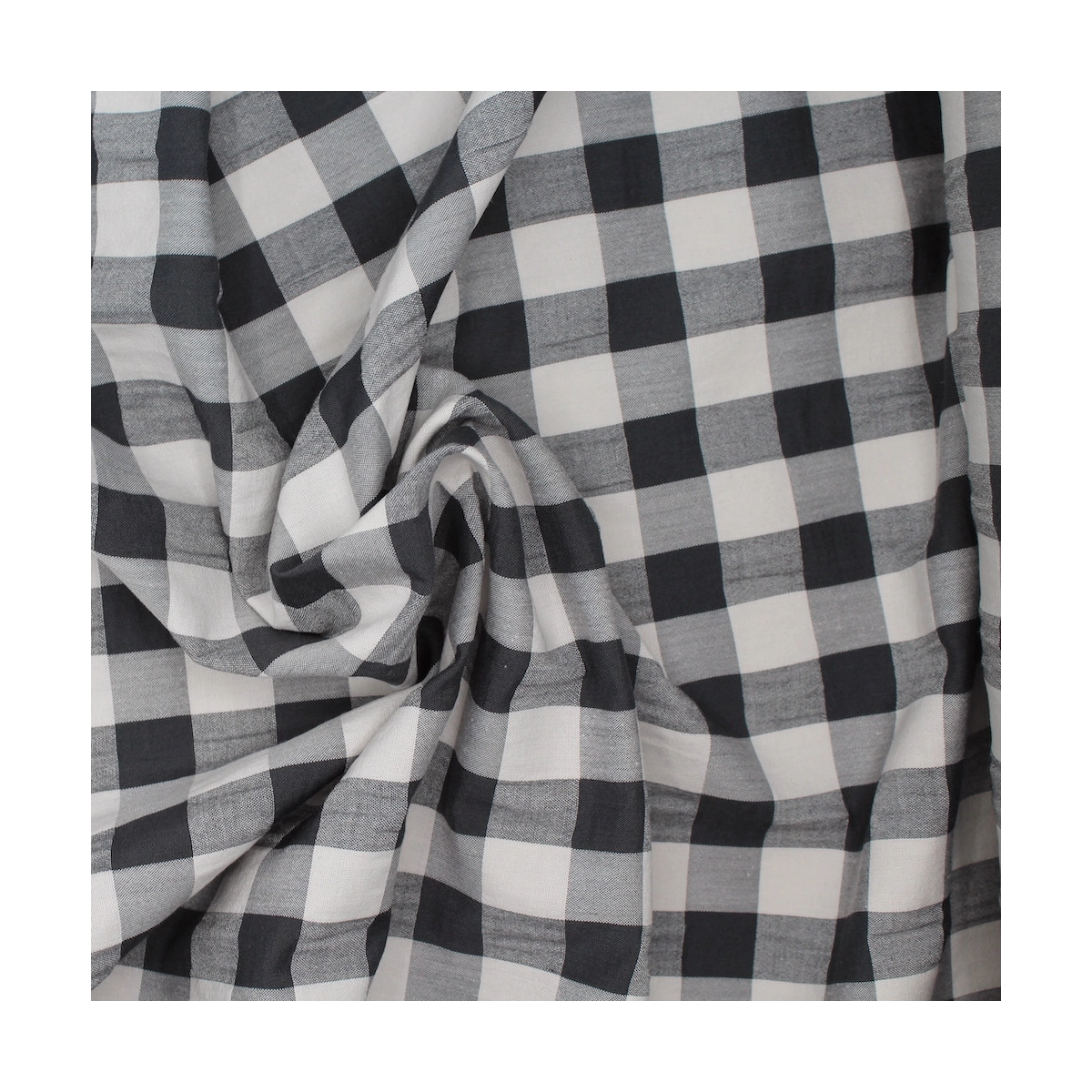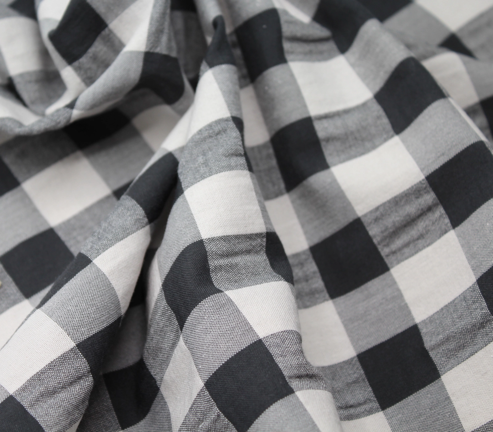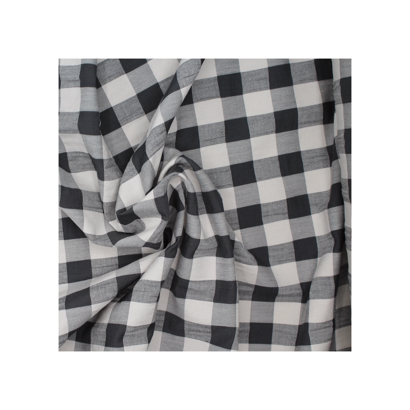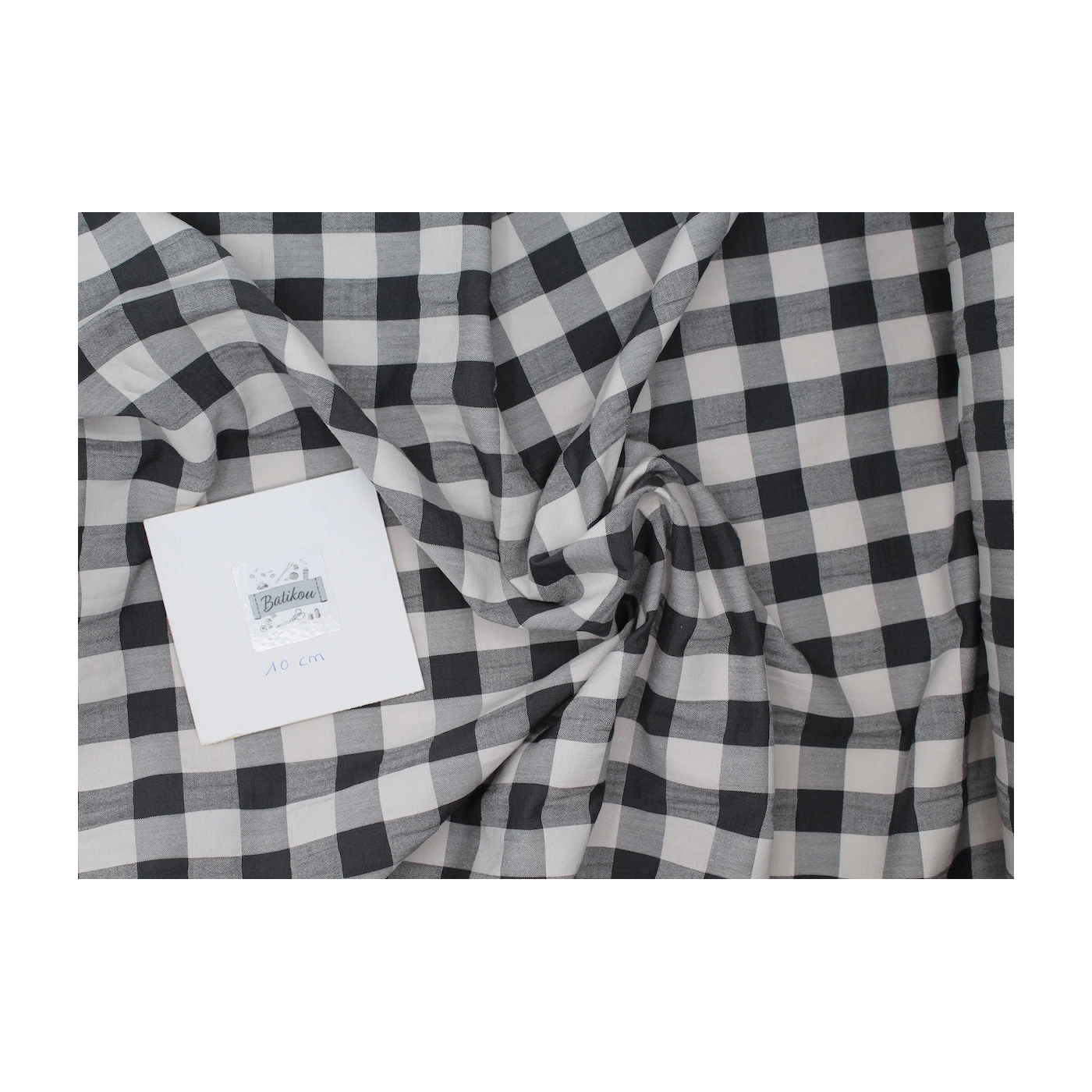 Seersucker / Coton gaufré vichy grand anthracite et écru