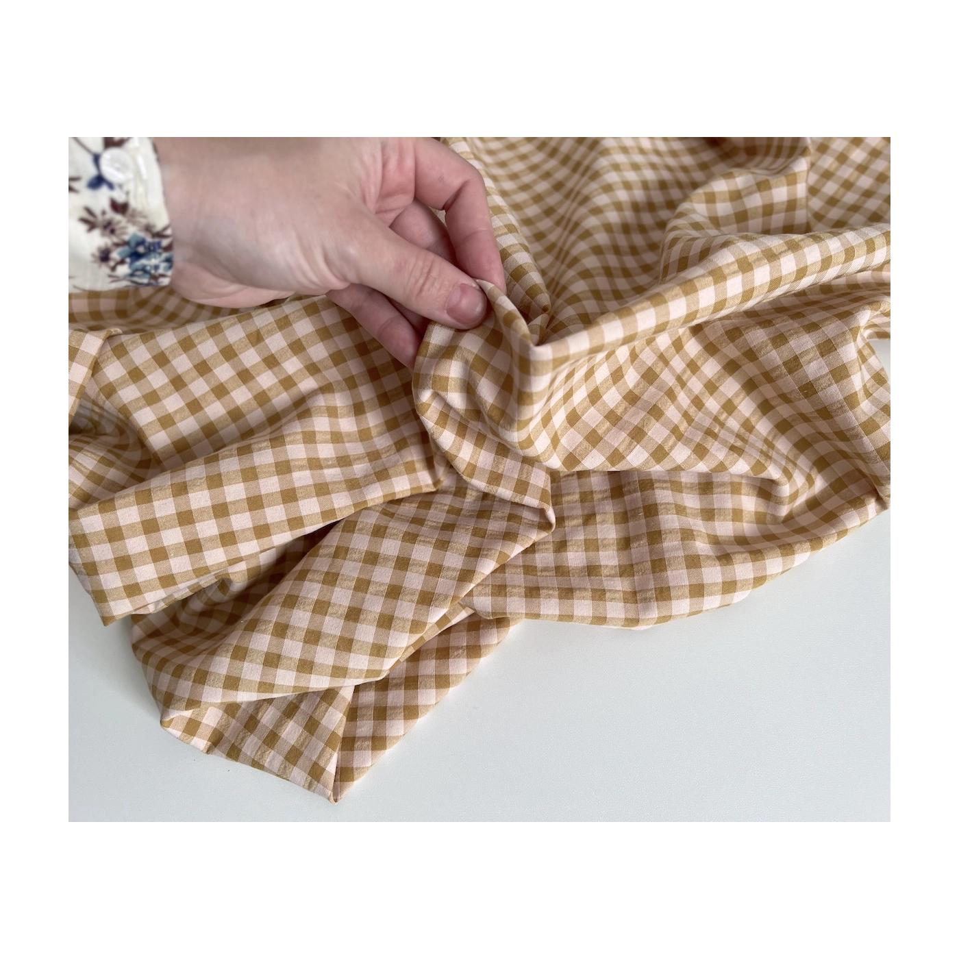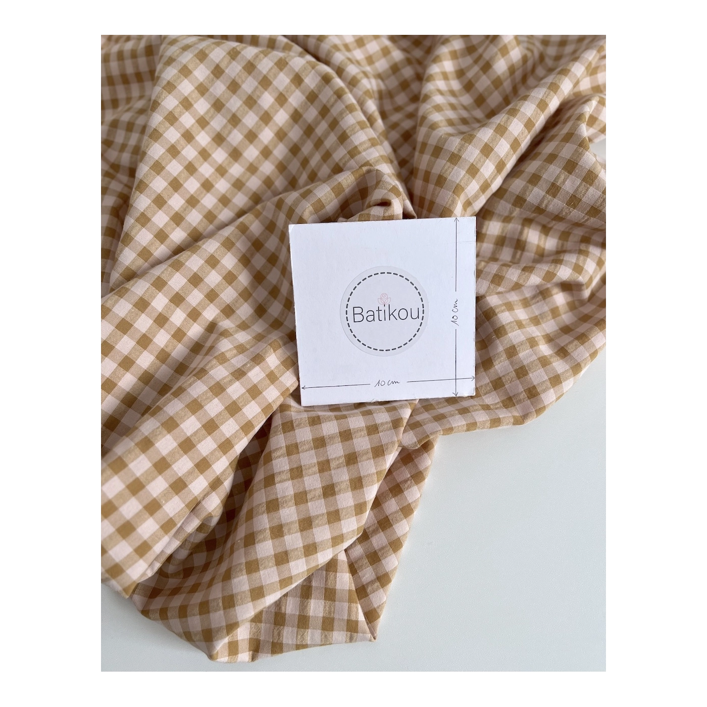 La photo avec le carré blanc permet d'avoir un repère de mesure (le carré fait 10cm de côté) et de couleur, en effet il est blanc optique. Cette indication peut vous permettre de mieux percevoir le rendu du tissu.