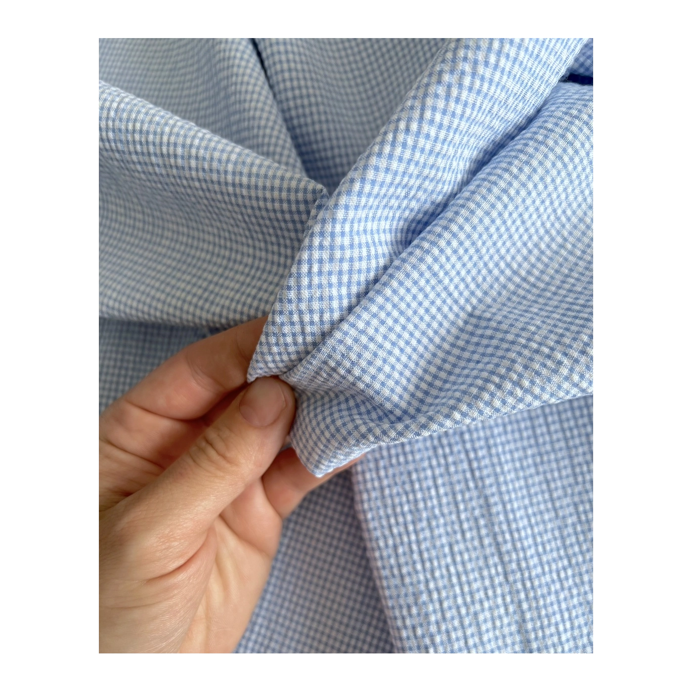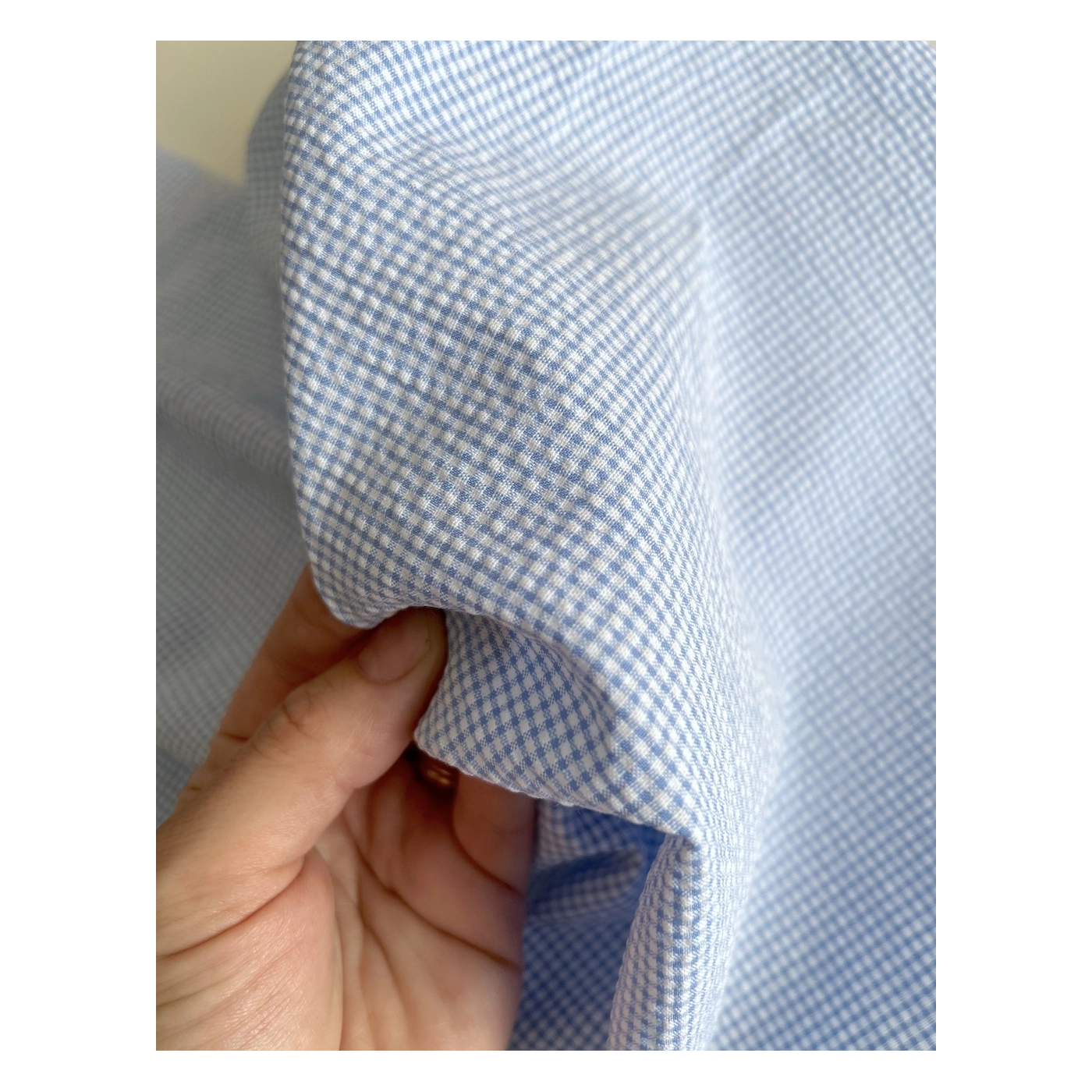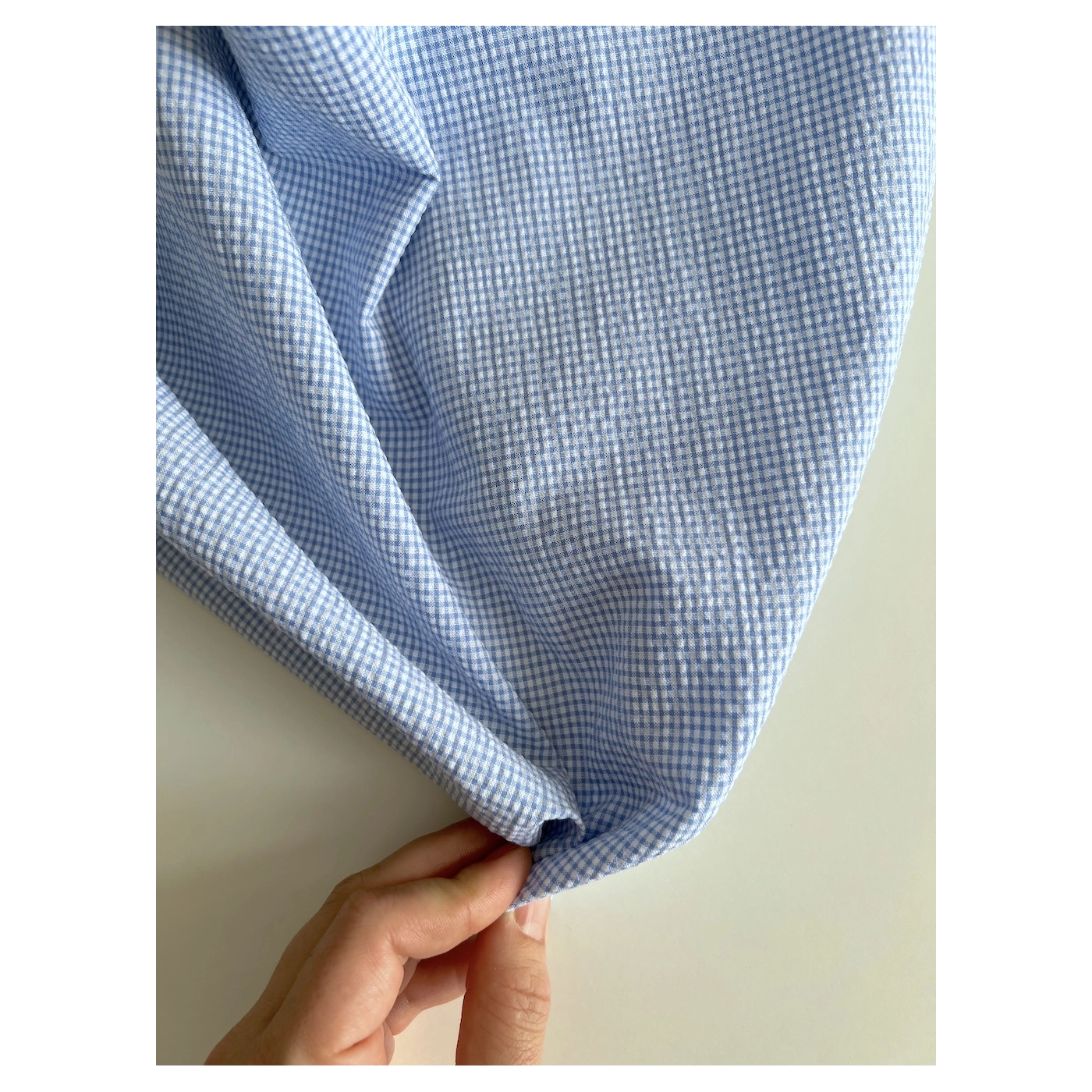 Le tissu seersucker / coton gaufré vichy est parfait pour la confection de chemise, bloomer, short, mais aussi un petit détail pour un col sur une guimpe bébé, une petite poche en vichy sur une chemise uni.