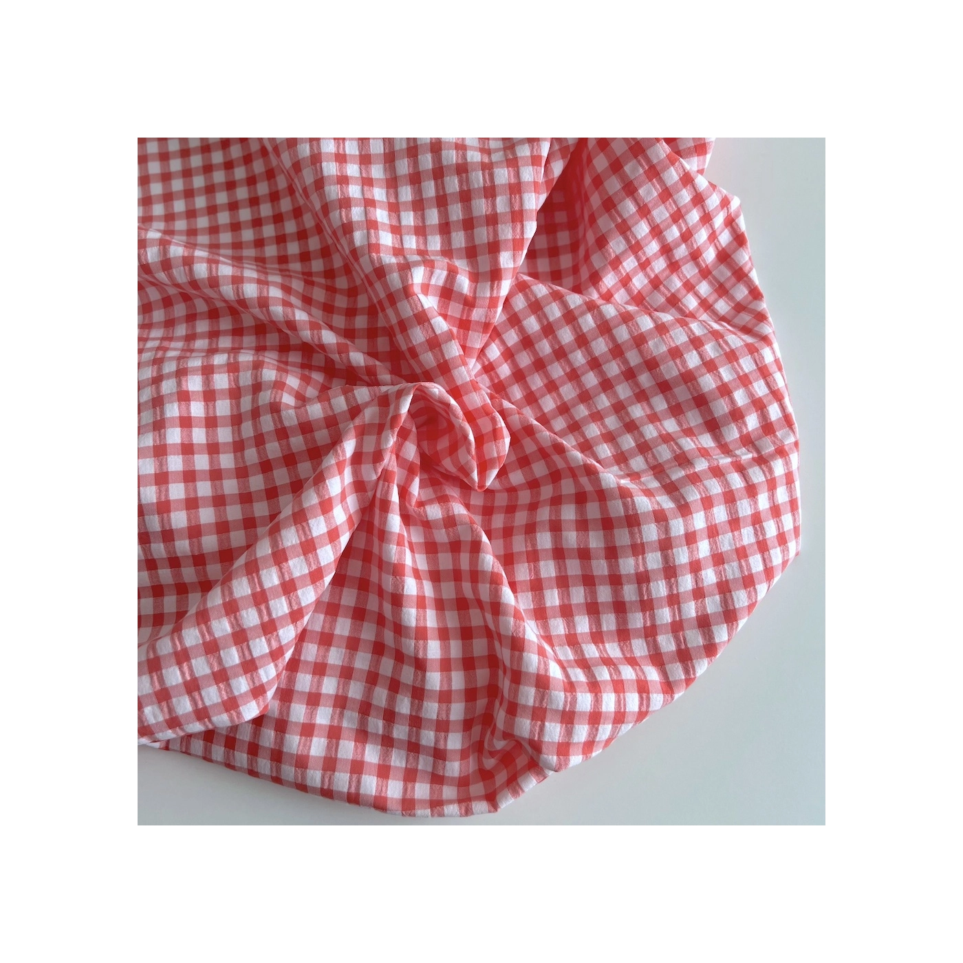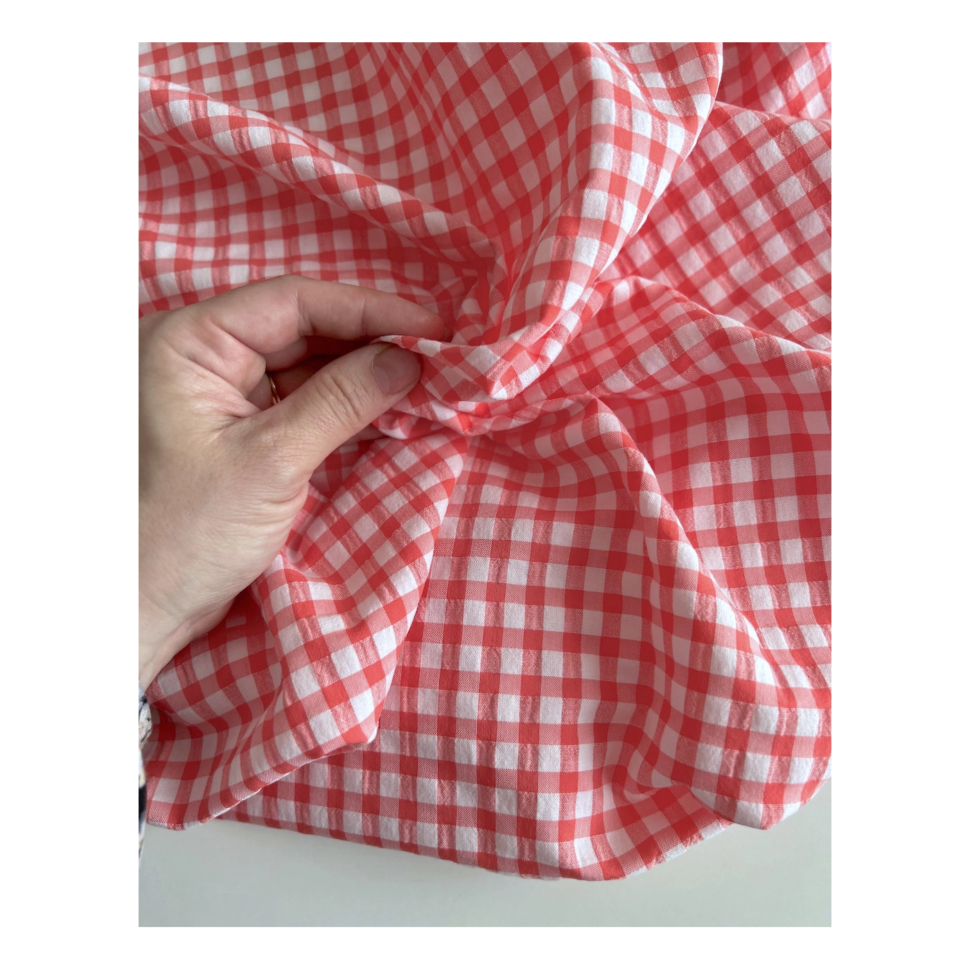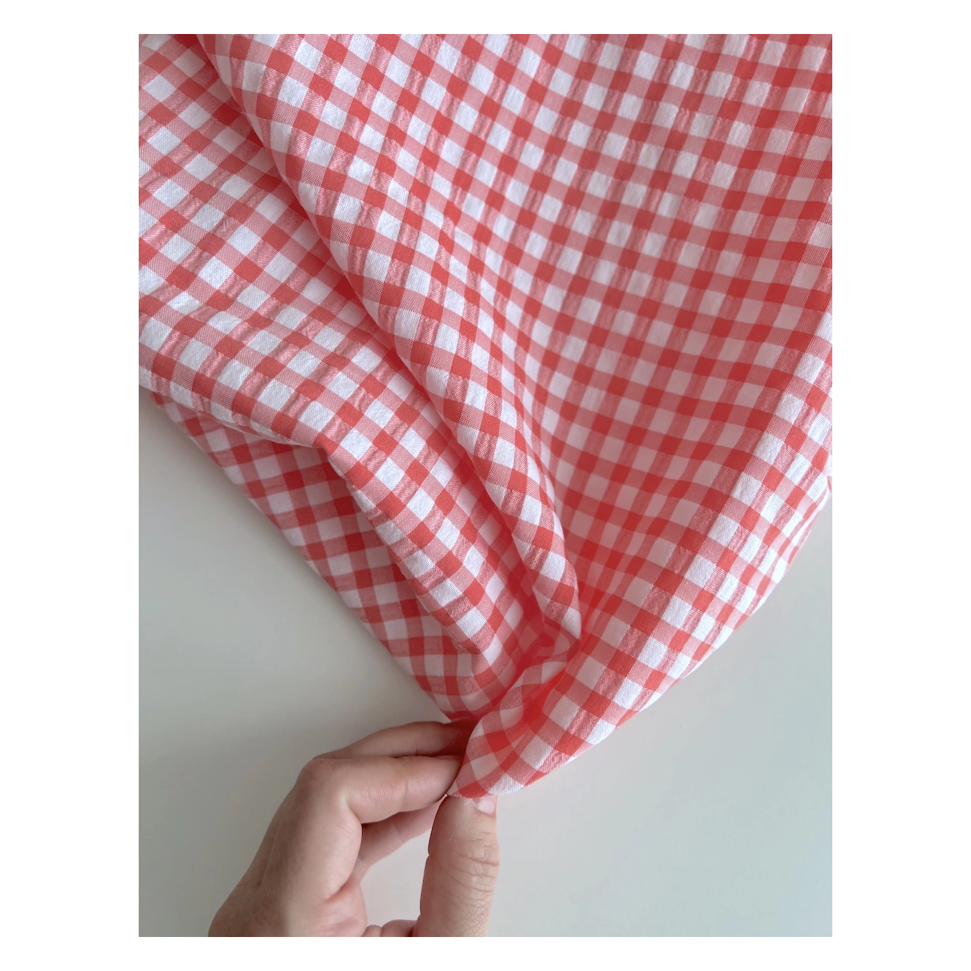 Le tissu seersucker / coton gaufré vichy est parfait pour la confection de chemise, bloomer, short, mais aussi un petit détail pour un col sur une guimpe bébé, une petite poche en vichy sur une chemise uni.