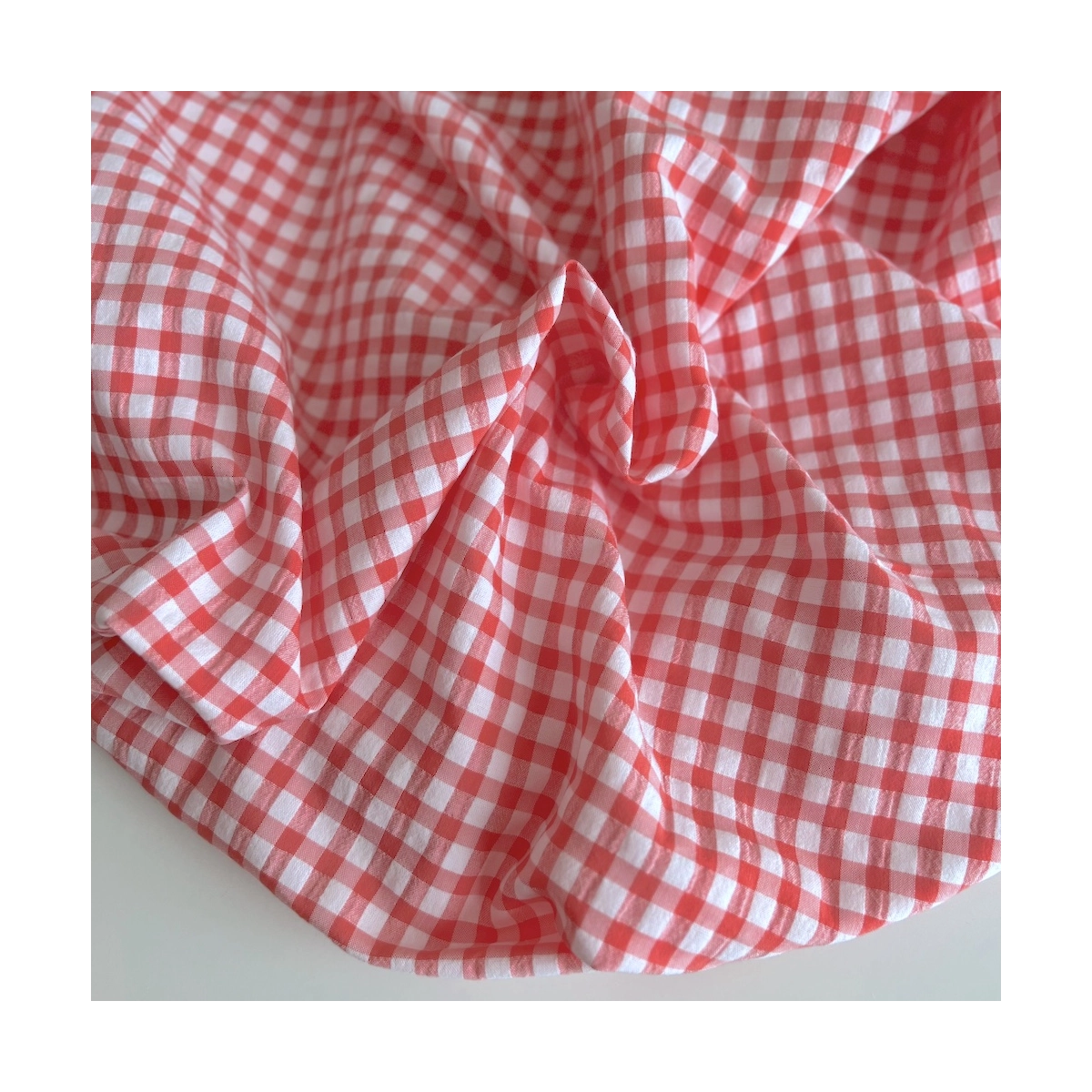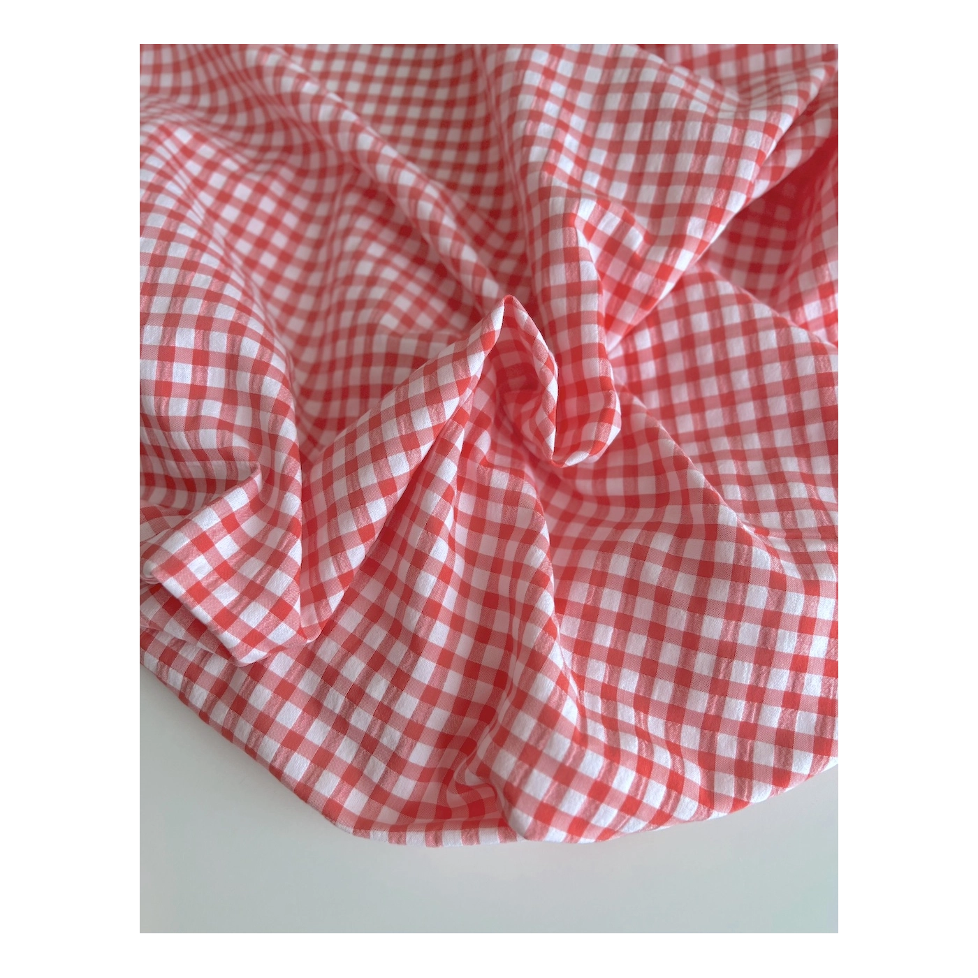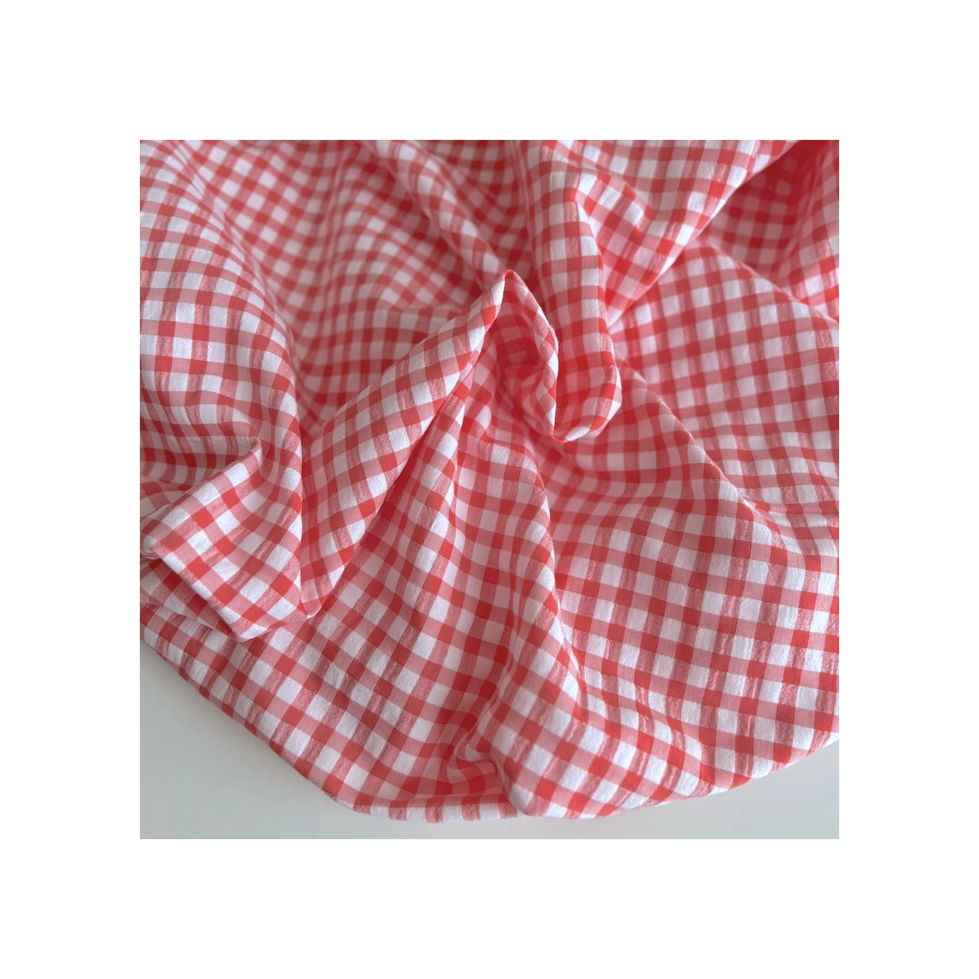 Le tissu seersucker / coton gaufré vichy est parfait pour la confection de chemise, bloomer, short, mais aussi un petit détail pour un col sur une guimpe bébé, une petite poche en vichy sur une chemise uni.