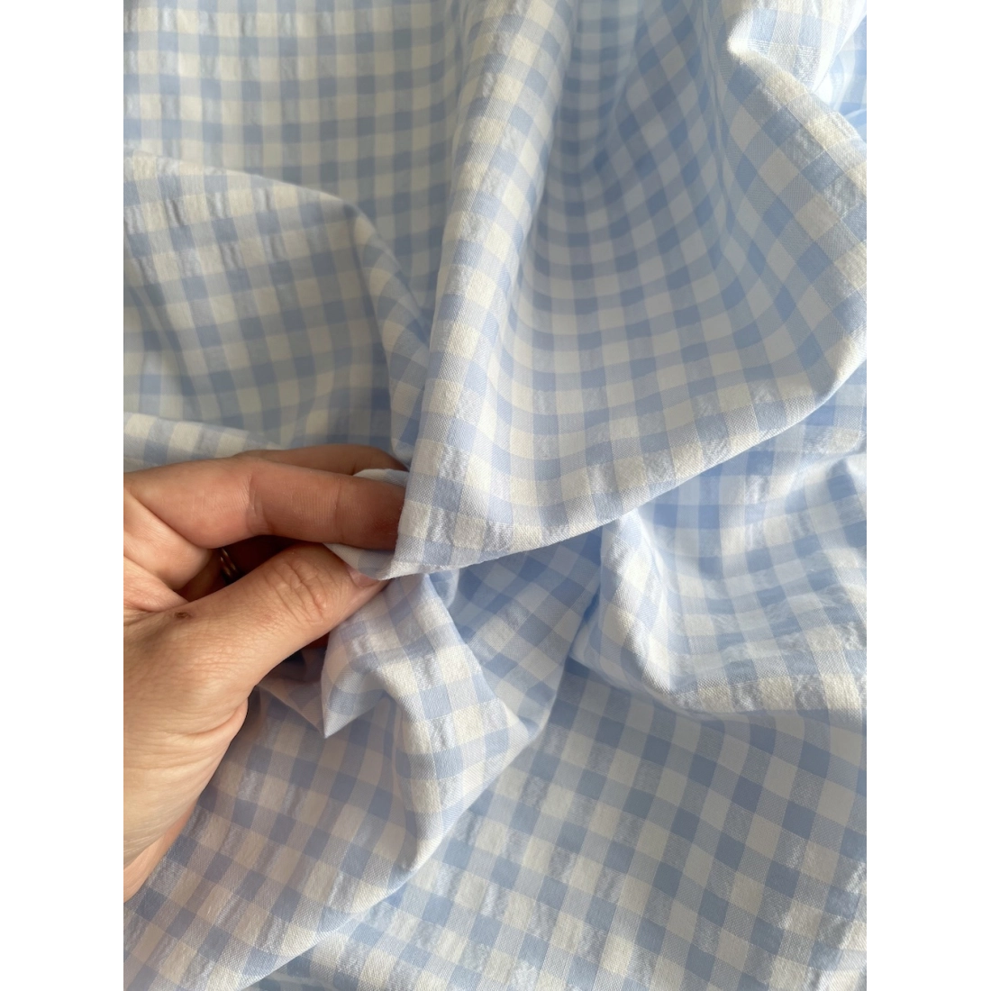 Le tissu seersucker / coton gaufré vichy est parfait pour la confection de chemise, bloomer, short, mais aussi un petit détail pour un col sur une guimpe bébé, une petite poche en vichy sur une chemise uni.