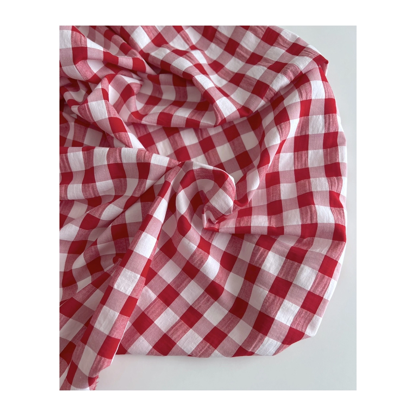 Le tissu seersucker / coton gaufré vichy est parfait pour la confection de chemise, bloomer, short, mais aussi un petit détail pour un col sur une guimpe bébé, une petite poche en vichy sur une chemise uni.