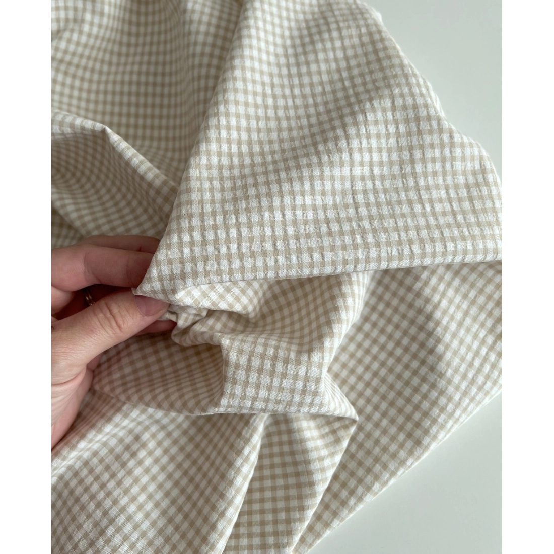 Le tissu seersucker / coton gaufré vichy est parfait pour la confection de chemise, bloomer, short, mais aussi un petit détail pour un col sur une guimpe bébé, une petite poche en vichy sur une chemise uni.