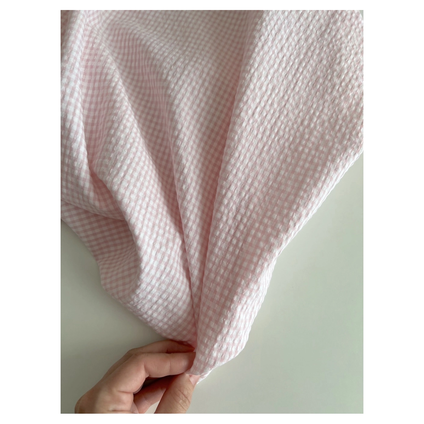 Le tissu seersucker / coton gaufré vichy est parfait pour la confection de chemise, bloomer, short, mais aussi un petit détail pour un col sur une guimpe bébé, une petite poche en vichy sur une chemise uni.