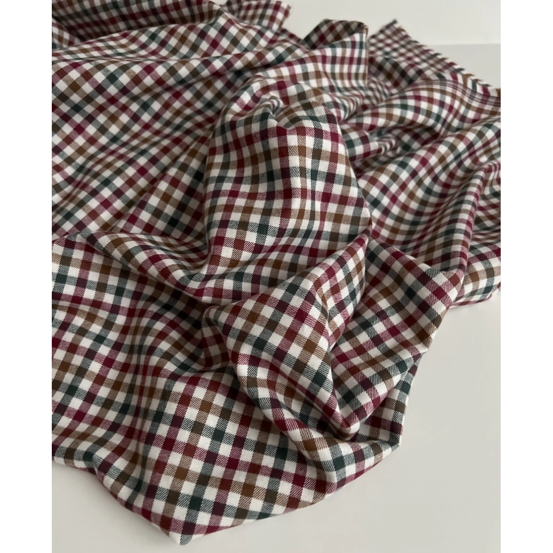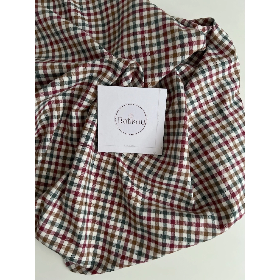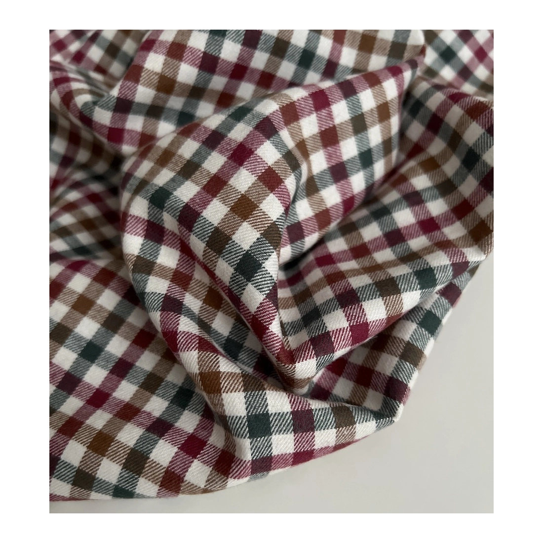 Lucien - Coton gratté organique imprimé carreaux sapin, camel et bordeaux