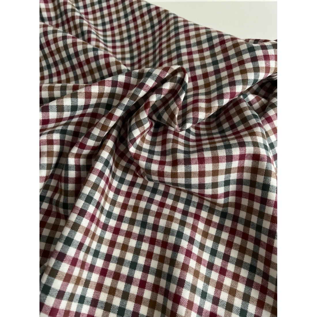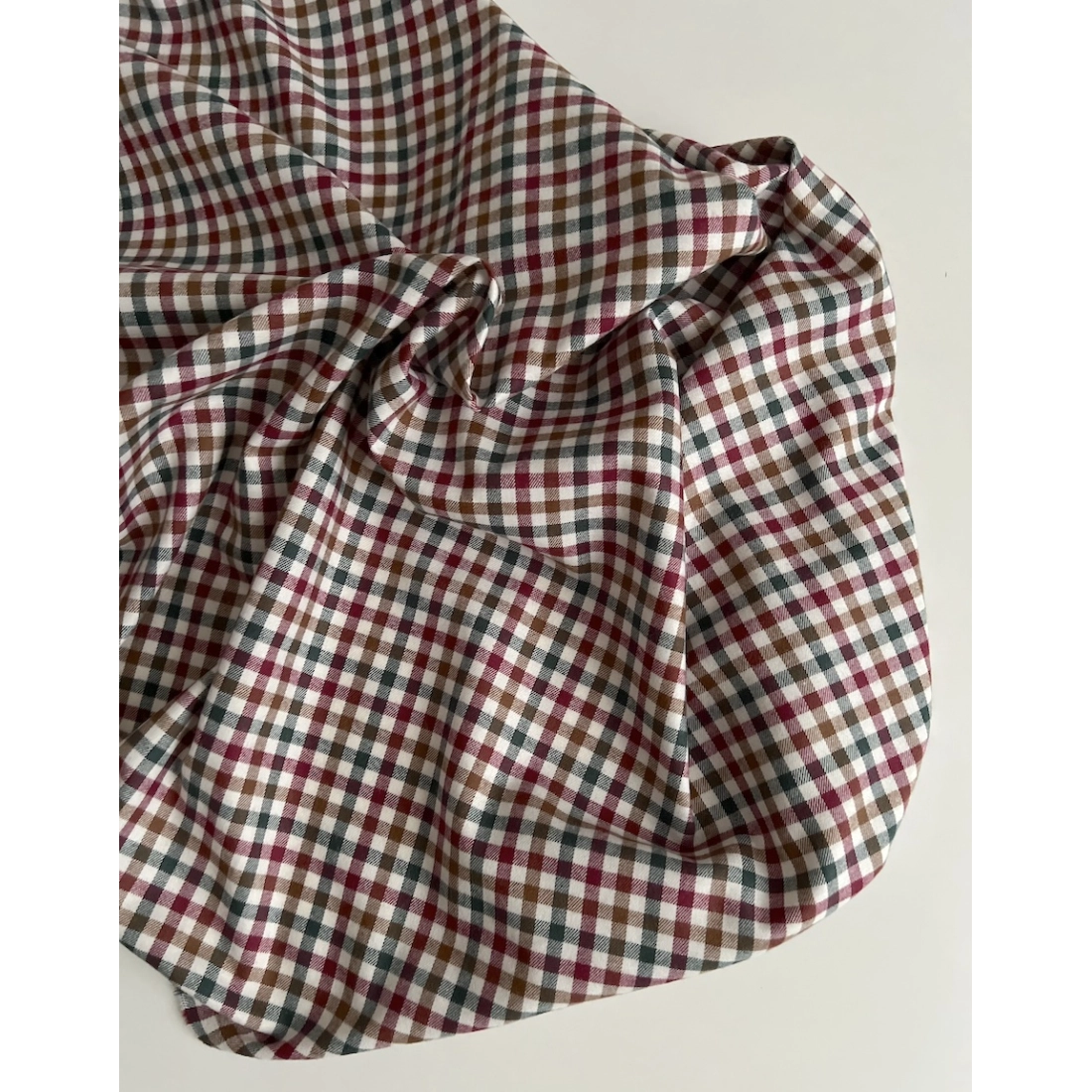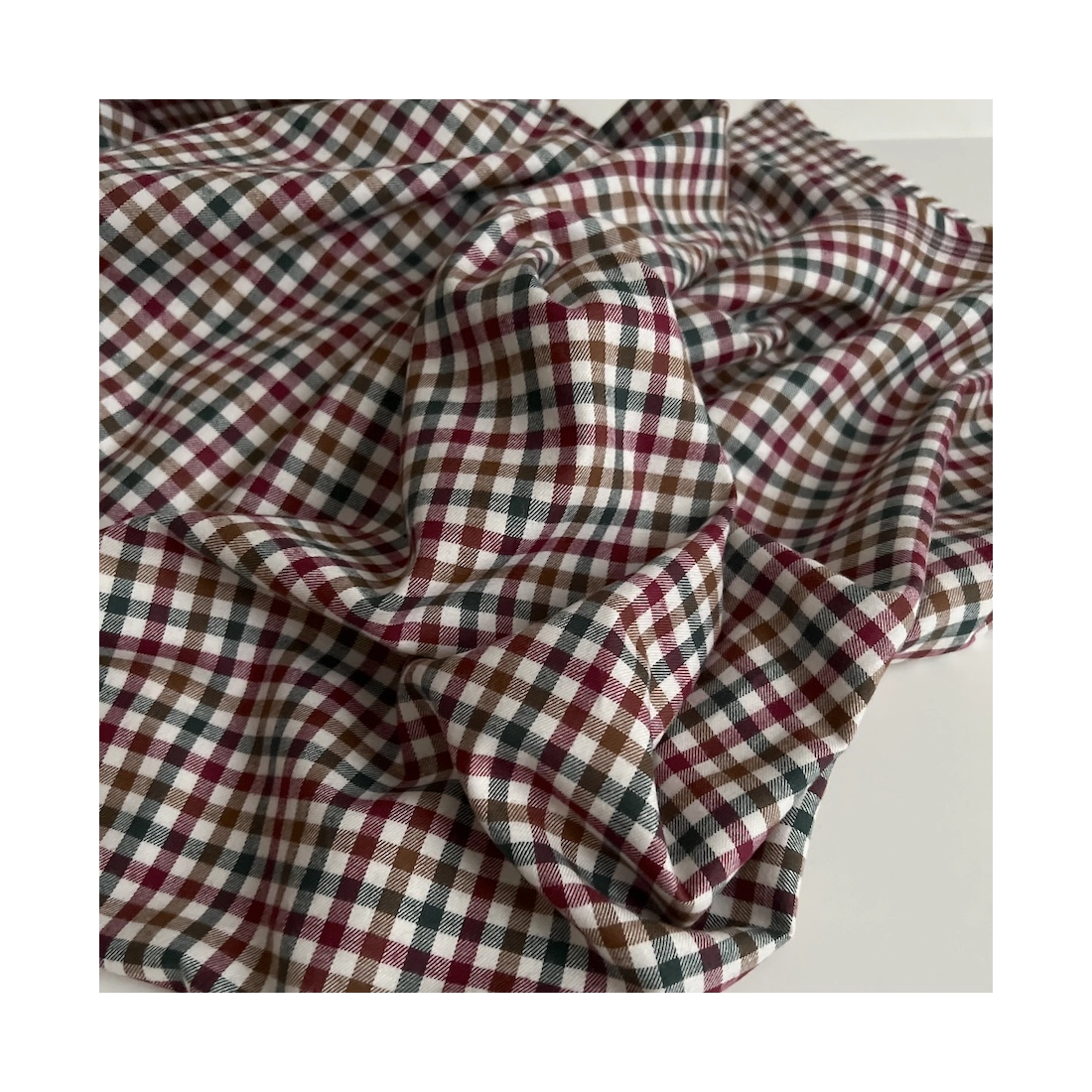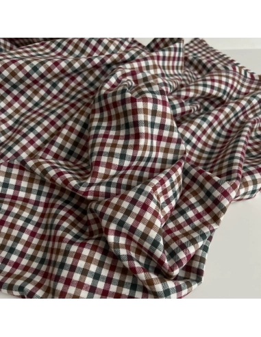 Lucien - Coton gratté organique imprimé carreaux sapin, camel et bordeaux