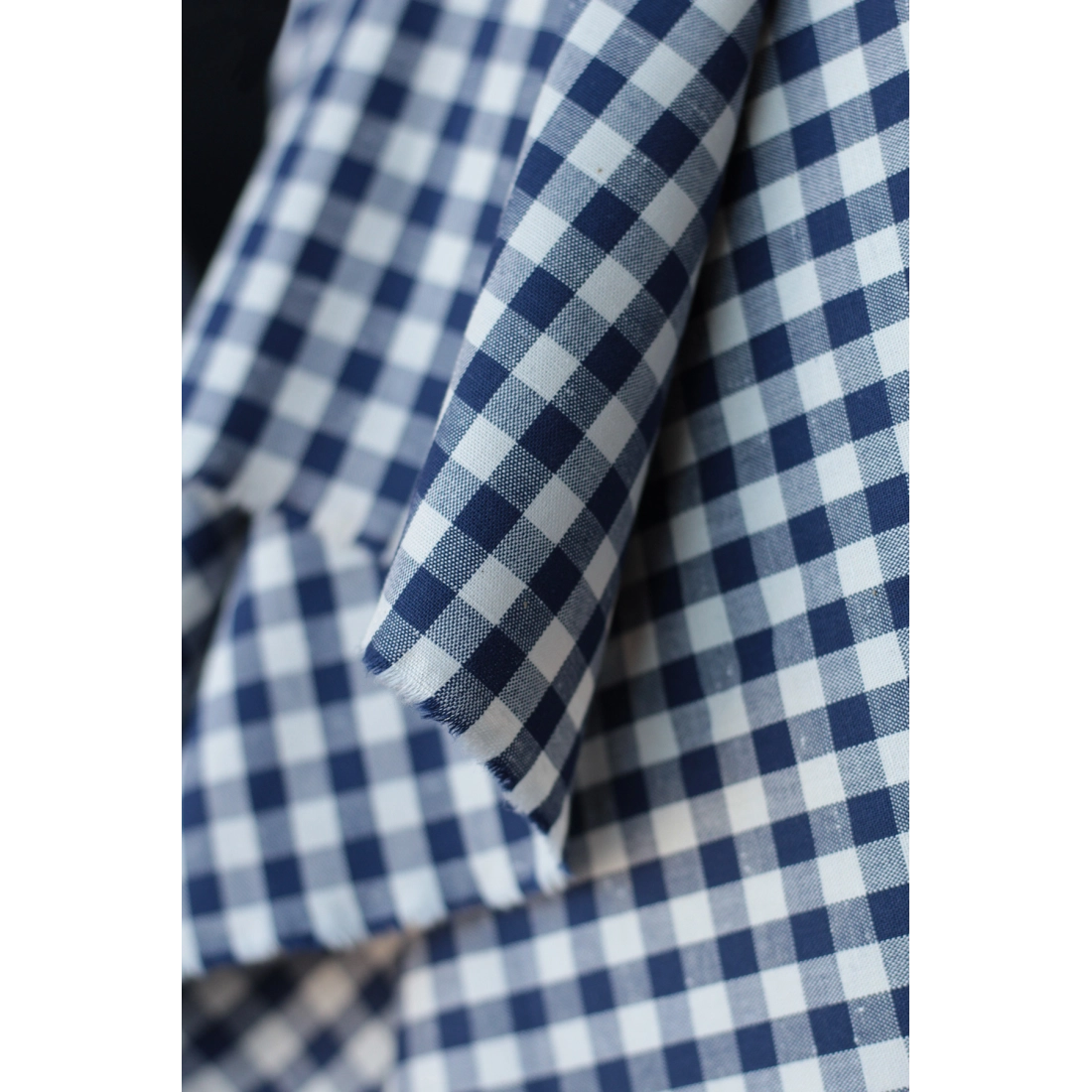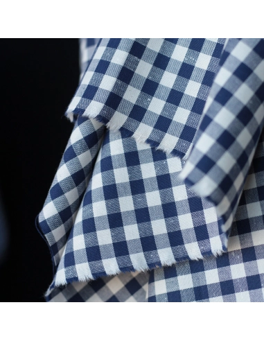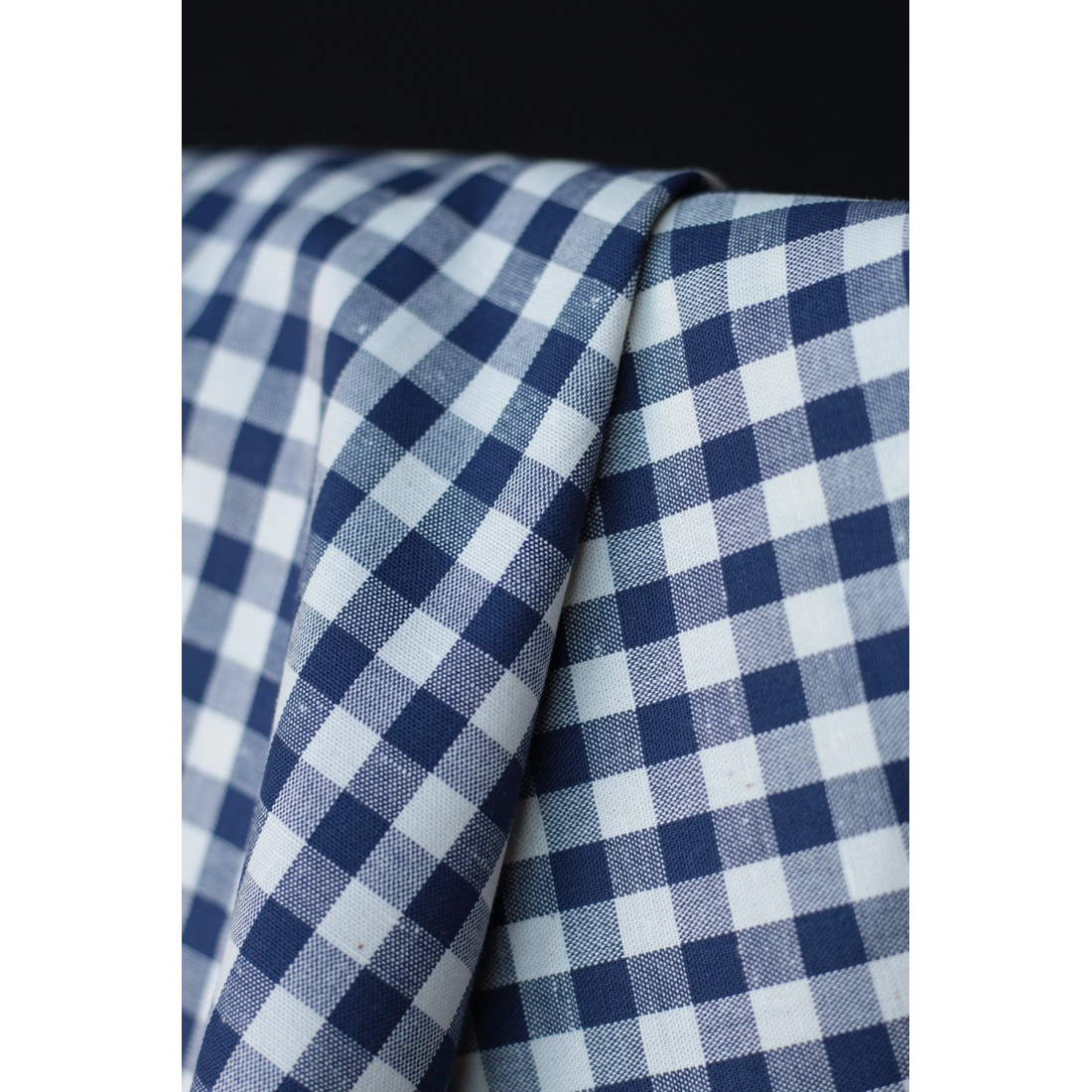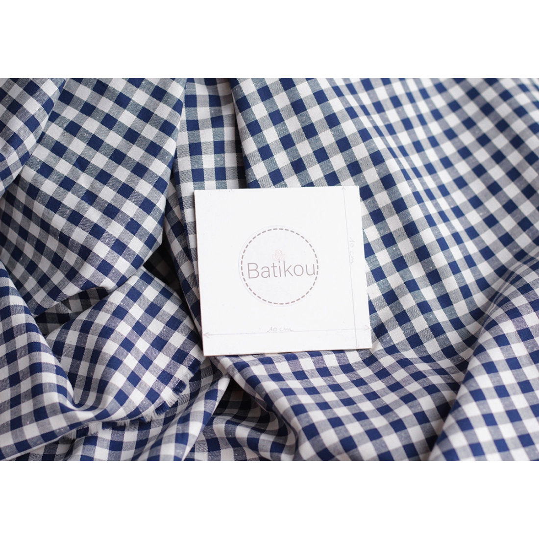 Coton chiné aspect brut vichy moyen 7mm coloris bleu marine