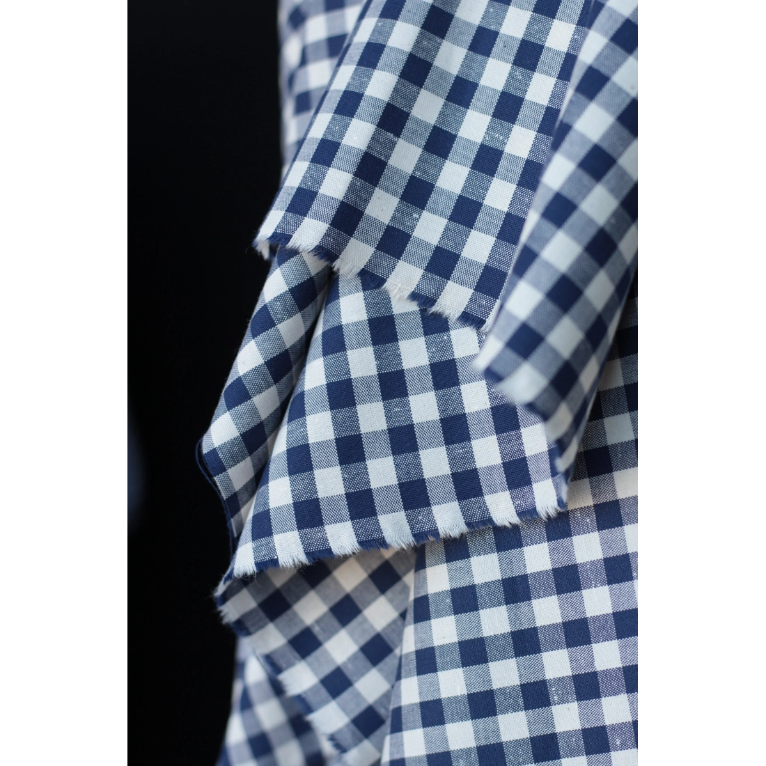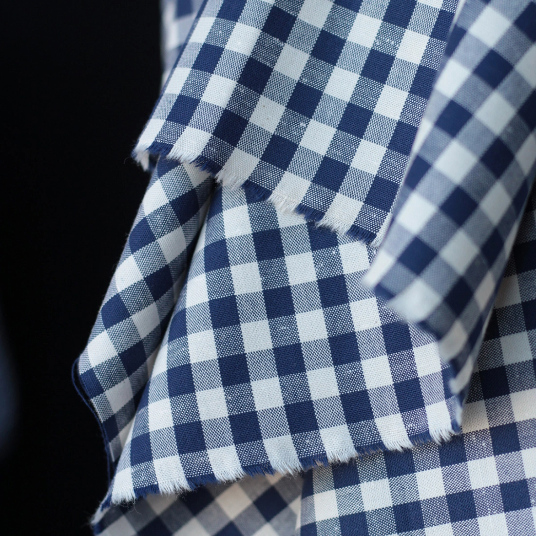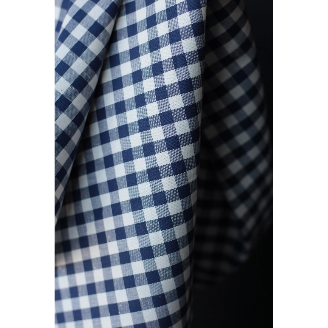 Coton chiné aspect brut vichy moyen 7mm coloris bleu marine